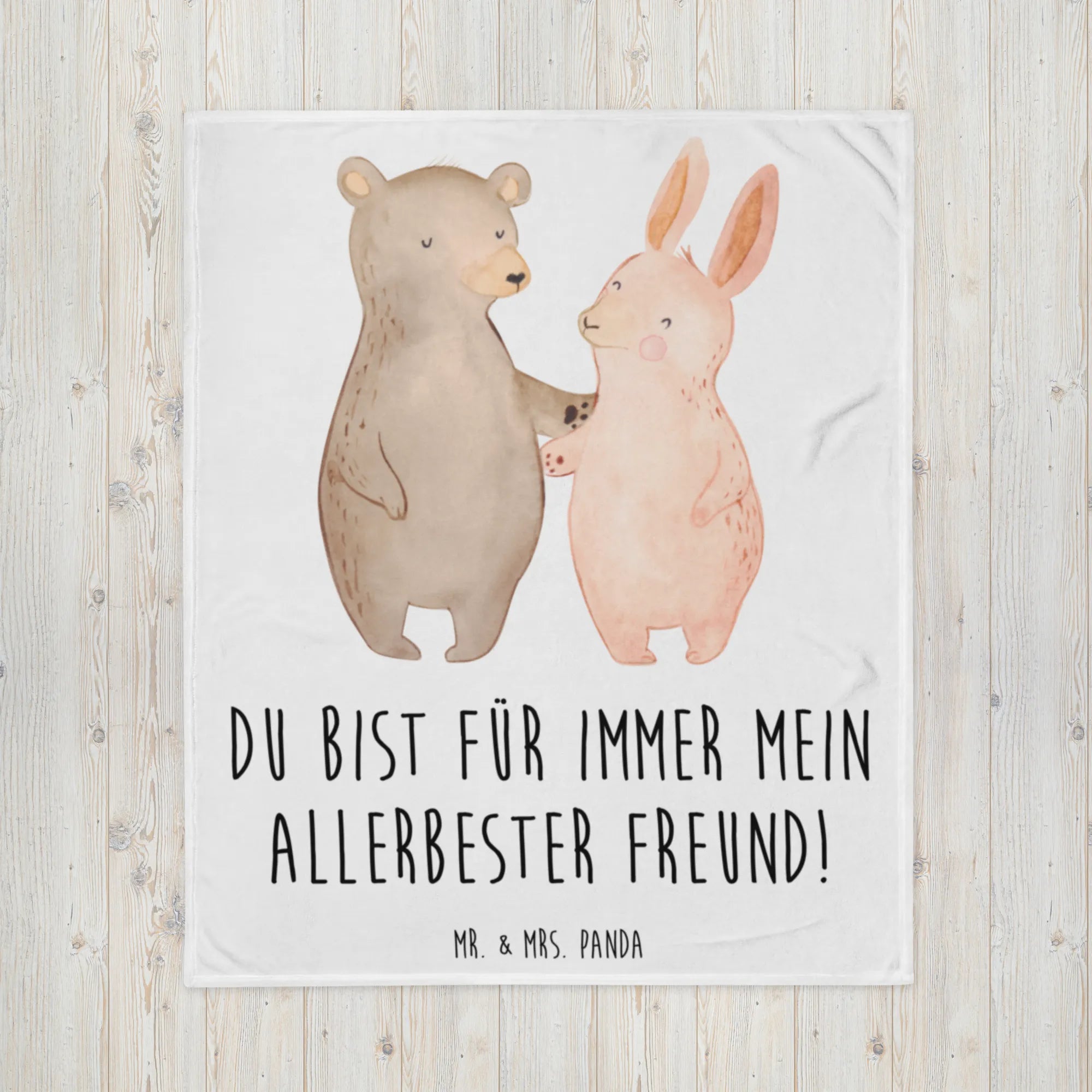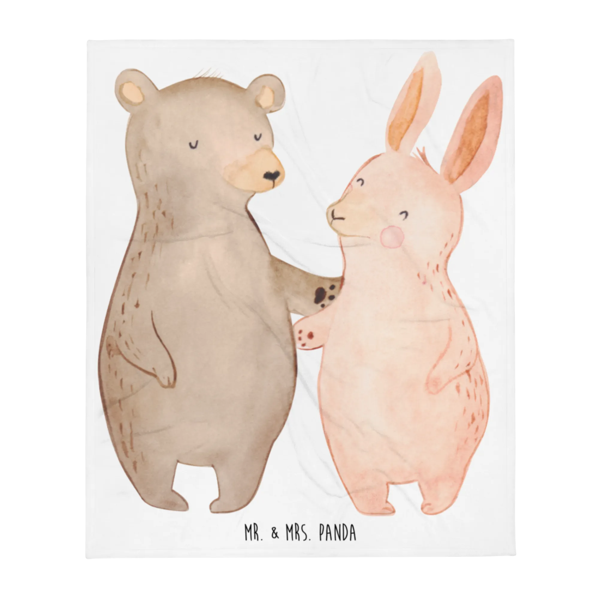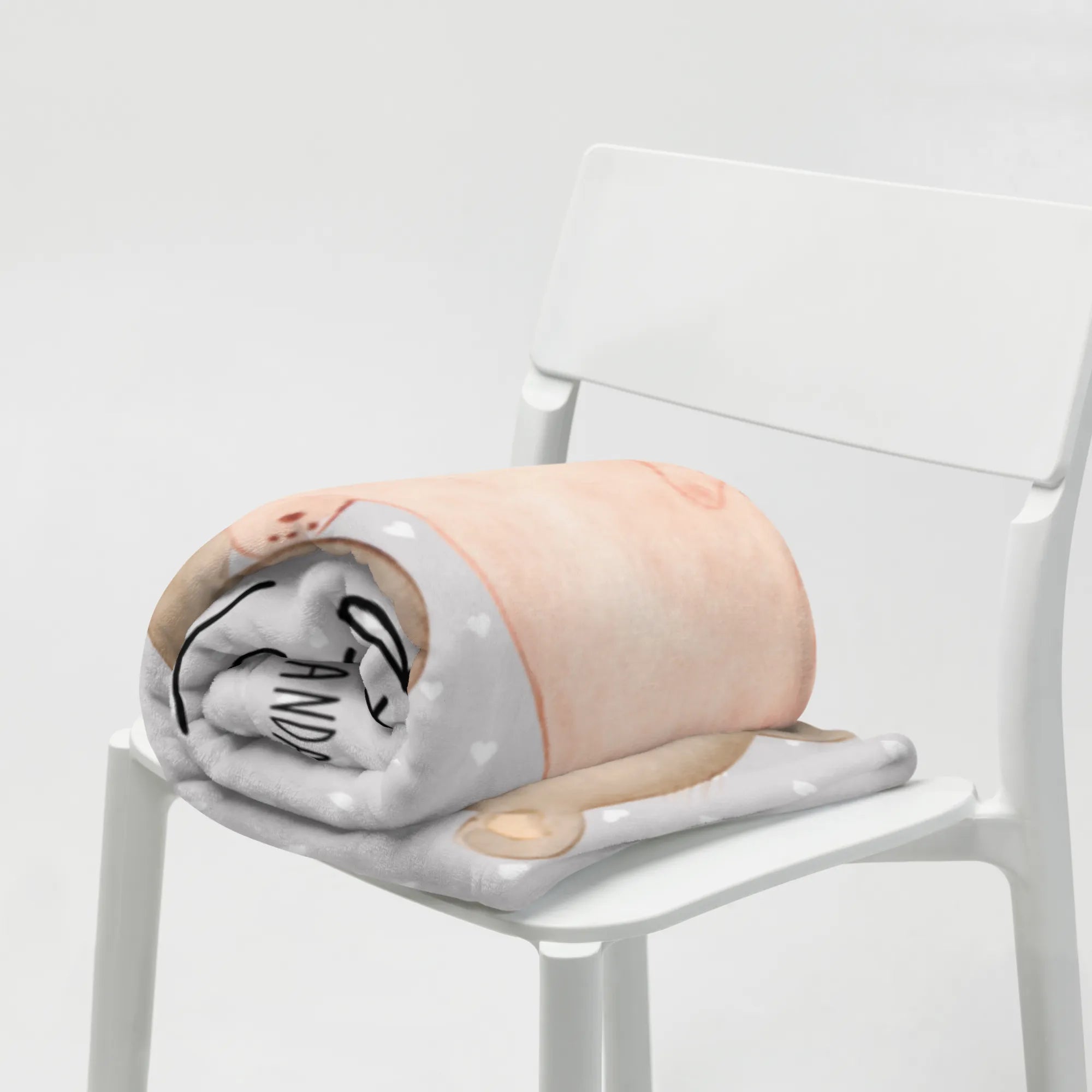 Blanket bear and rabbit Embrace - with a saying - Grey Pastel