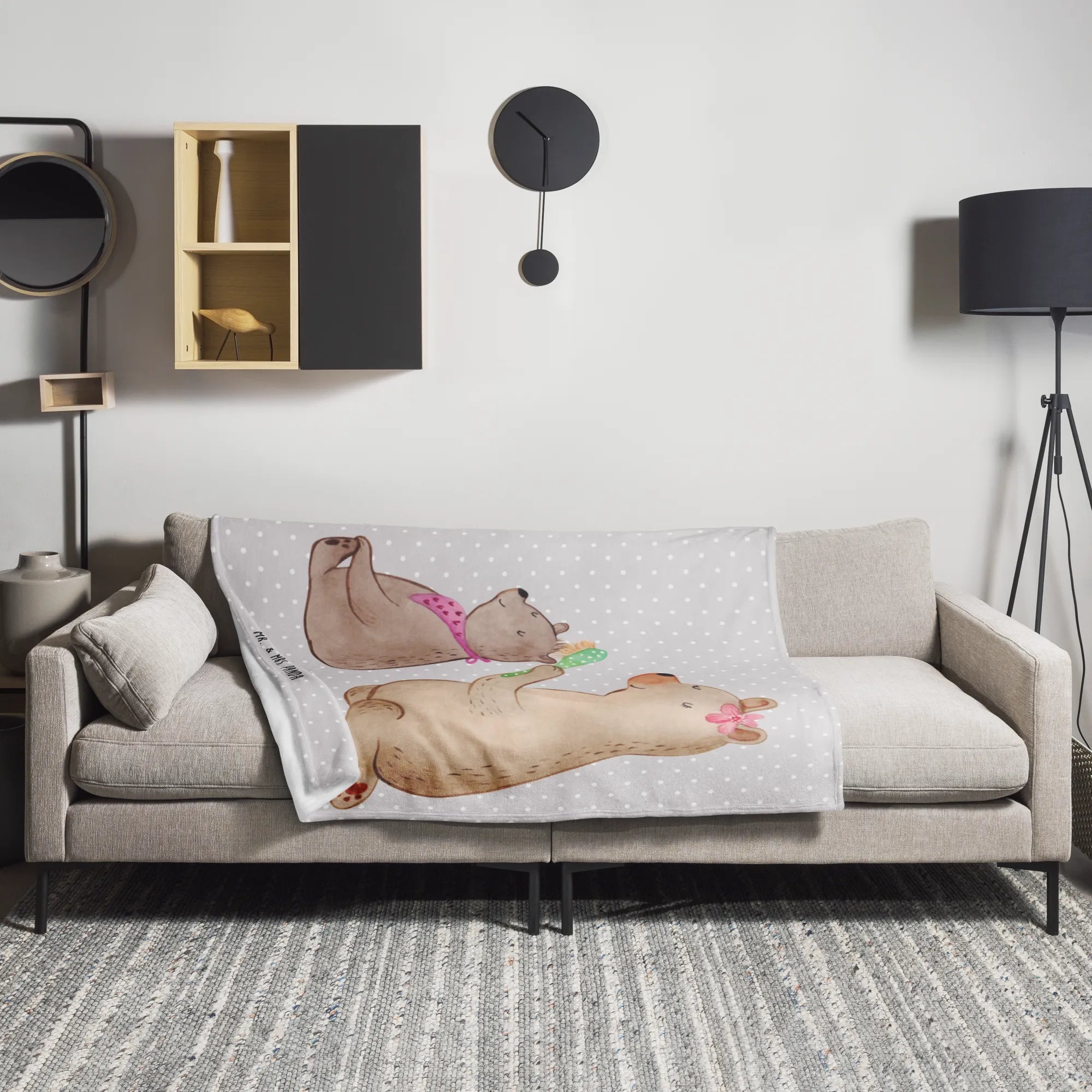 Elevate your comfort with the Mr. & Mrs. Panda Blanket! This fabulous fleece blanket is perfectly sized at 60 inches by 60 inches, with a thickness of 5 mm, making it ideal for both snuggling on the sofa and keeping warm in bed. Featuring adorable motifs and uplifting sayings, each corner of your home will feel more inviting. The plush microfiber fabric provides a sensationally soft touch, and being hypoallergenic means that it accommodates everyone without hassle. Care is a breeze – just pop it into the washing machine at a max of 30 °C with a gentle detergent. This splendid blanket not only serves as a gorgeous decor piece but also shines as a children's comforting cuddle blanket. Wash it before your first use to unveil the full extent of its delightful fluffiness!