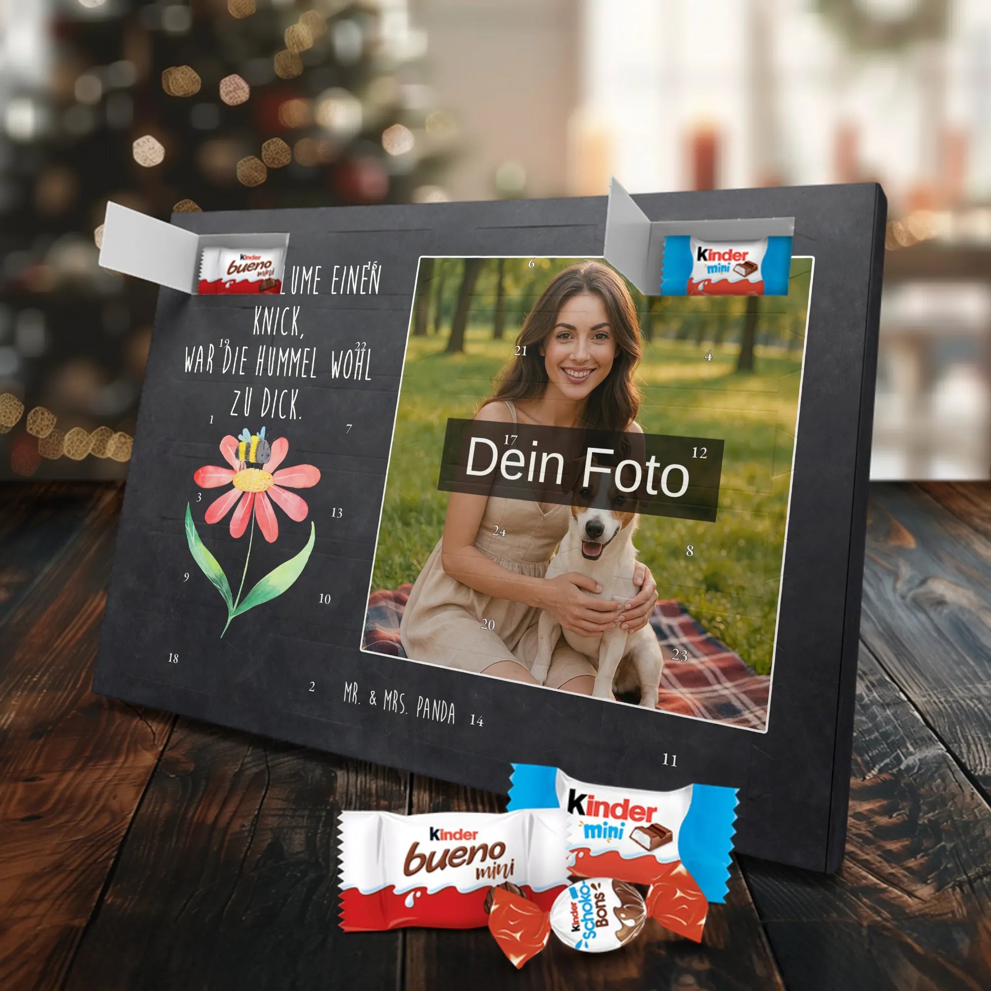🐼 Personalisierter Schoko Foto Adventskalender mit deinem Foto, seidenmatter Druck, bedruckten Motiven & gefüllt mit kinder® Schokolade.