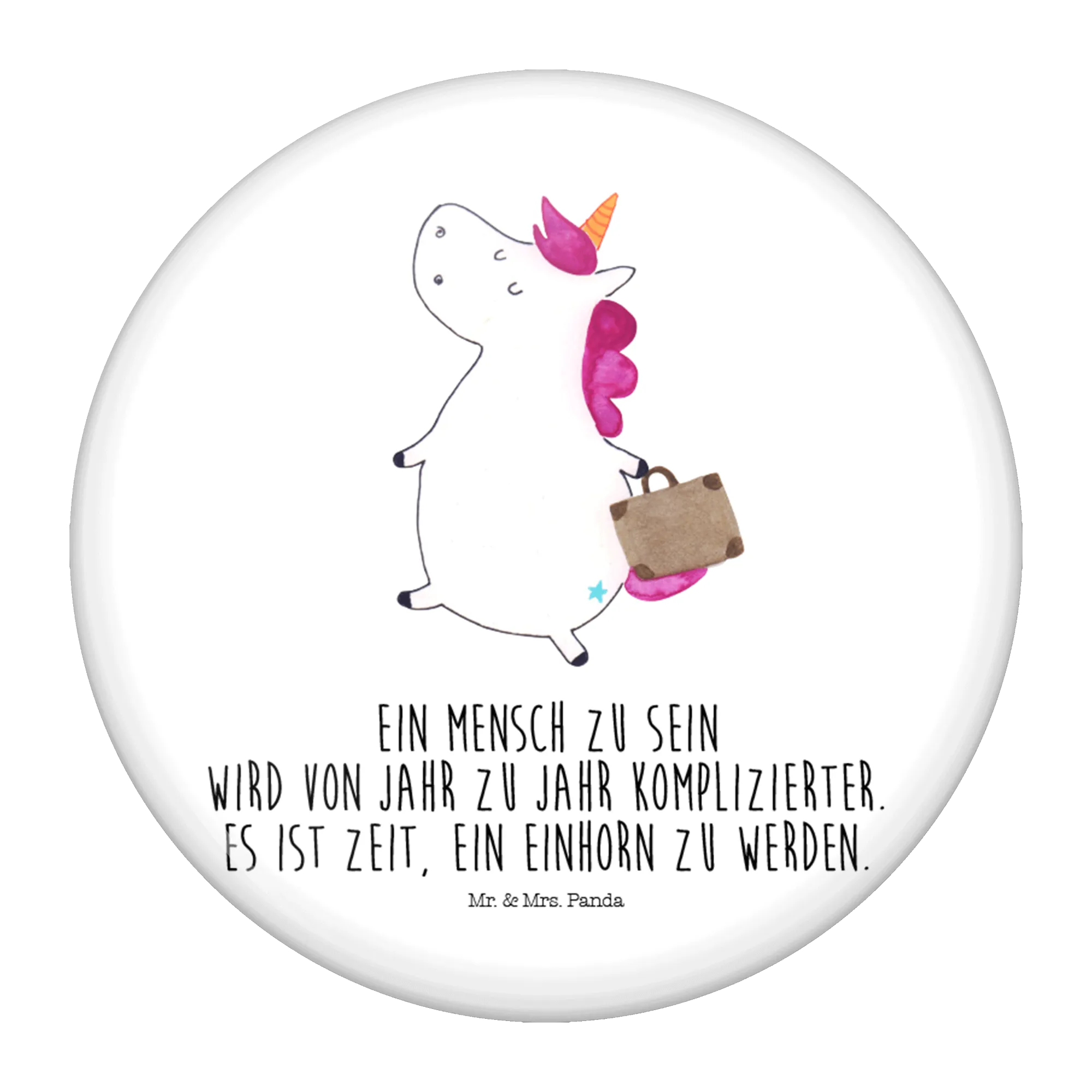 Are you in search of the perfect gift for a travel-loving friend or a whimsical unicorn enthusiast? Look no further than the delightful Unicorn Suitcase Button from the exclusive Unicorn Collection by Mr. & Mrs. Panda! This charming 50mm button showcases a lovingly hand-drawn unicorn, cheerfully trotting with its suitcase, ready to embark on an adventure.