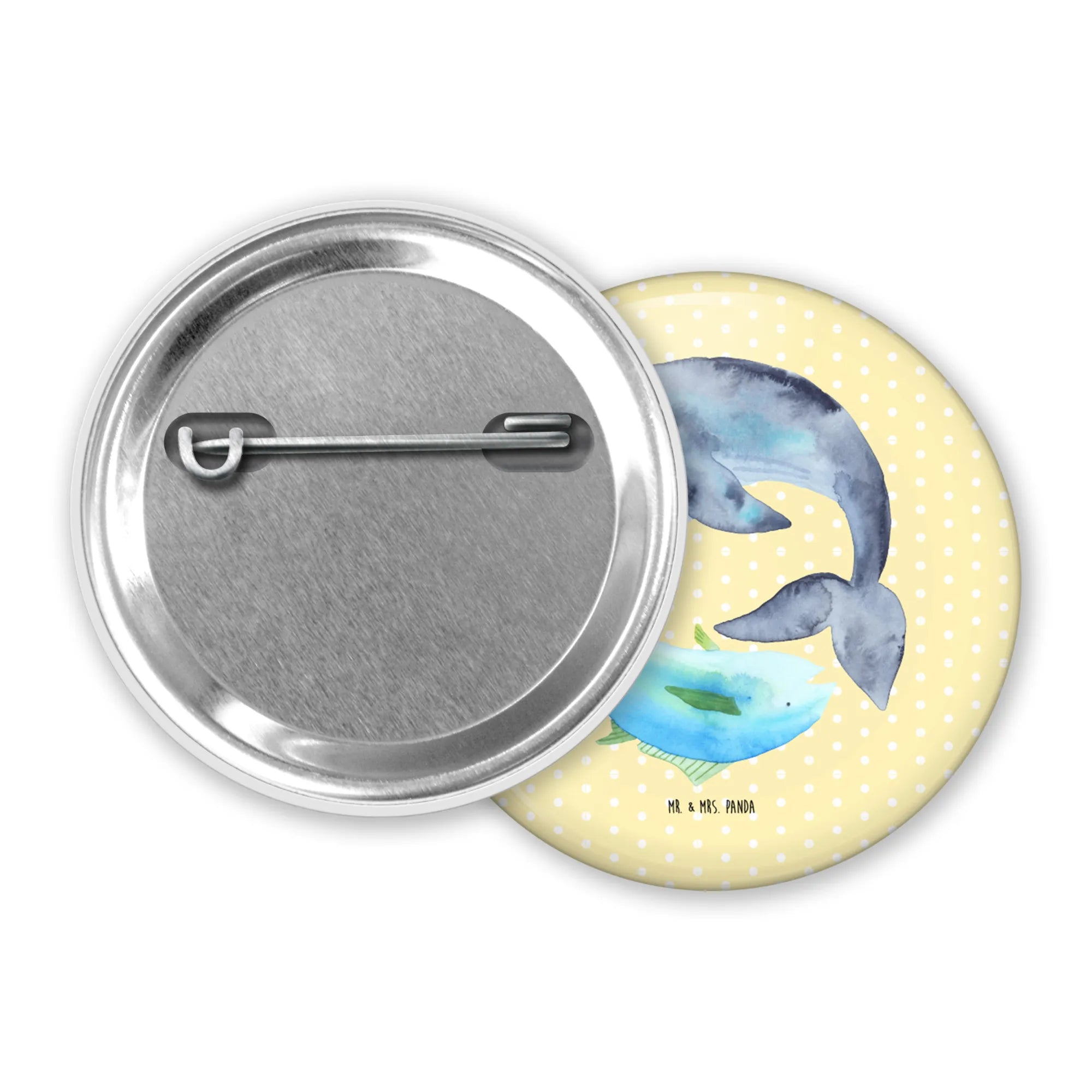 Imagine the joy on your friend's face as they receive this sweet and funny button on their birthday, or perhaps as a "just because" gift! The whimsical saying, "Sagt der Walfisch zum Thunfisch: ‚Was soll ich tun, Fisch?‘ Sagt der Thunfisch zum Walfisch: ‚Du hast die Wahl, Fisch.‘" adds a fun layer of humor, perfect for breaking the ice or sparking a playful conversation. This lovely button not only brightens up clothing and bags but it also serves as a delightful talking point among fellow animal enthusiasts!