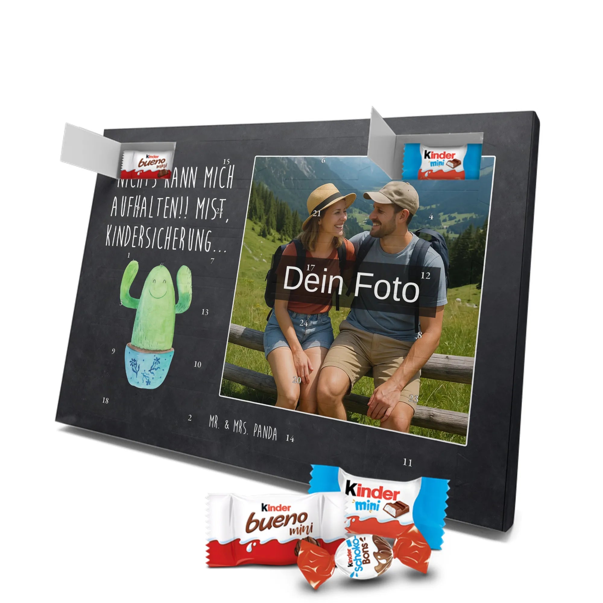 Personalisierter Foto Adventskalender mit Schokolade von Mr. & Mrs. Panda – das ideale Geschenk für alle, die persönliche Erinnerungen und süße Kleinigkeiten lieben. Lade dein Lieblingsbild hoch und wir drucken es auf die Vorderseite, flankiert von charmanten Illustrationen und Sprüchen unserer Panda-Crew. Bitte achte darauf, dass dein Bild eine hohe Auflösung hat und der Bildausschnitt sorgfältig gewählt ist, damit Gesichter und Details perfekt zur Geltung kommen. Nur Bilder mit entsprechenden Nutzungsrechten verwenden. Achtung: Wir nehmen keine Nachbearbeitung oder Zuschnitt der Fotos vor; personalisierte Fotoartikel sind vom Widerruf ausgenommen. Der Kalender überzeugt durch brillante Druckqualität, seidenmatte Oberflächenveredelung und bedruckte Seitenflächen. Maße: 355 mm x 245 mm x 11 mm. Du kannst ihn aufhängen oder aufstellen – so passt er in jede Adventsdekoration. Gefüllt mit kinder® Schokolade, darunter kinder® Schoko-Bons, kinder® Bueno mini und kinder® Schokolade mini. Ein liebevoller, persönlicher Adventskalender, der jedes Türchen mit einem Hauch Mr. & Mrs. Panda Magie öffnet.