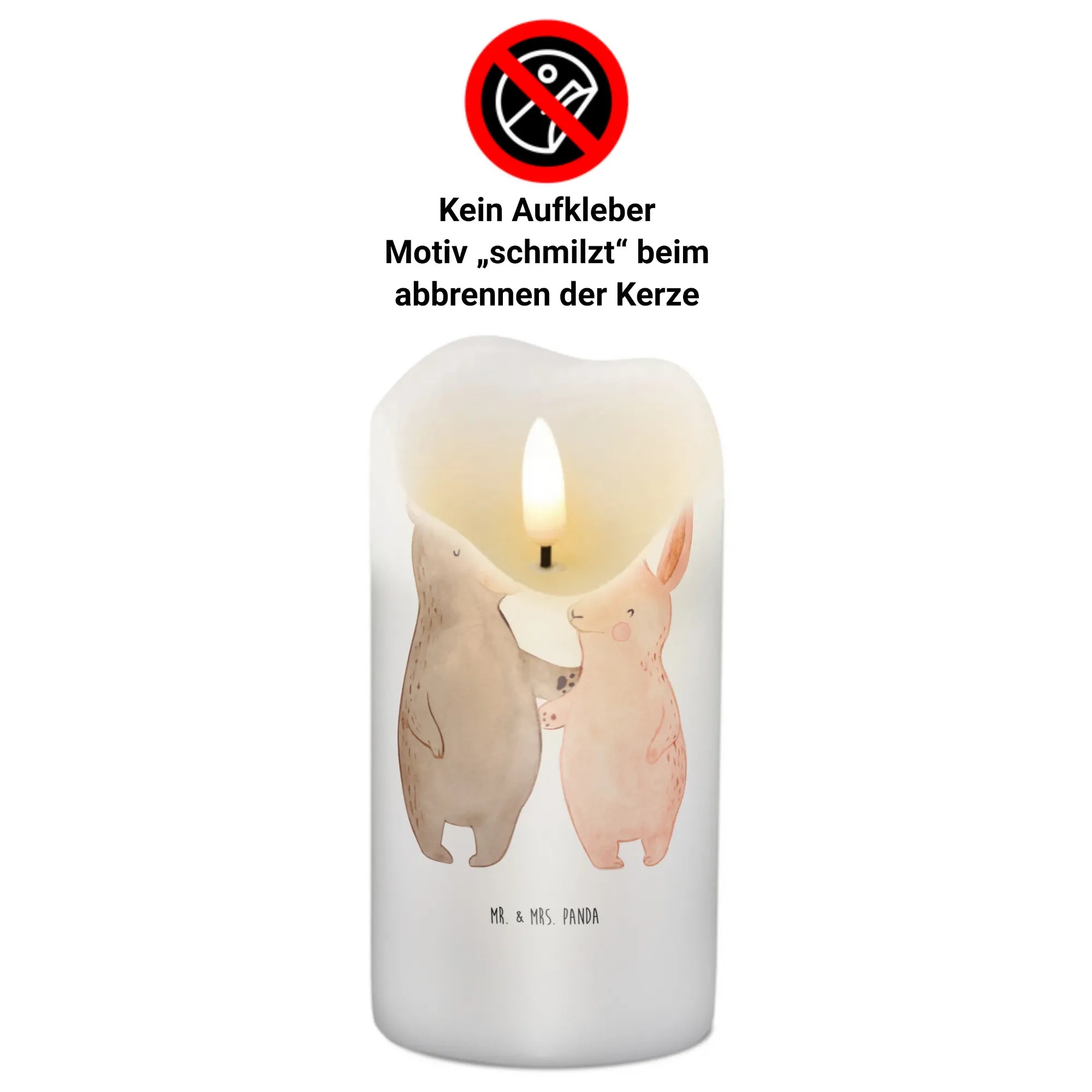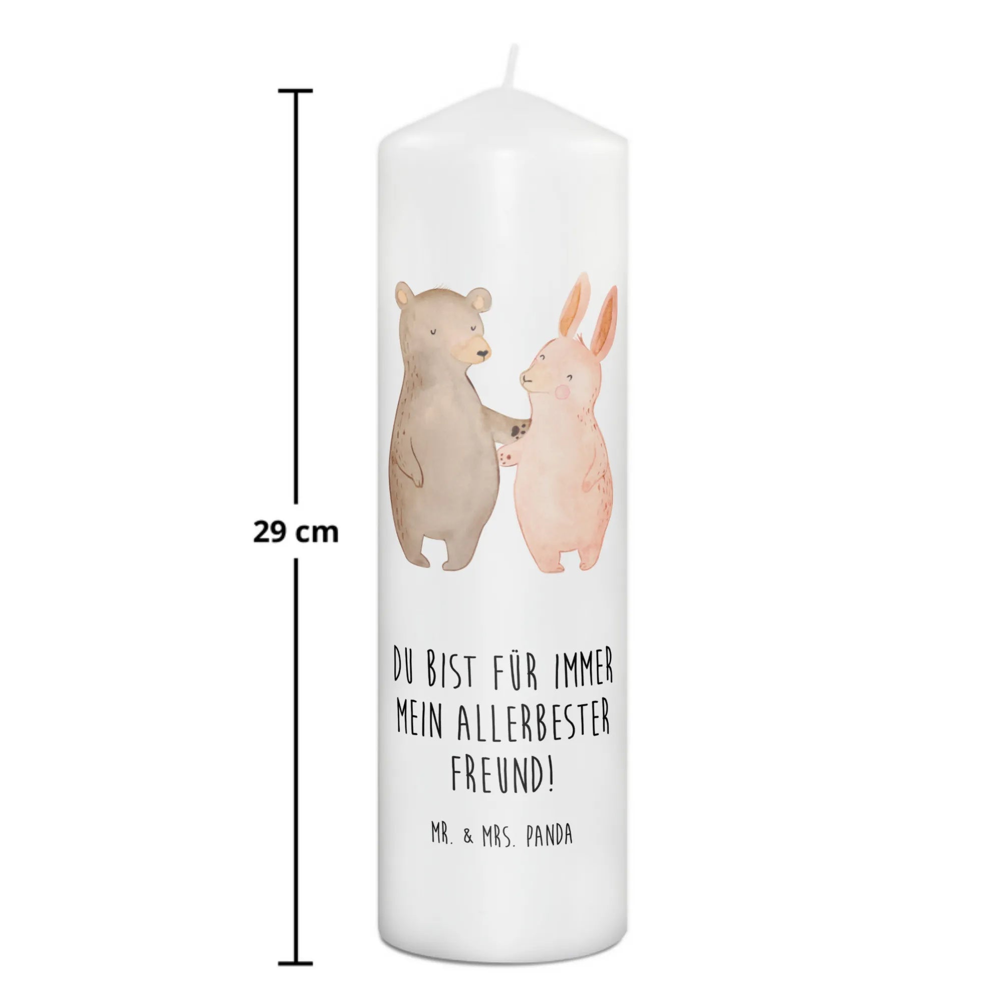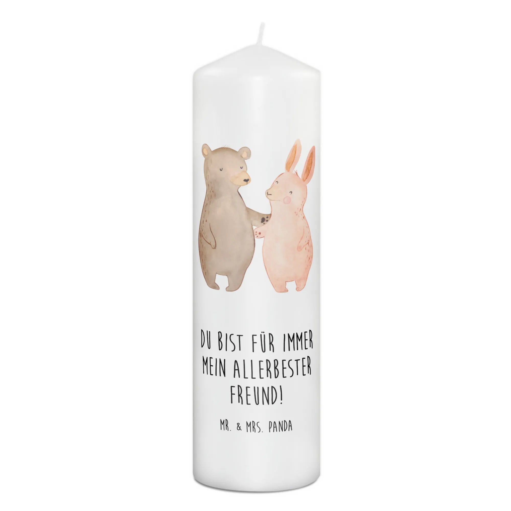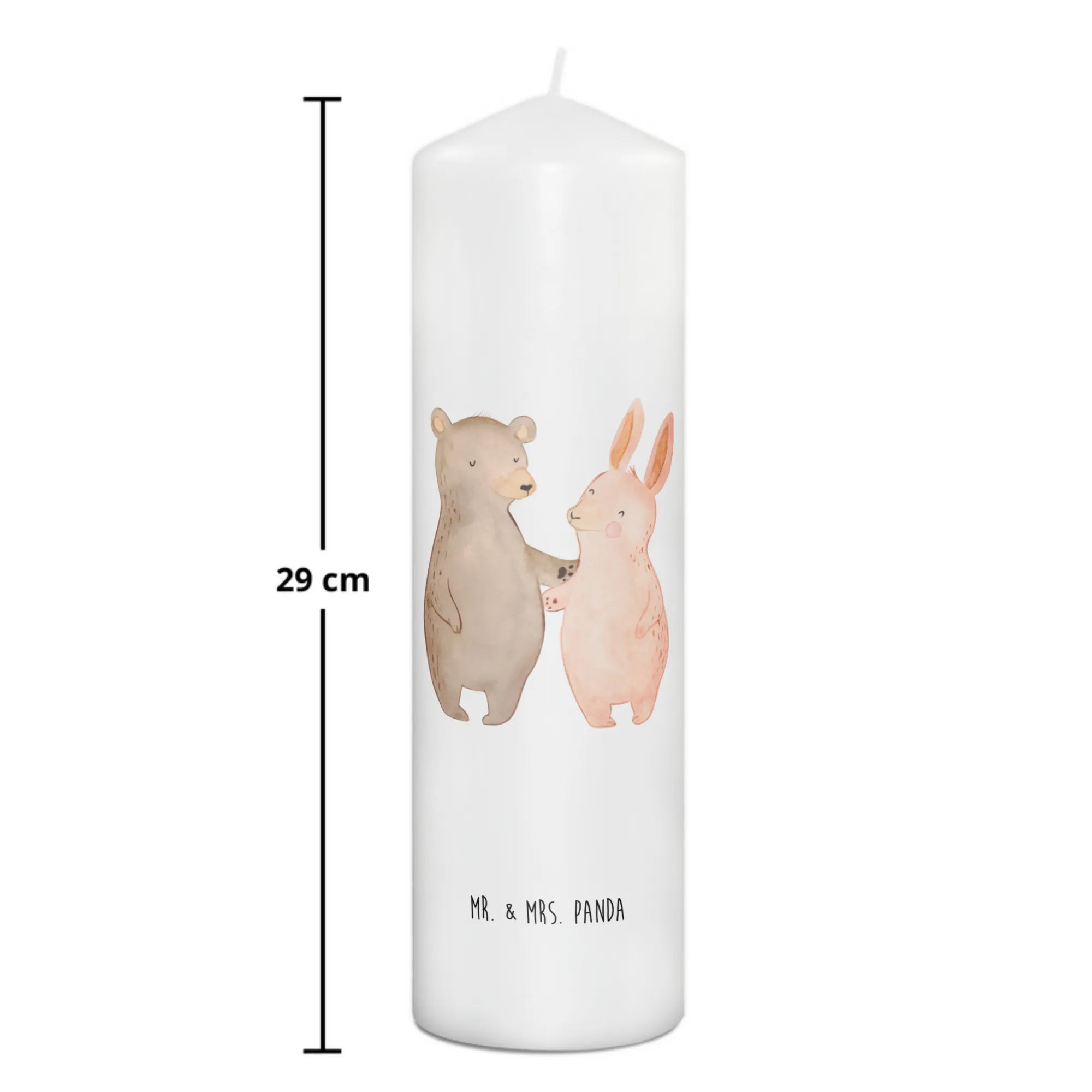 Candle bear and rabbit Embrace - 29 x 8 cm XL - with saying
