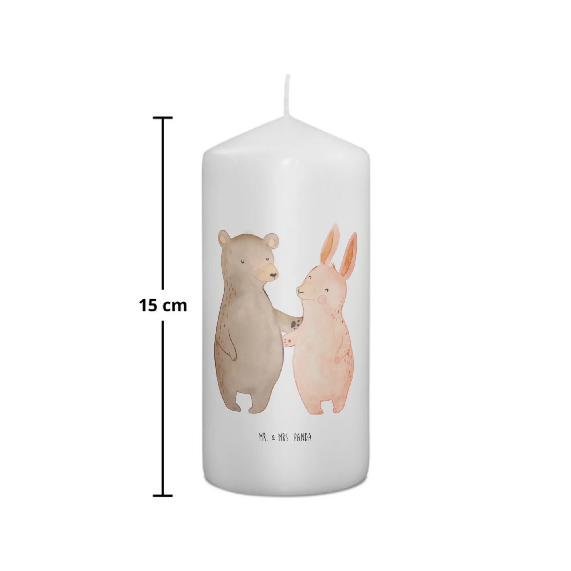 Measuring 290 mm in height and 80 mm in diameter, this beautiful candle is large enough to stand out while still being a perfect addition to any home decor. Made from premium paraffin wax, it boasts an ultra-long burn time, allowing your loved one to enjoy its gentle glow and delightful scent for hours. The candle is not customizable, which adds to its appeal as a ready-to-give gift that embodies the spirit of love and friendship. With its enchanting design featuring a bear and bunny in a warm embrace, it conveys a sweet message without the need for any words.