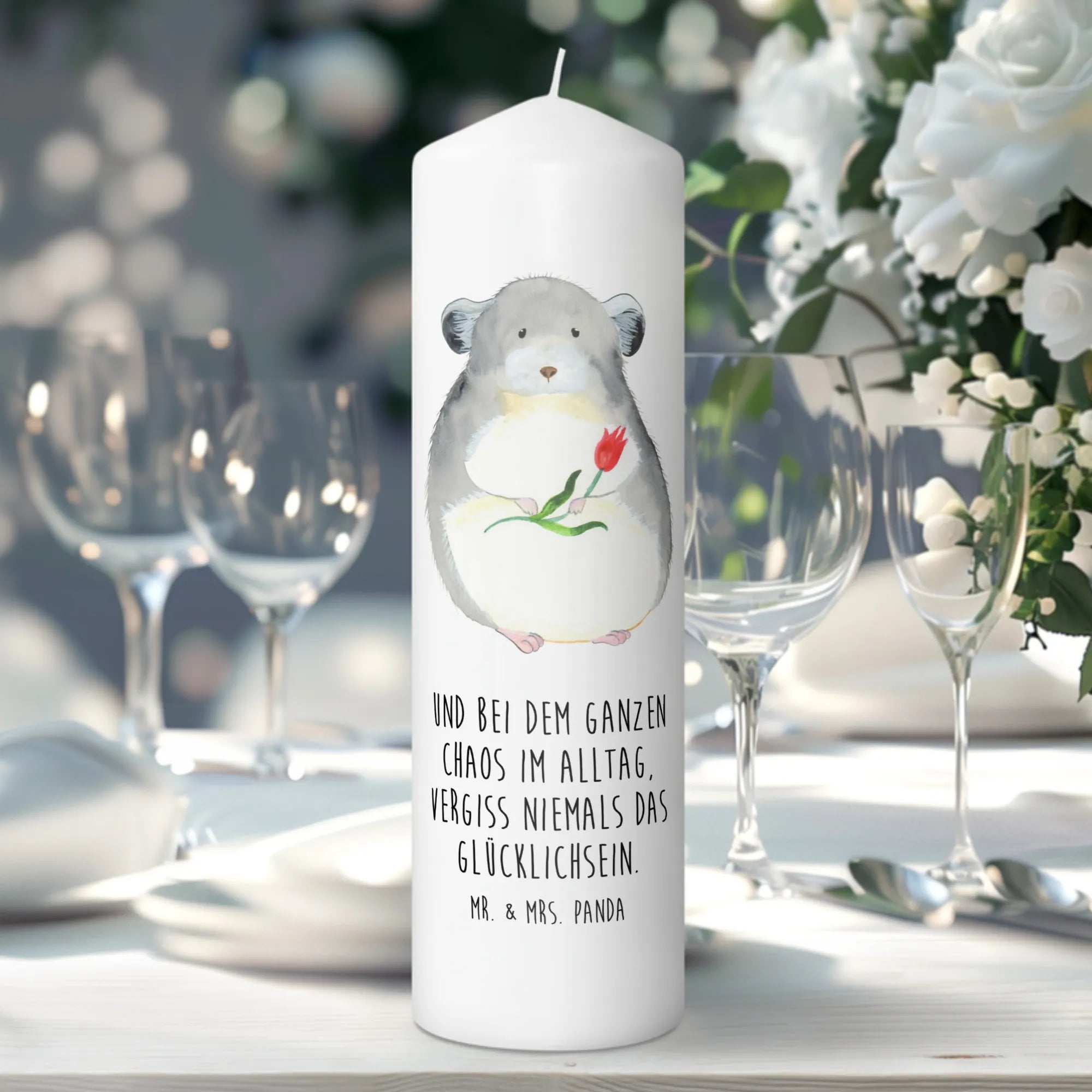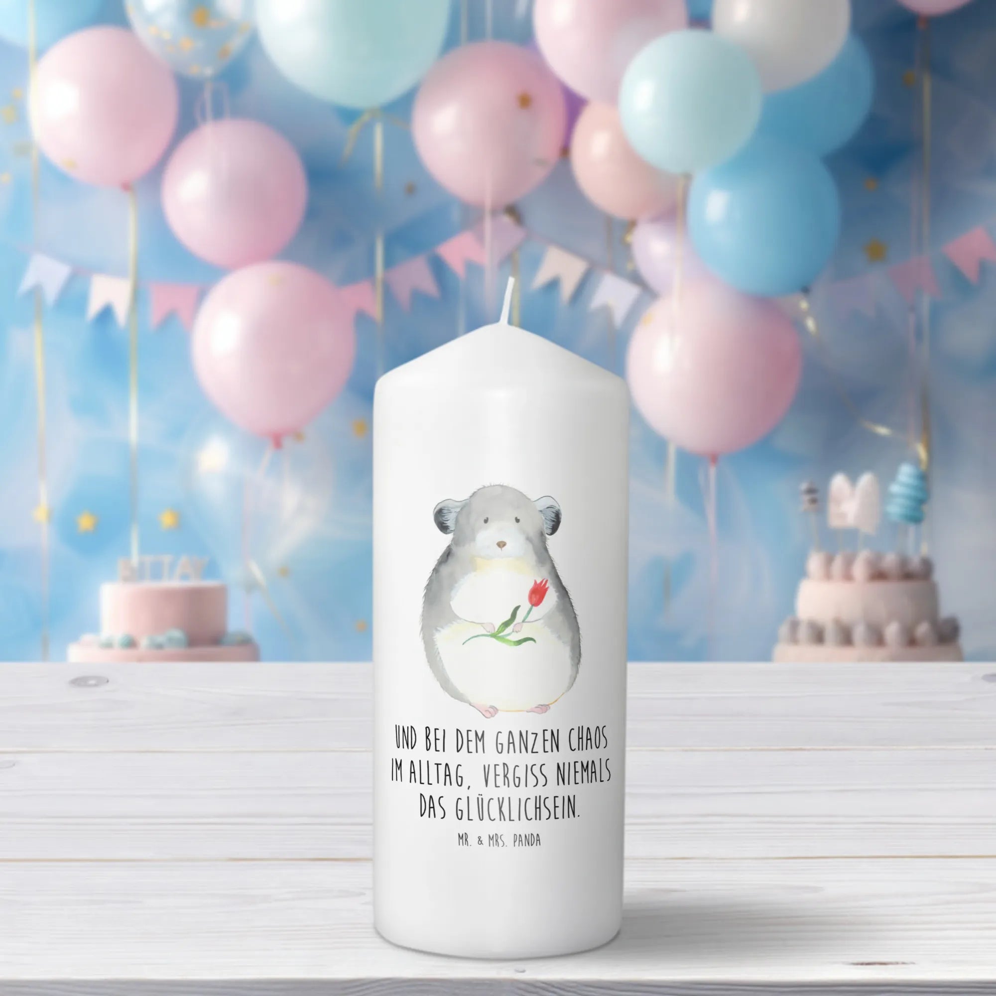 Candle chinchilla flower - 19 x 8 cm - with a saying