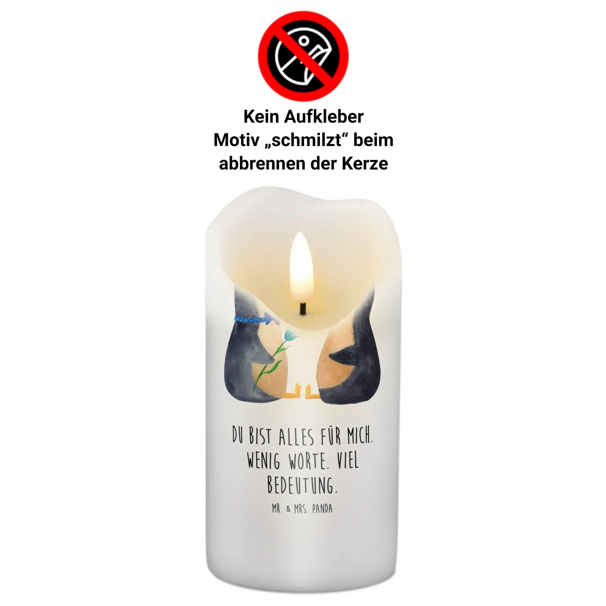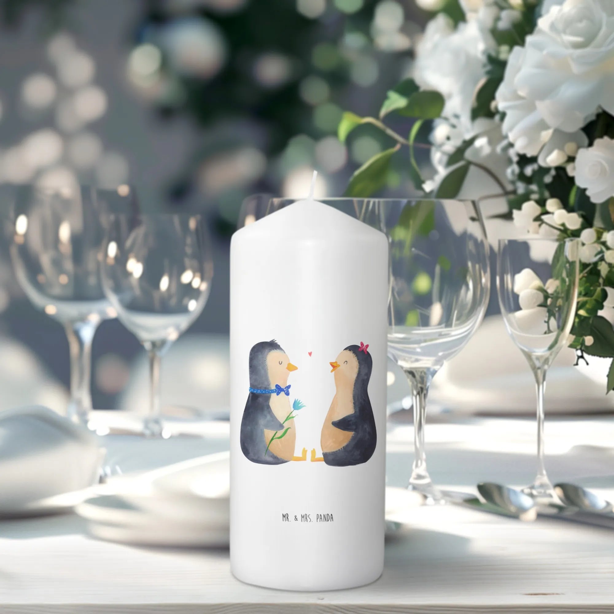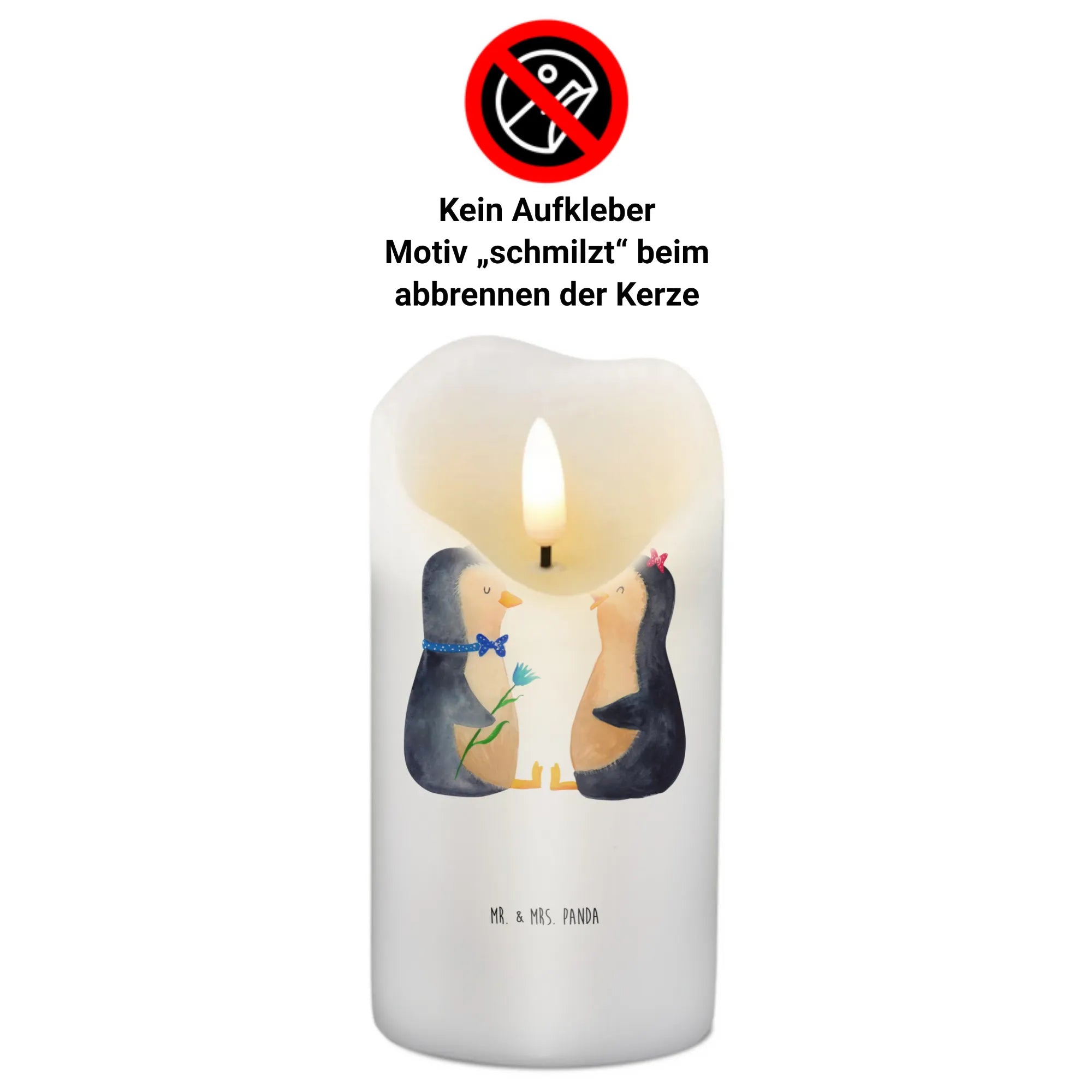 Looking for the perfect gift that expresses love and warmth? Meet the charming Candle featuring the adorable Penguin Couple from the Mr. & Mrs. Panda Penguin Collection! This extraordinary candle is designed to bring a smile to your face and warmth to your heart. With its captivating design of two loveable penguins sitting face to face, gazing into each other's eyes, this candle embodies the joy of love, making it an ideal gift for couples, lovers, and those celebrating special moments together.