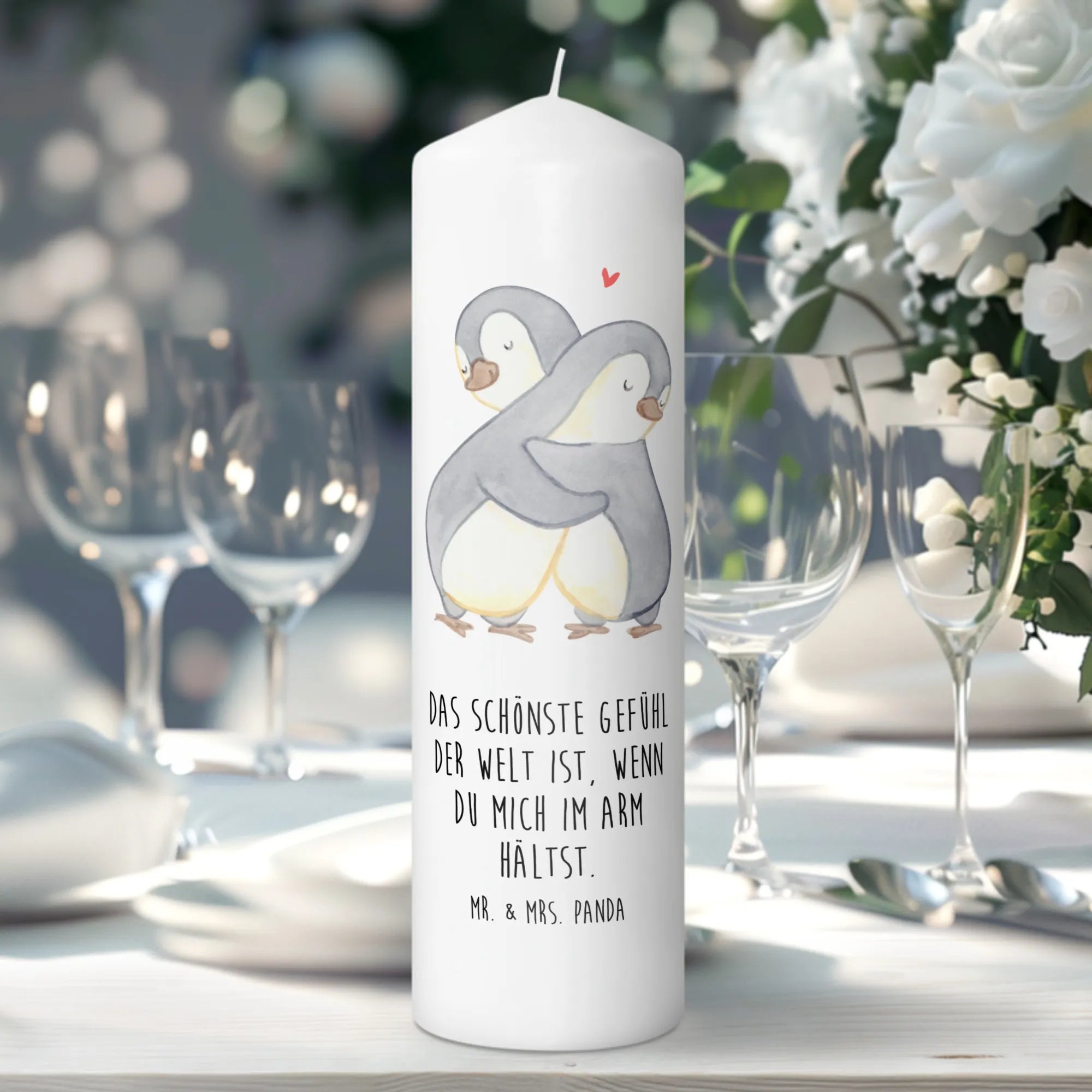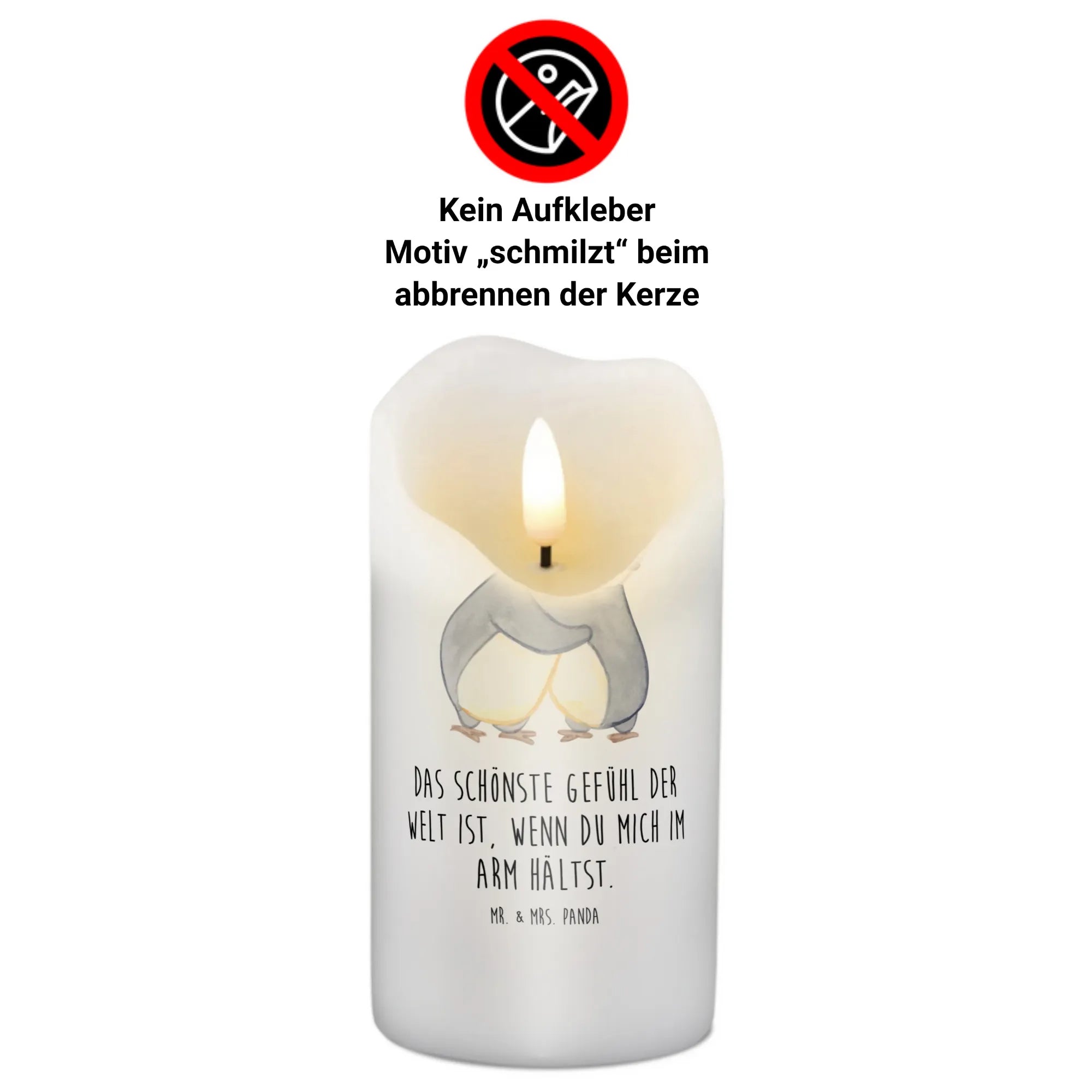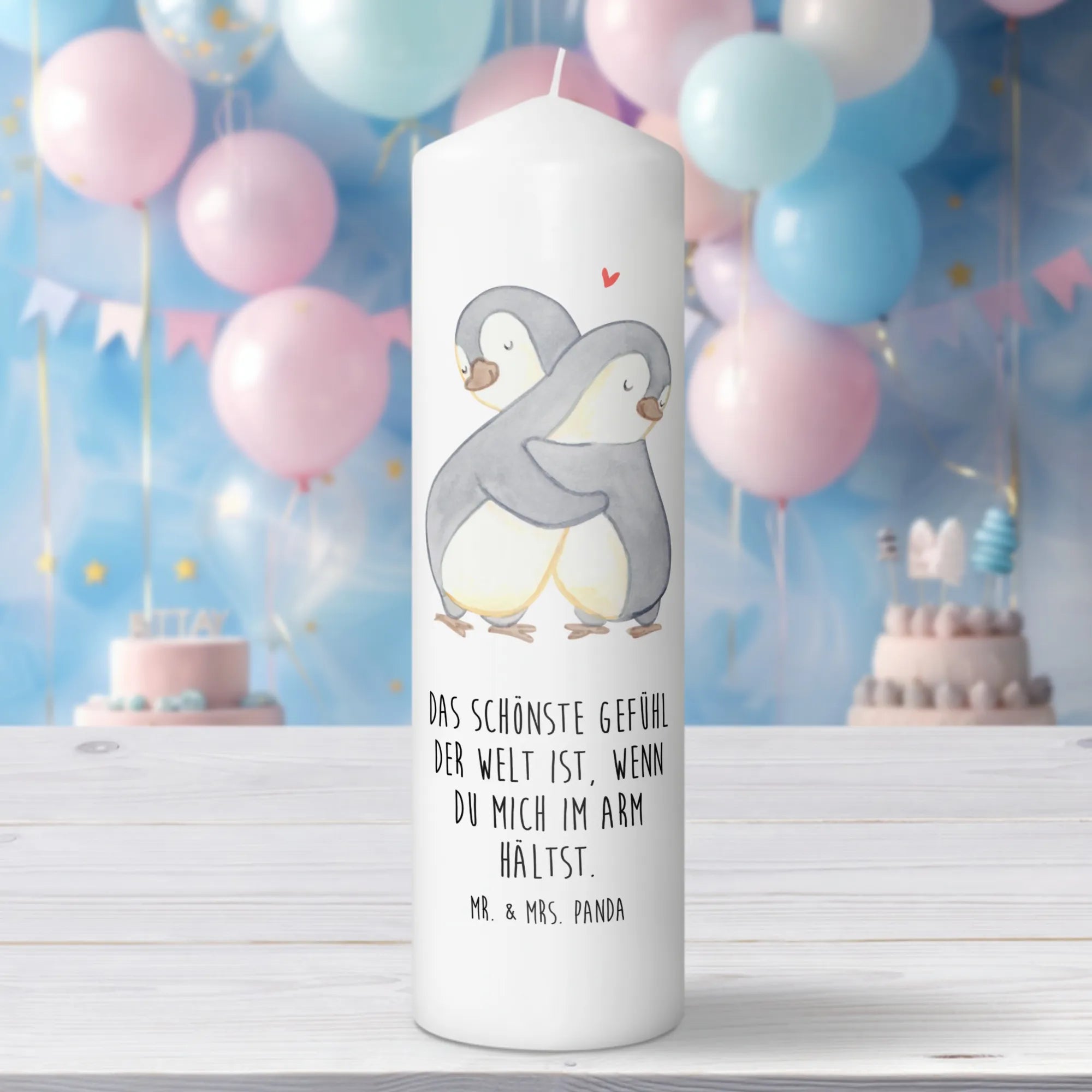 Light up your space with our stunning Mr. & Mrs. Panda candle, measuring 150 mm (6 inches) in height and 70 mm (3 inches) in diameter. Crafted from high-quality paraffin wax, this beautiful candle not only illuminates your room but also features adorable prints and heartfelt sayings that touch the soul. With a weight of 250 g (9 oz), it's perfect for creating that warm, inviting atmosphere during birthdays, anniversaries, or quiet moments of reflection. The unique design ensures the motif gently melts away as the candle burns, adding a spectacular visual element to your experience. Whether you want to celebrate a special occasion or find solace during times of mourning, our candle is always a thoughtful choice. Thanks to its ultra-long burning duration, you'll enjoy its soft glow for hours. Treat yourself or a loved one to this delightful addition to your home decor, and let the soothing scent uplift your spirit.