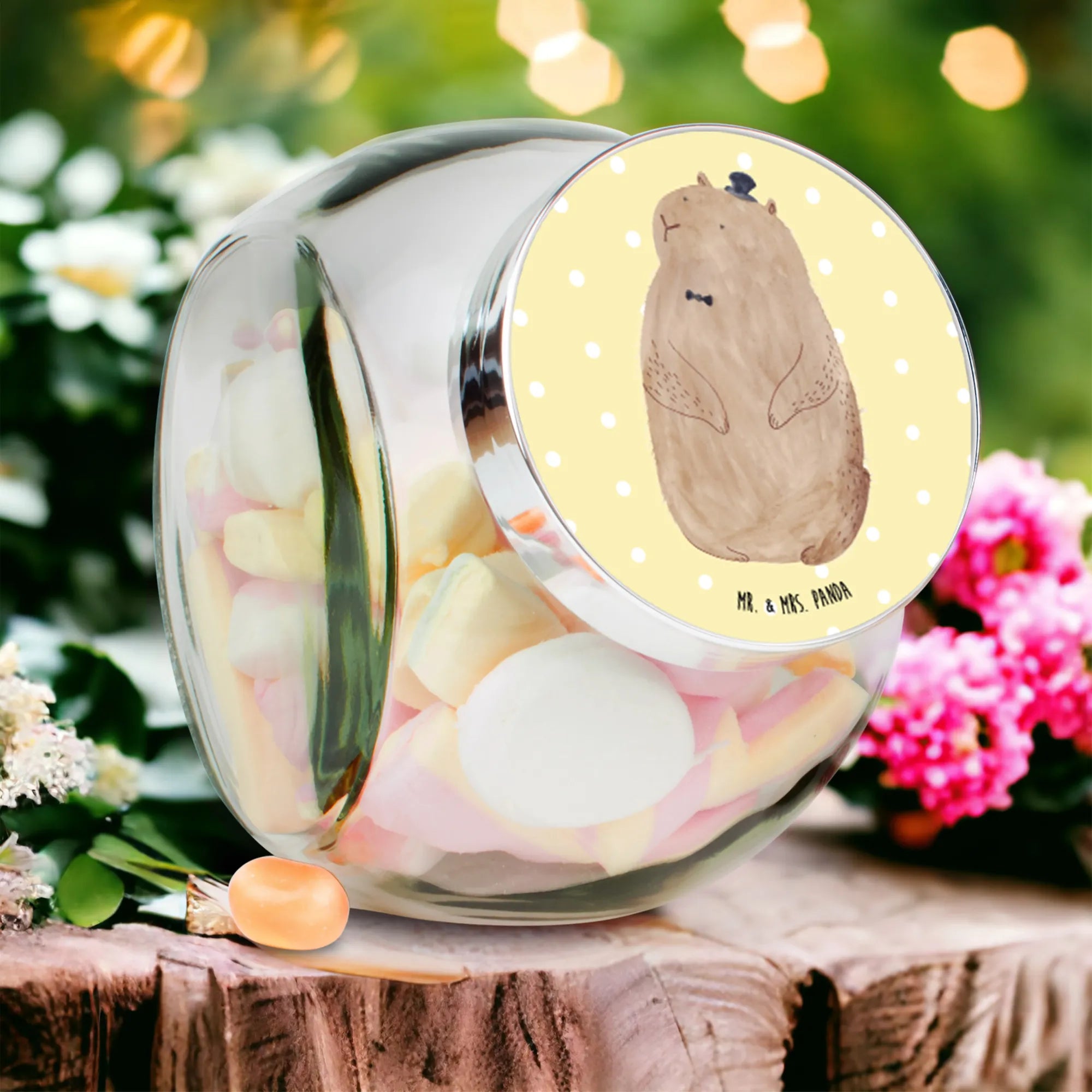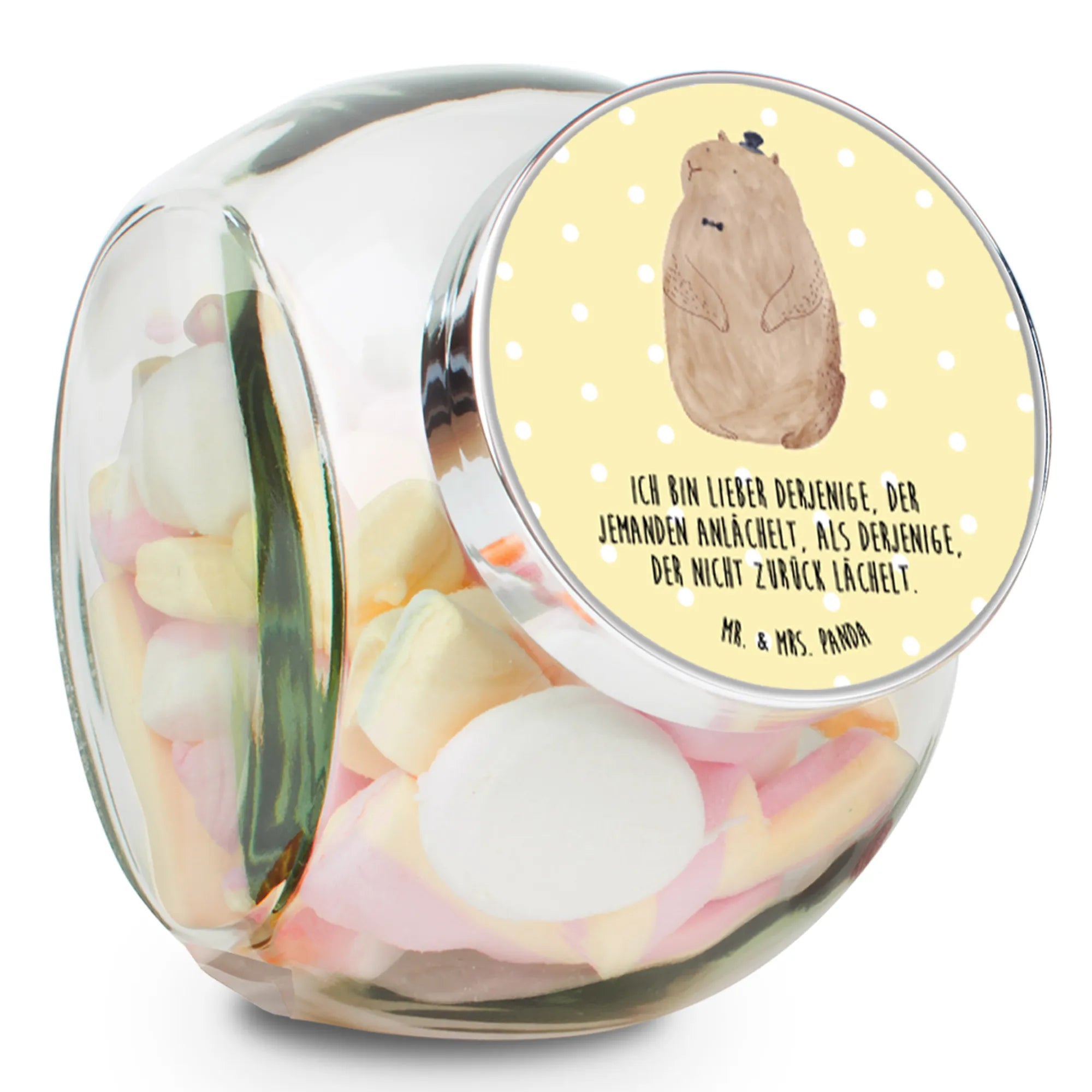 Candy Jar Groundhog - XL 2000ml - with saying - Yellow Pastel