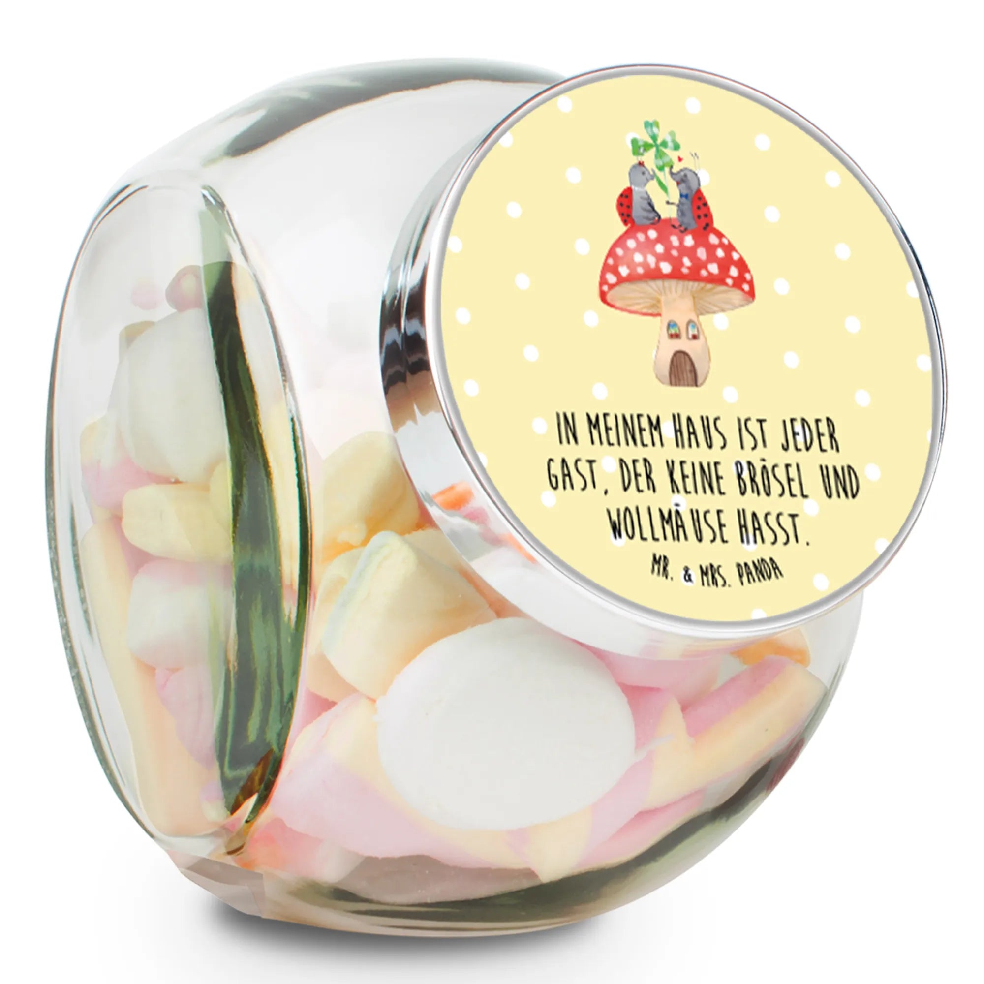 Candy Jar ladybug toadstool - XL 2000ml - with a saying - Yellow Pastel