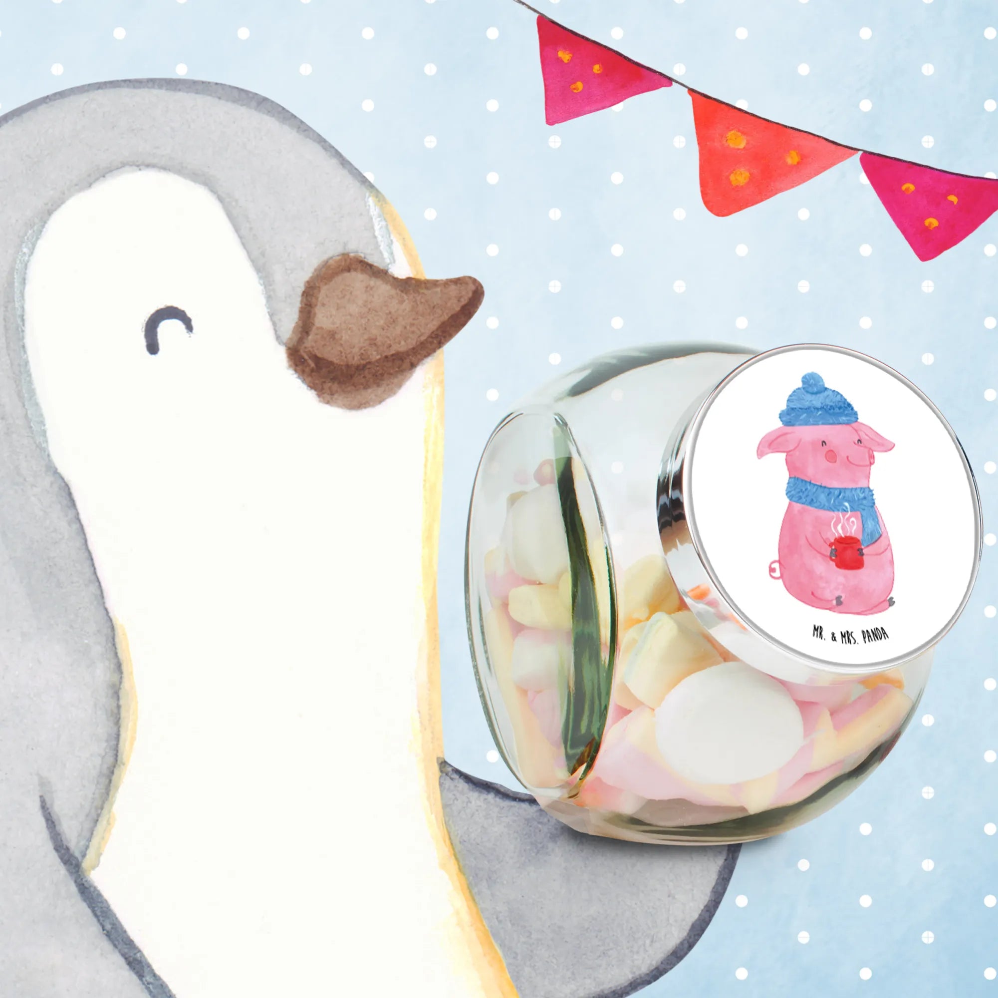 If you’re looking for the perfect gift for anyone who loves cozy winter vibes, look no further than the delightful Candy Jar featuring our charming Mulled Pig design from the Winter Collection by Mr. & Mrs. Panda!