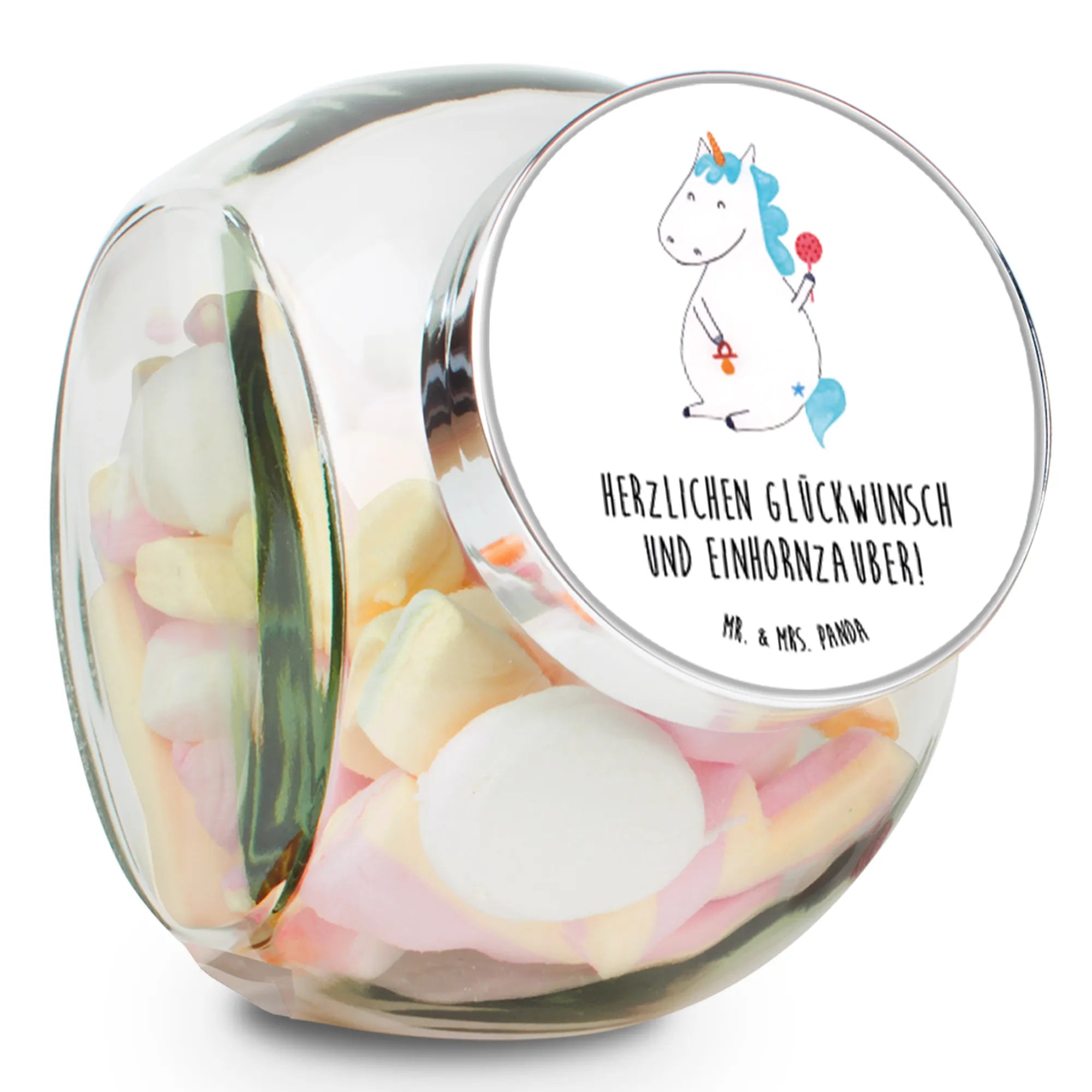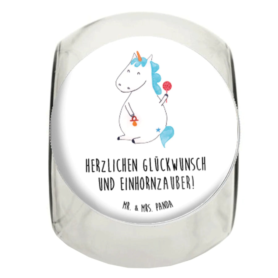 Great for mothers, parents-to-be, or anyone with a penchant for all things enchanting, this glass container brings a sprinkle of unicorn magic to any occasion. The Unicorn Baby design, complete with a pacifier, instantly captivates hearts, ensuring it remains a cherished item for years to come. The thoughtful slogan “Herzlichen Glückwunsch und Einhornzauber!” adds a special touch, making it not only a gift for the present but also a keepsake for the future.