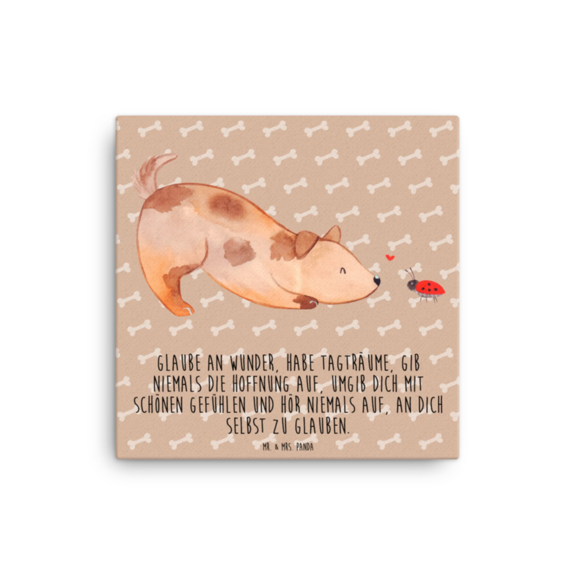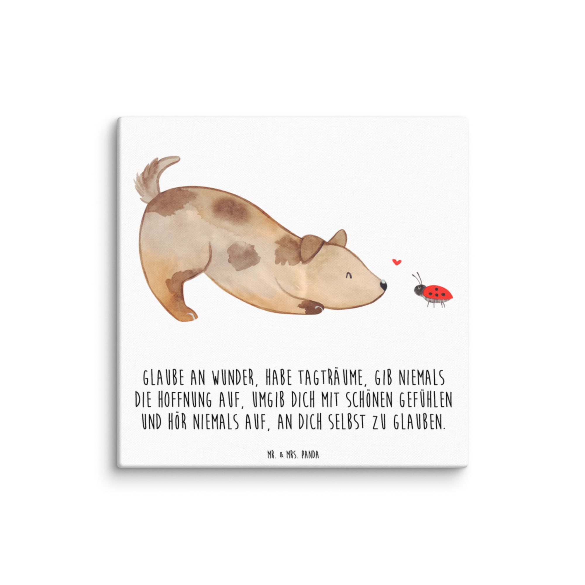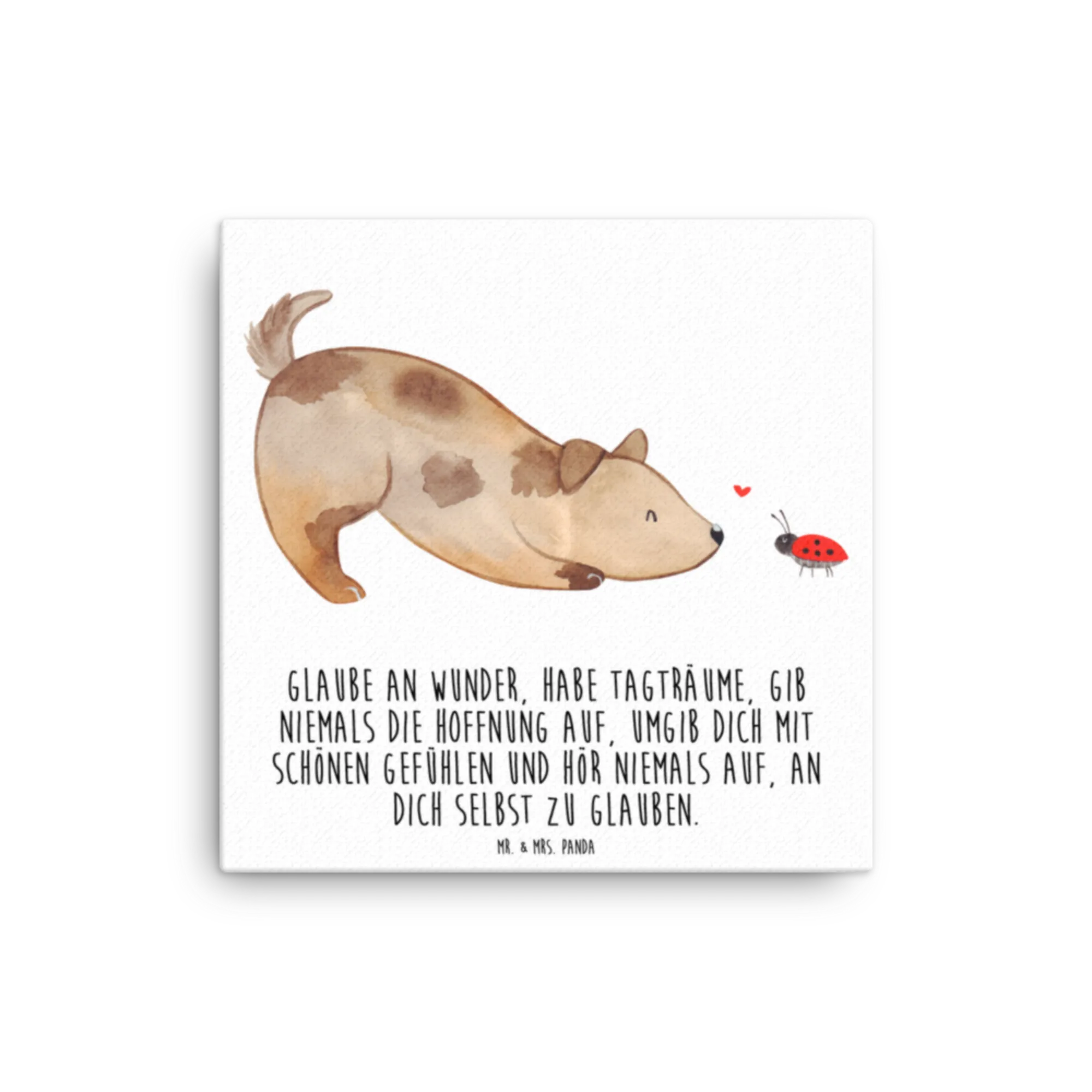 Canvas picture Dog ladybug - 40 x 40 cm - with a saying - White