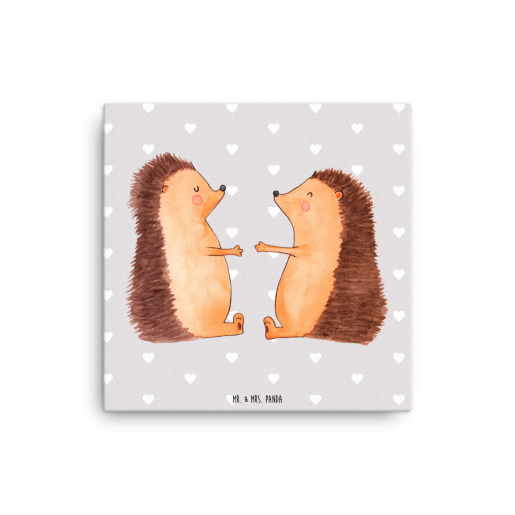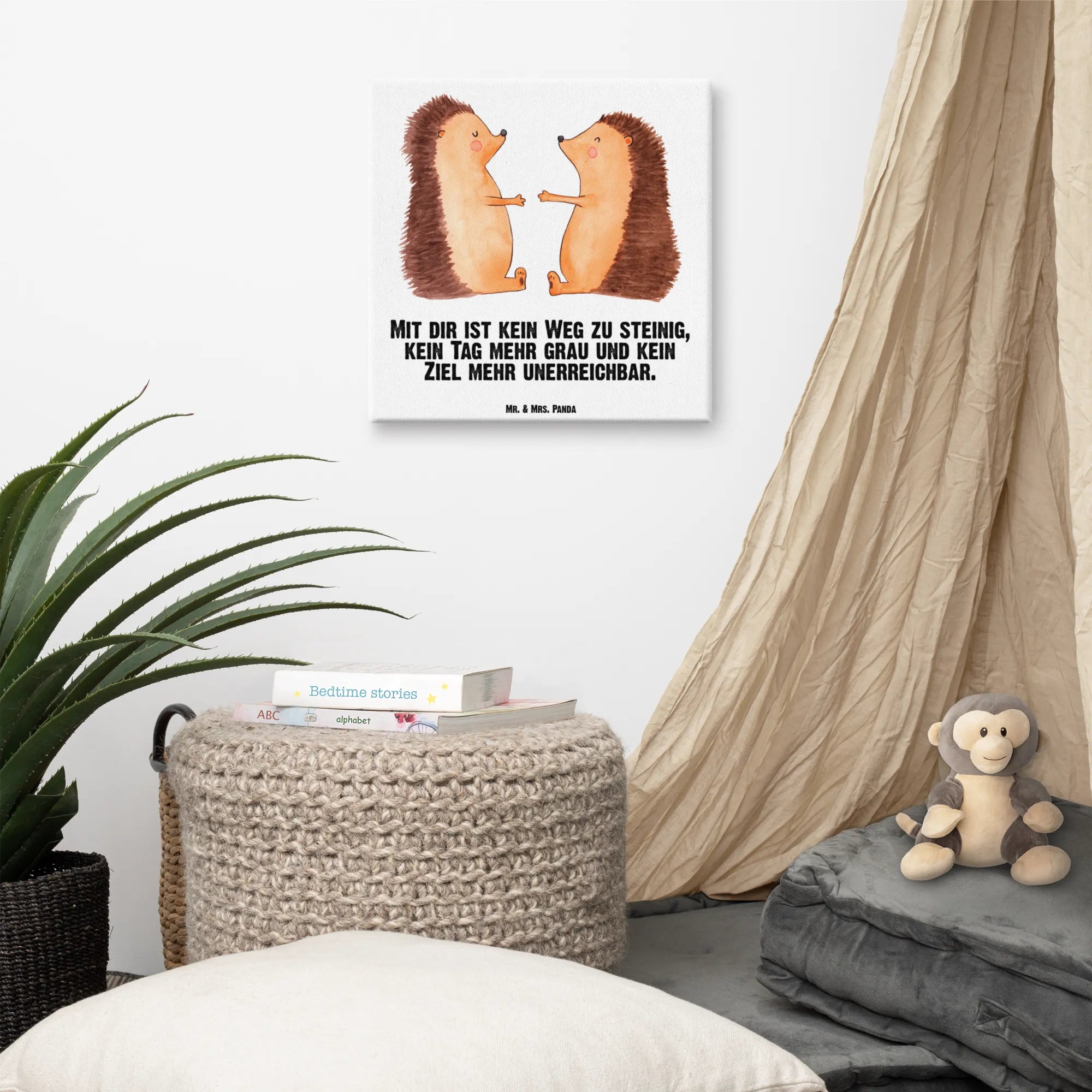 Canvas picture Hedgehogs in love - 40 x 40 cm - with a saying - White