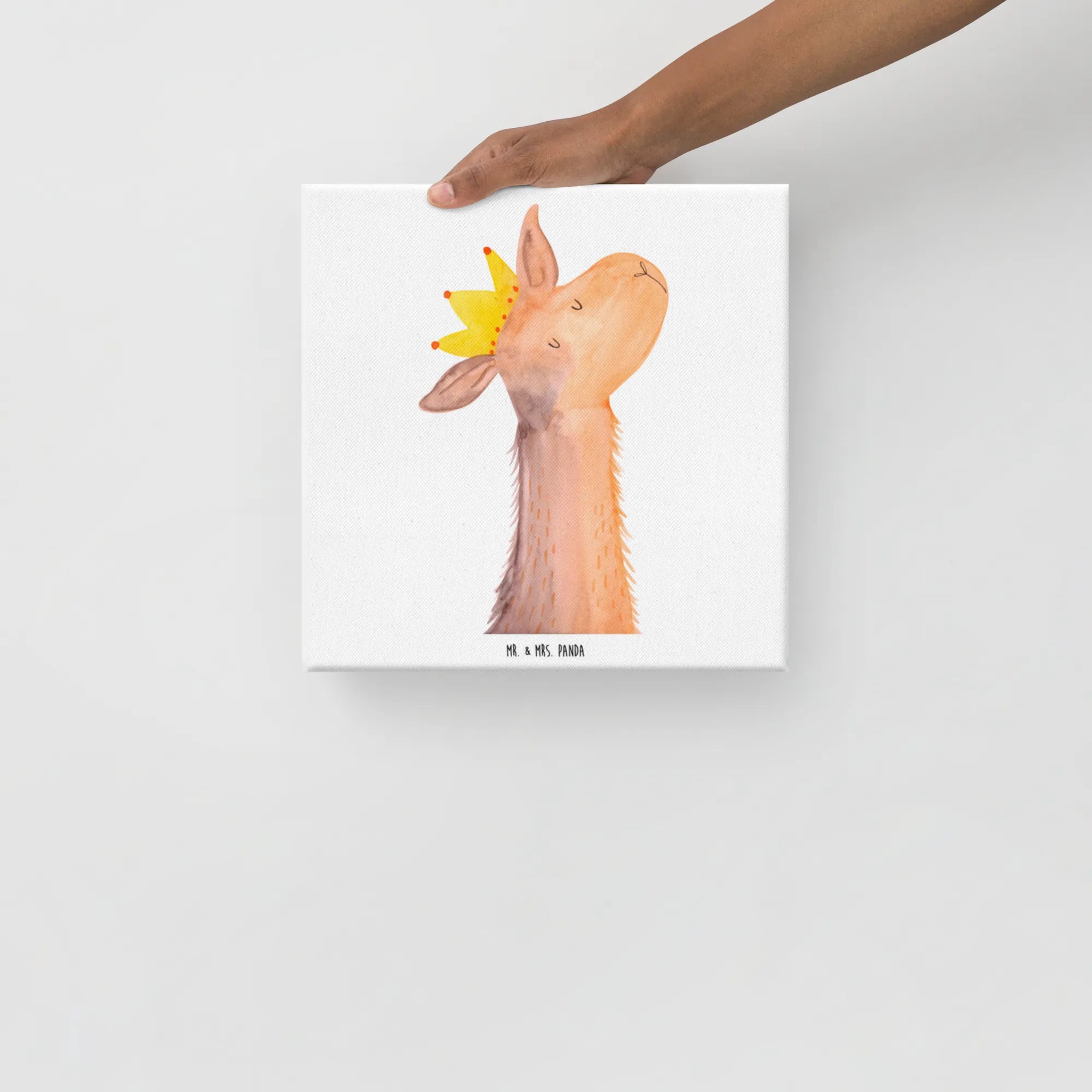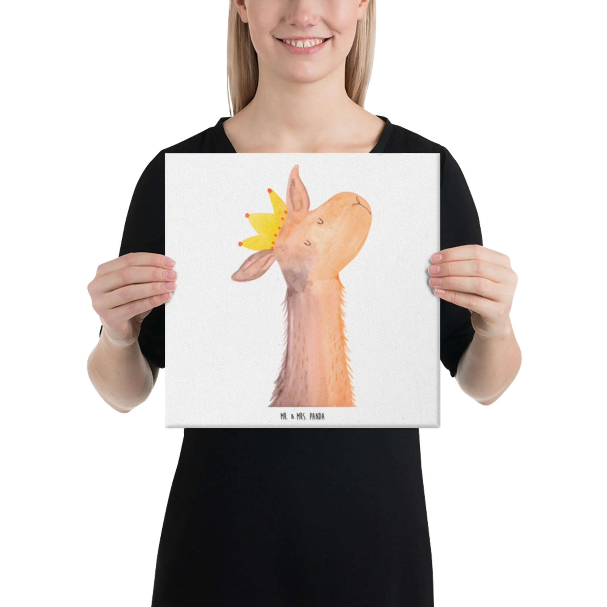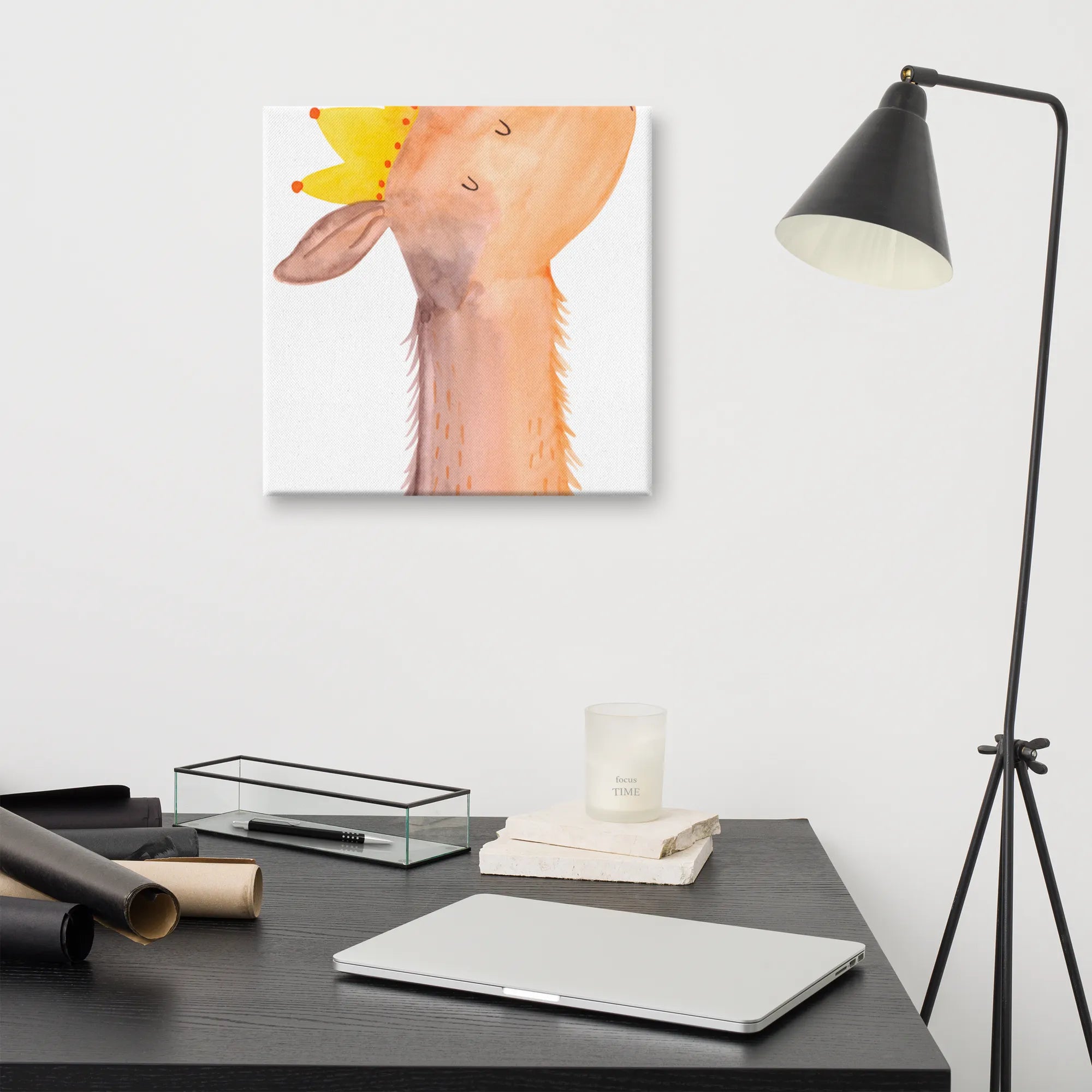 Canvas picture llama head king - 40 x 40 cm - with a saying