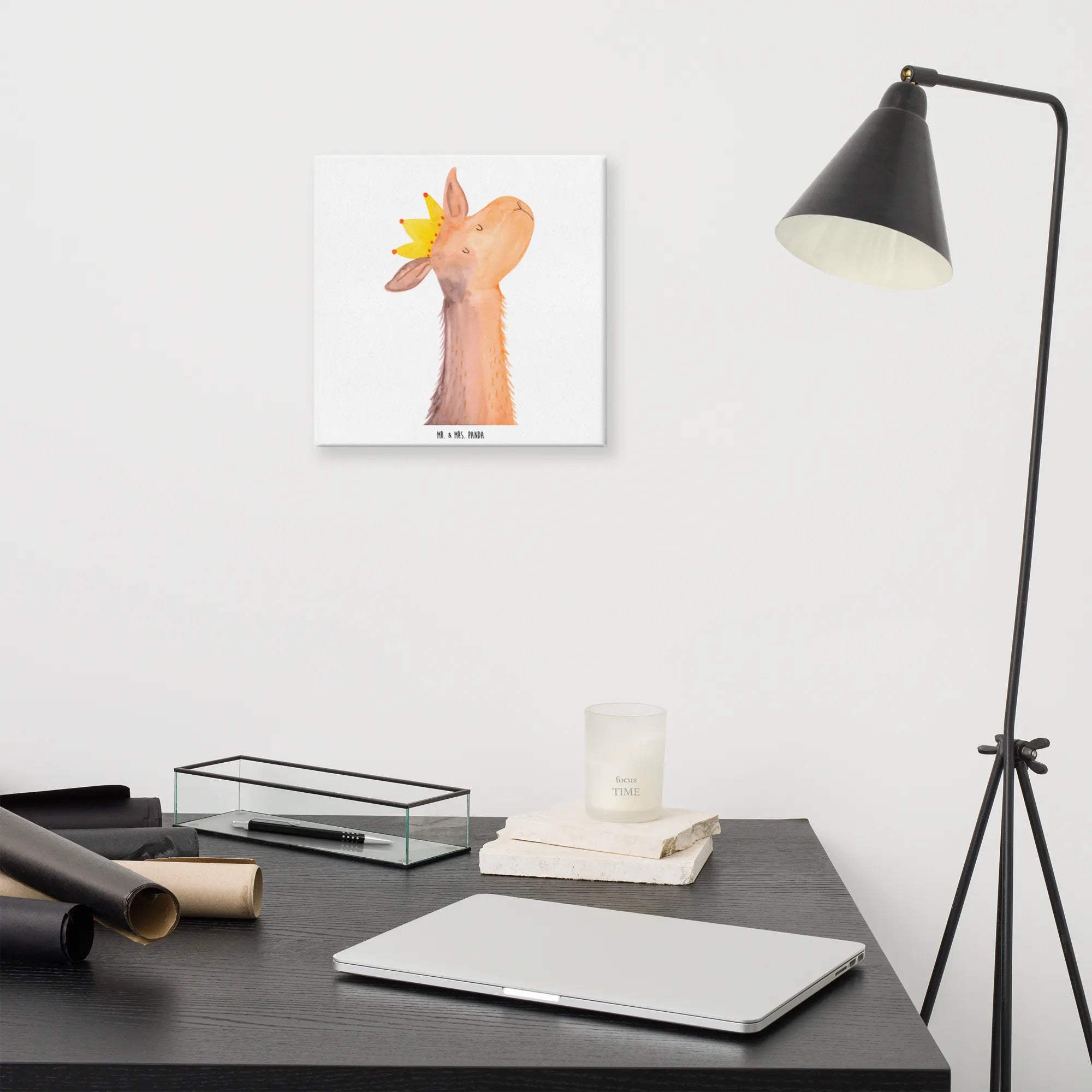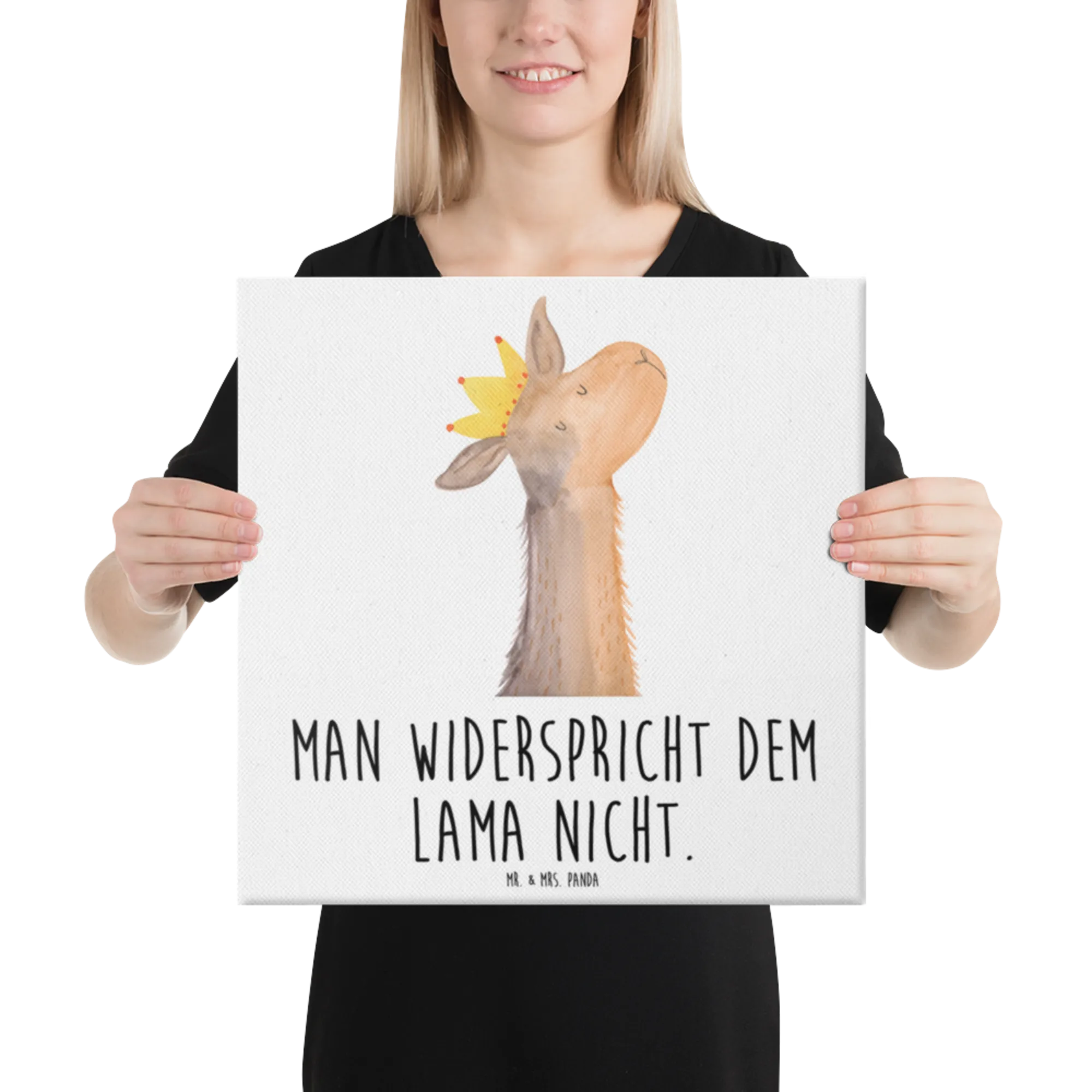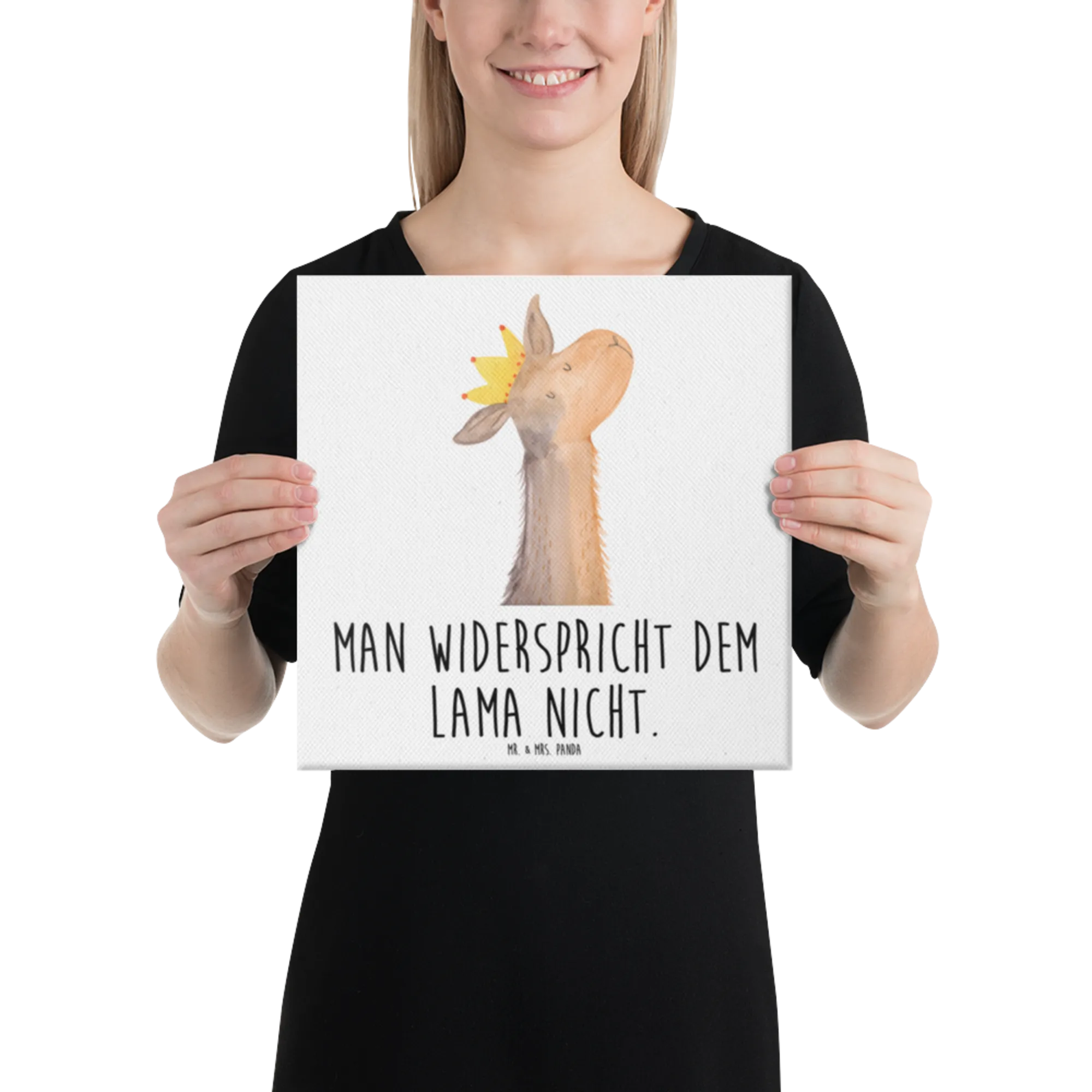 Canvas picture llama head king - 40 x 40 cm - with a saying
