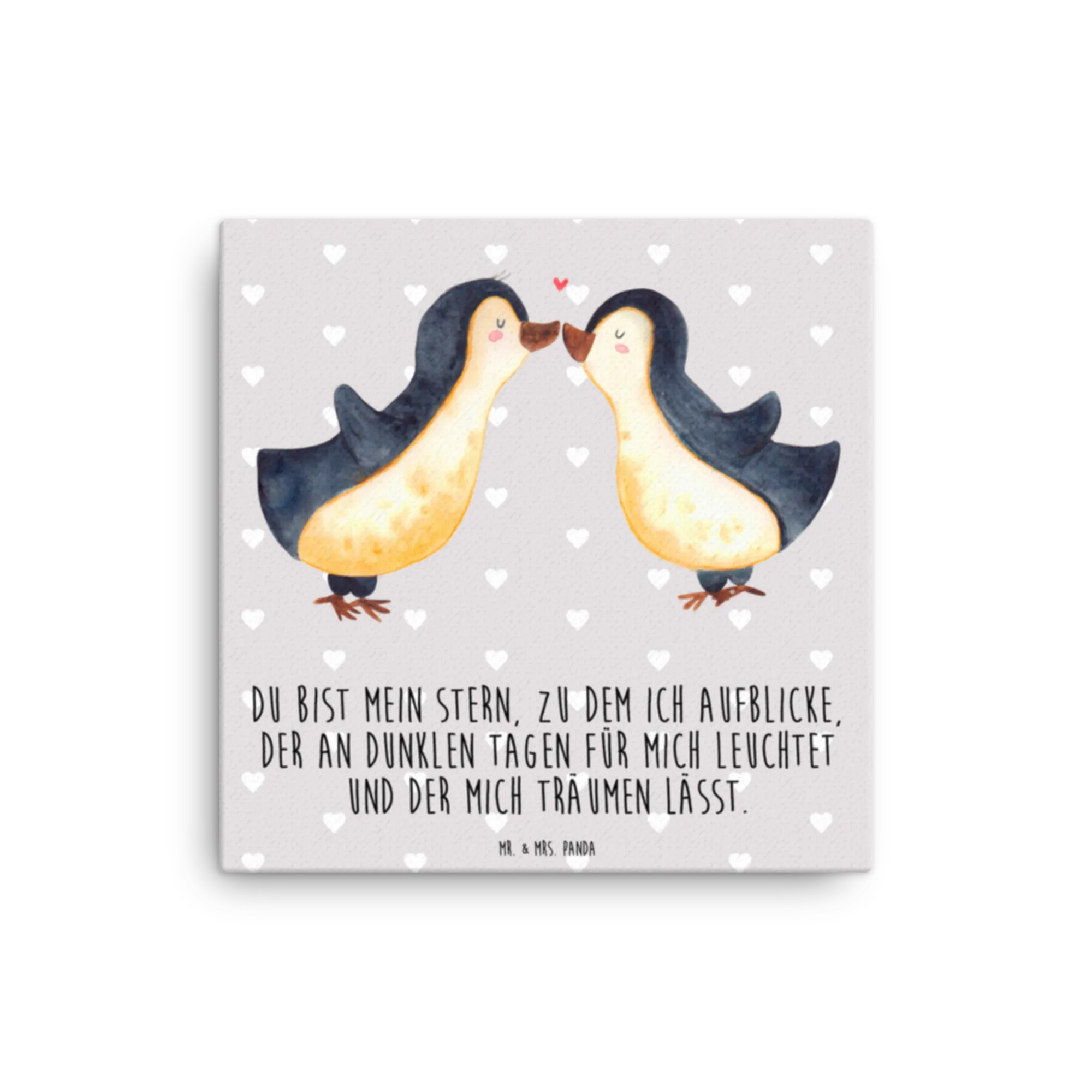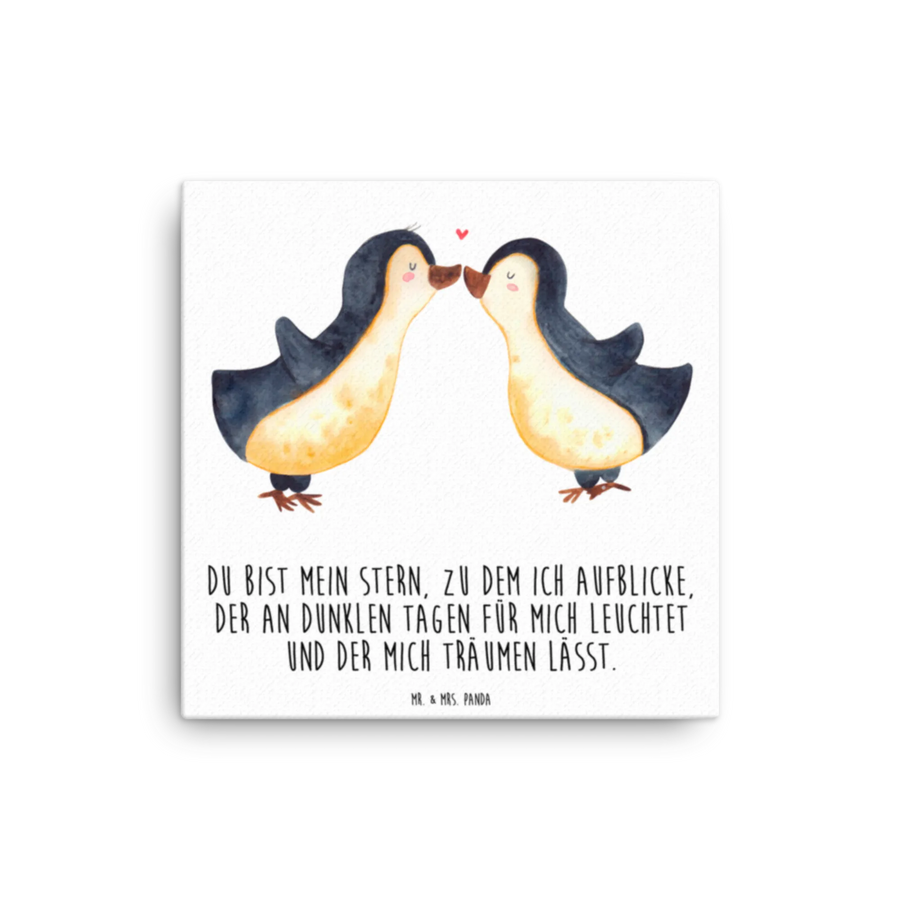 Canvas picture Penguins in love - 40 x 40 cm - with a saying - White