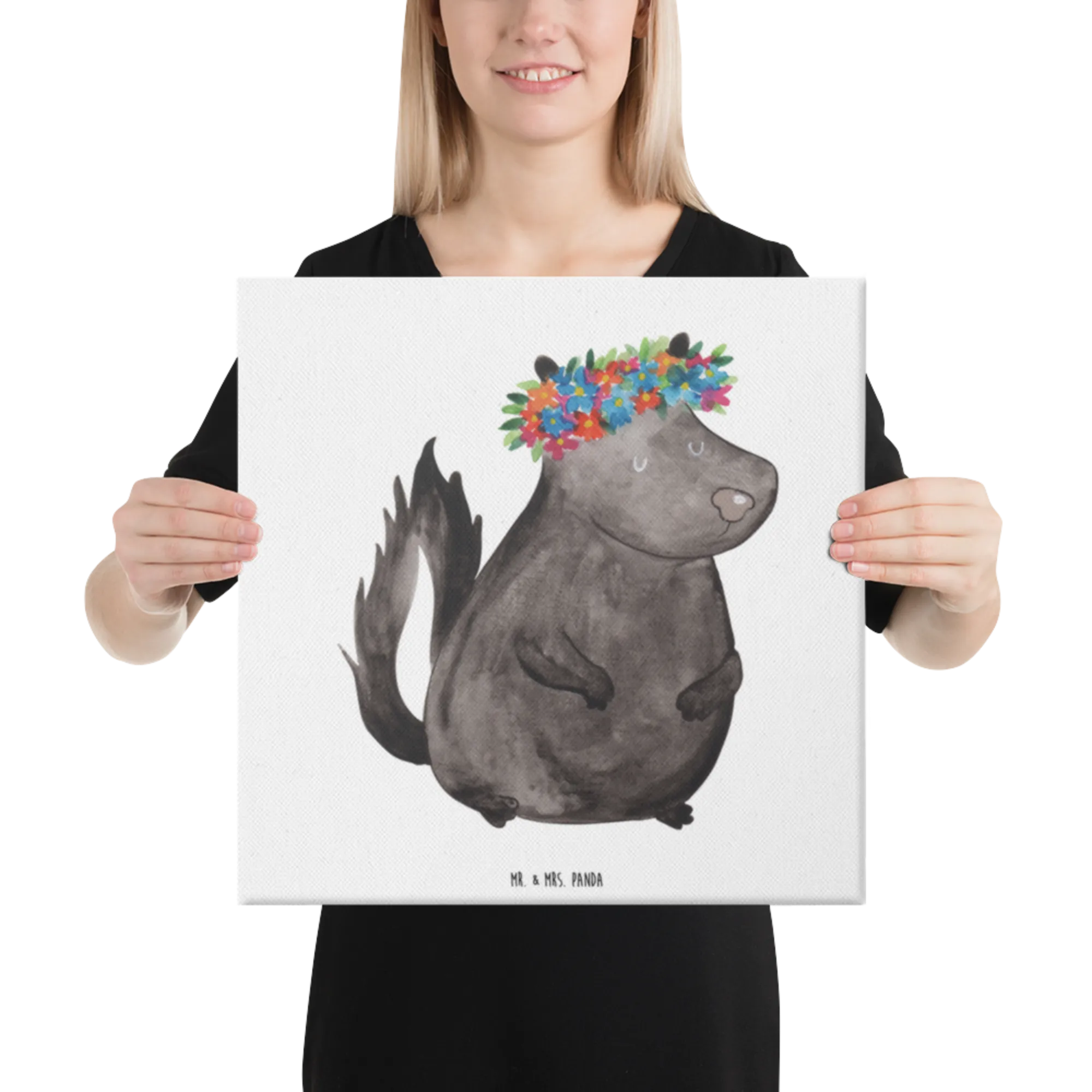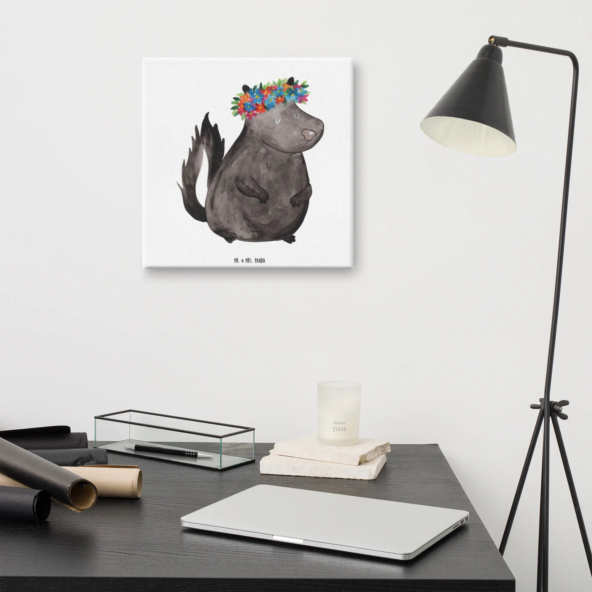 Introducing the enchanting Skunk Flower Girl canvas picture from the delightful Skunk Collection by Mr. & Mrs. Panda! Perfectly capturing the whimsical charm of nature's playful creatures, this vibrant artwork features a sweet skunk adorned with a colorful flower crown, delicately hand-painted in watercolor.