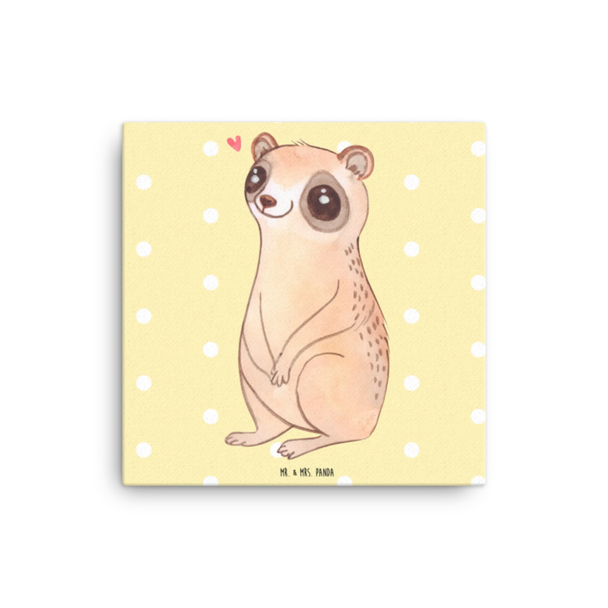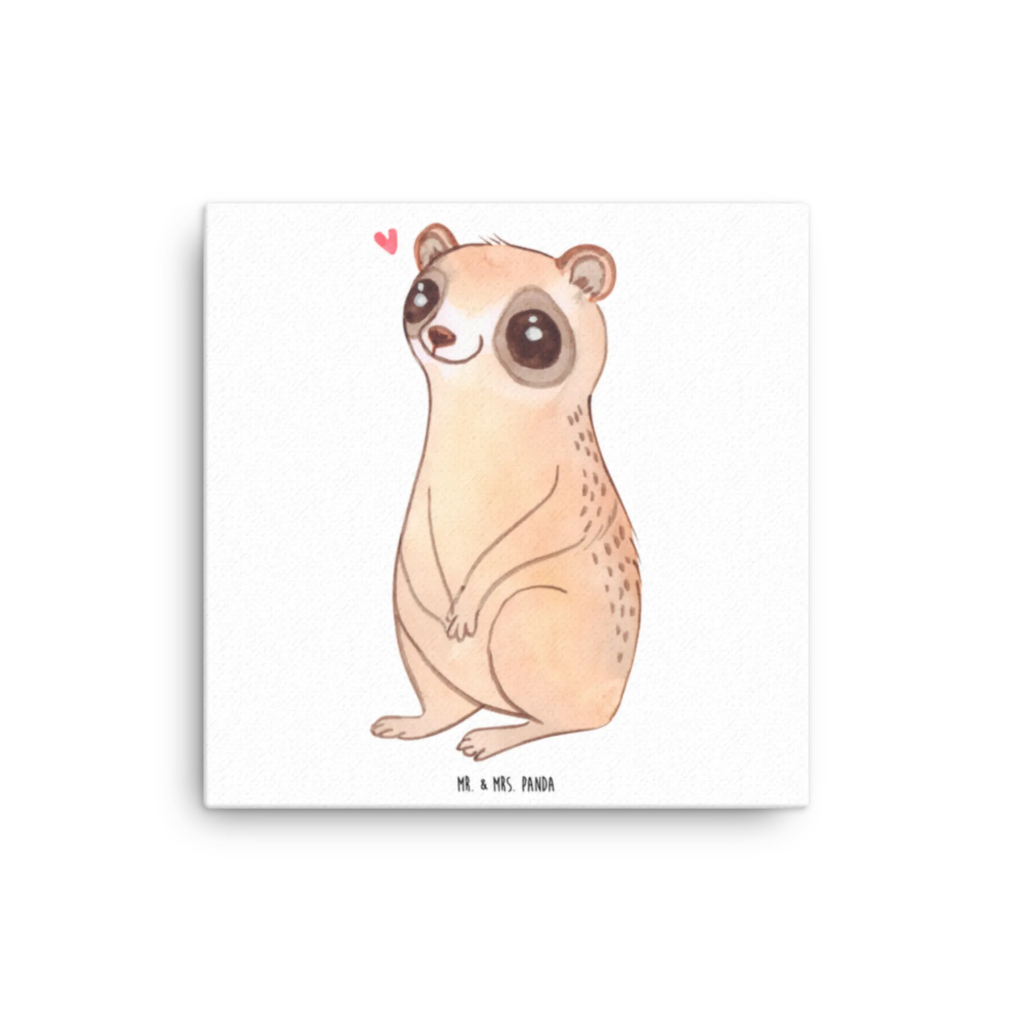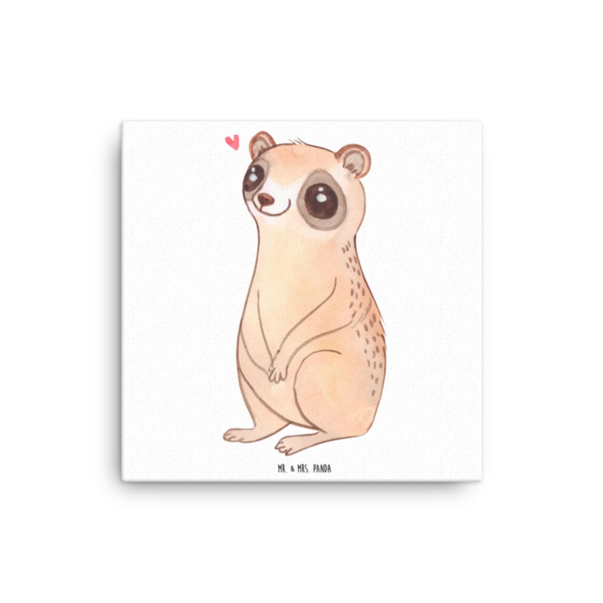 Canvas picture Slow loris Happy - 40 x 40 cm - with a saying - White