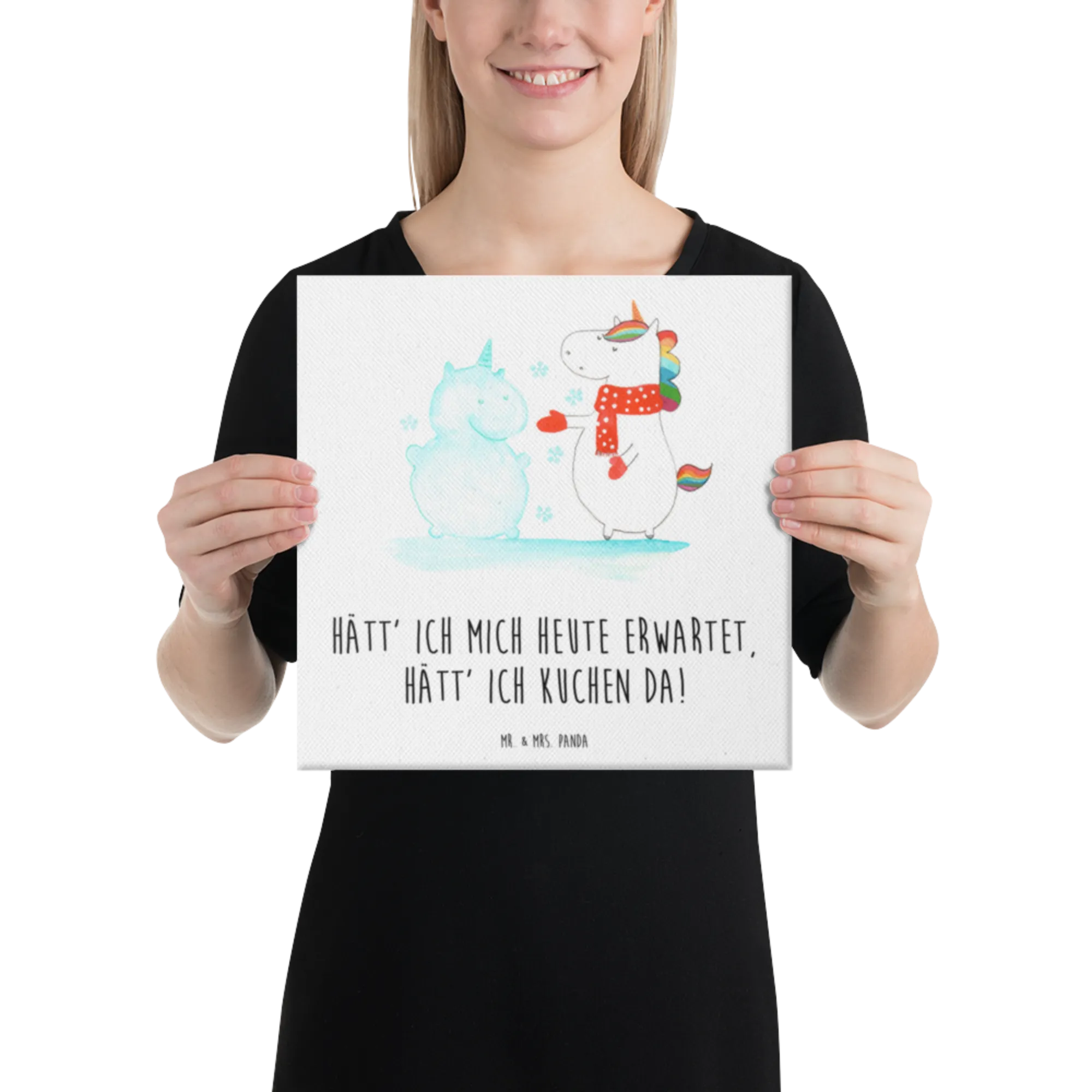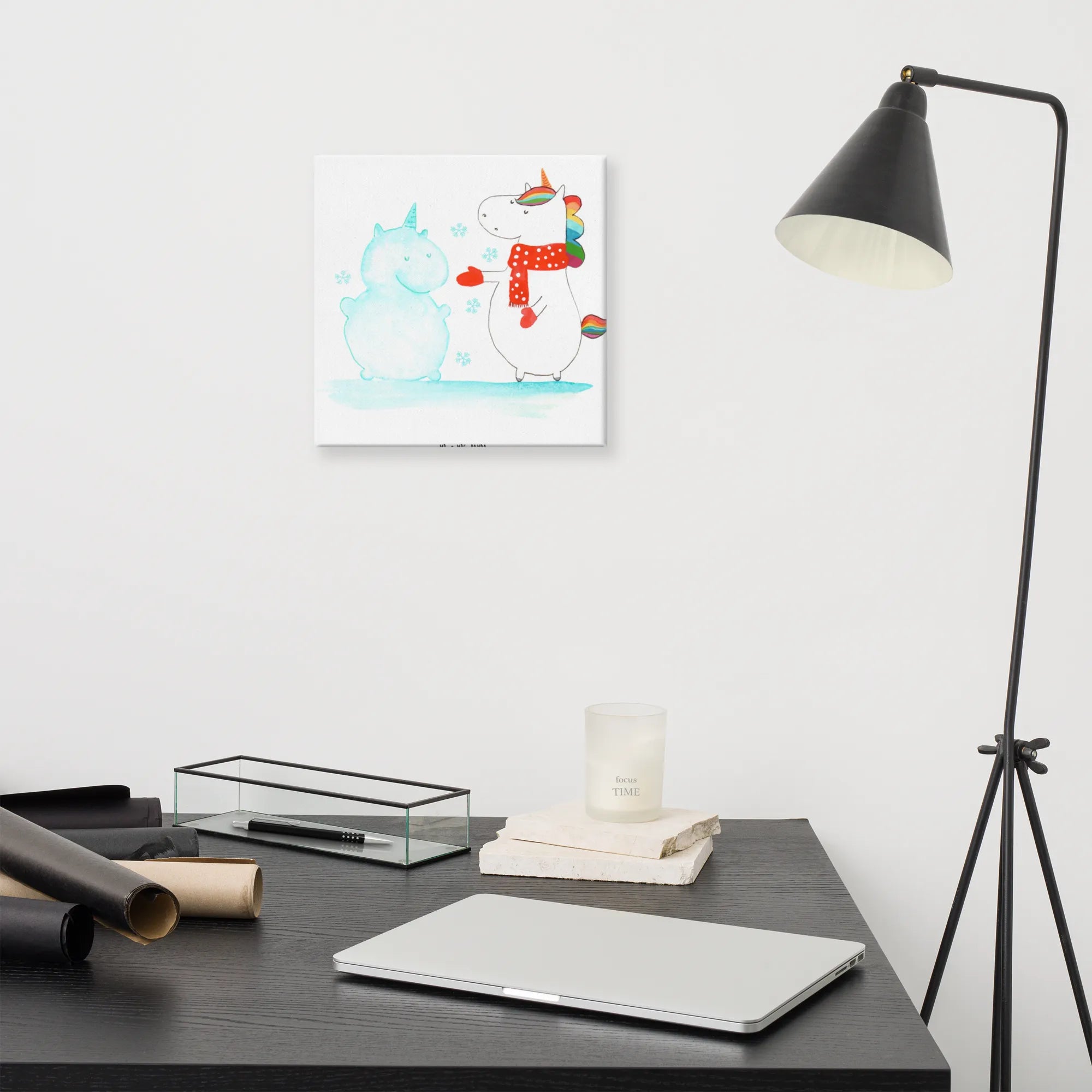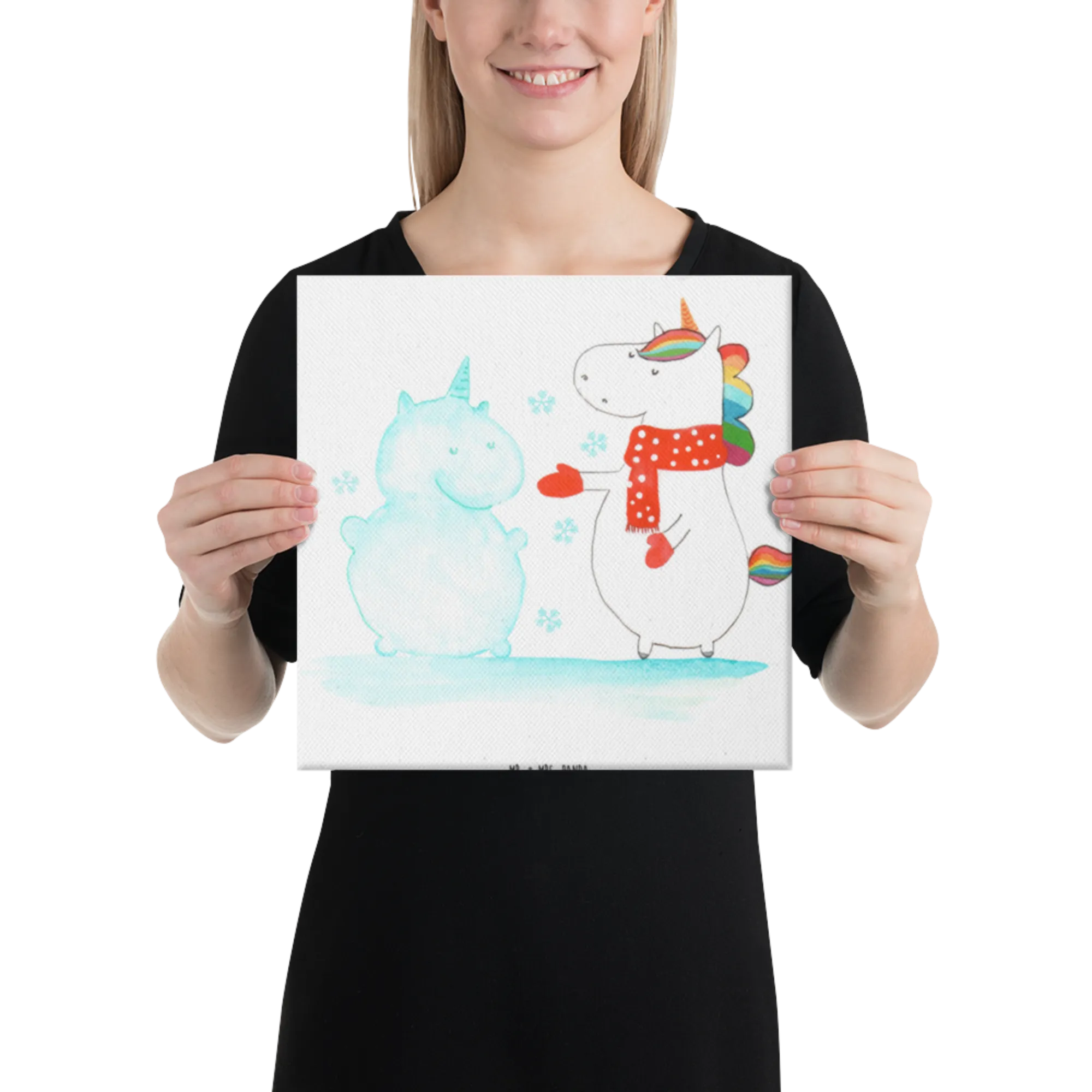 Canvas picture unicorn snowman - 40 x 40 cm - with a saying