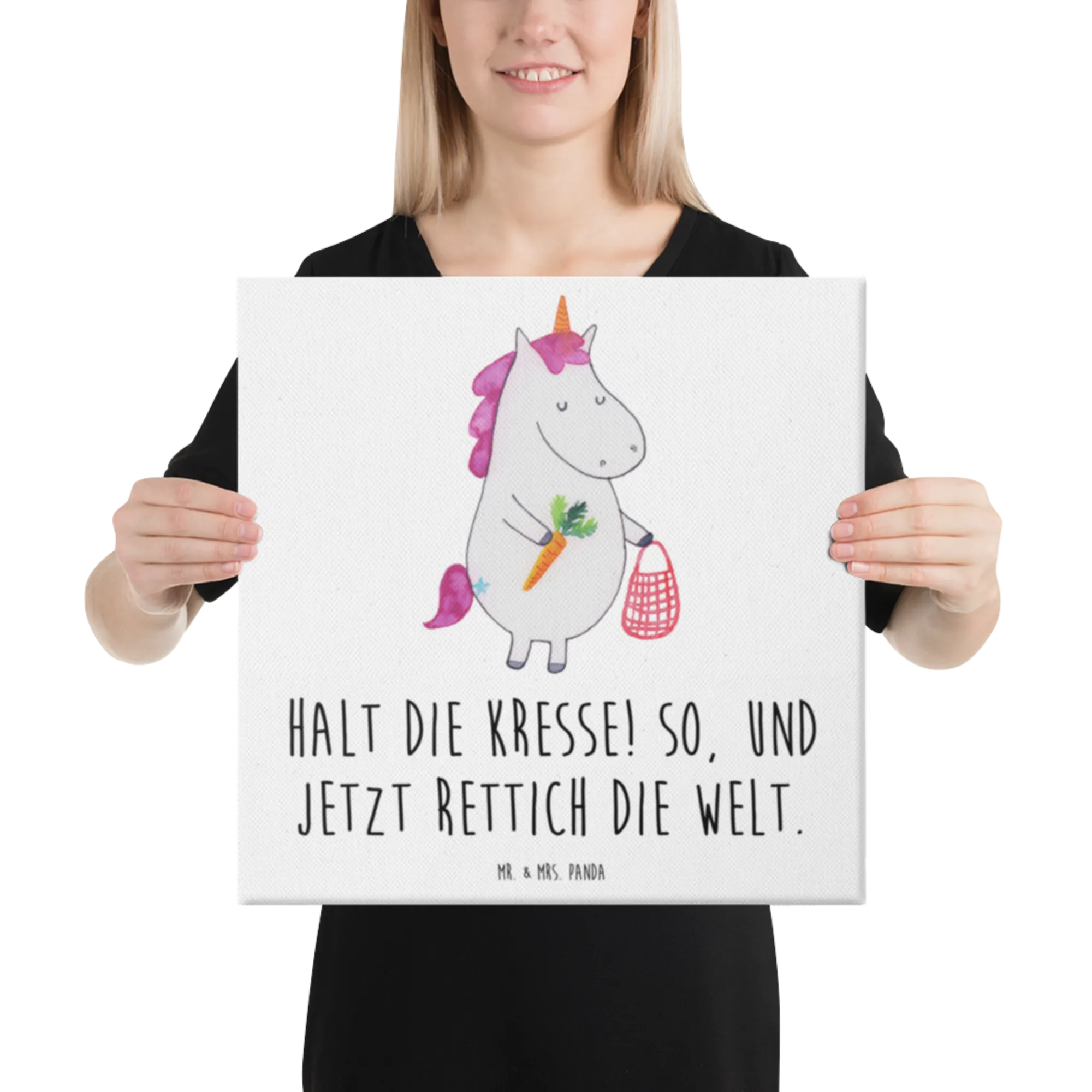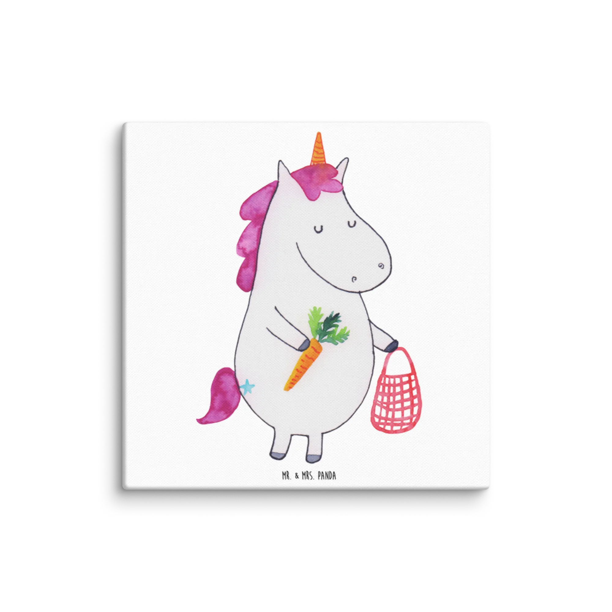 Unser Einhorn Gemüse aus der Einhorn - Kollektion von Mr. & Mrs. Panda ist ein liebevolles Kunstdruck-Leinwandbild, das ein fröhliches Einhorn zeigt, das frisches Gemüse vom Wochenmarkt/Biomarkt nach Hause trägt. Die handgezeichnete Aquarell-Illustration von Mrs. Panda verbindet Fantasie mit natürlichem Charme und passt perfekt in Kinderzimmer, Wohnzimmer oder als originelle Einhorn Deko.