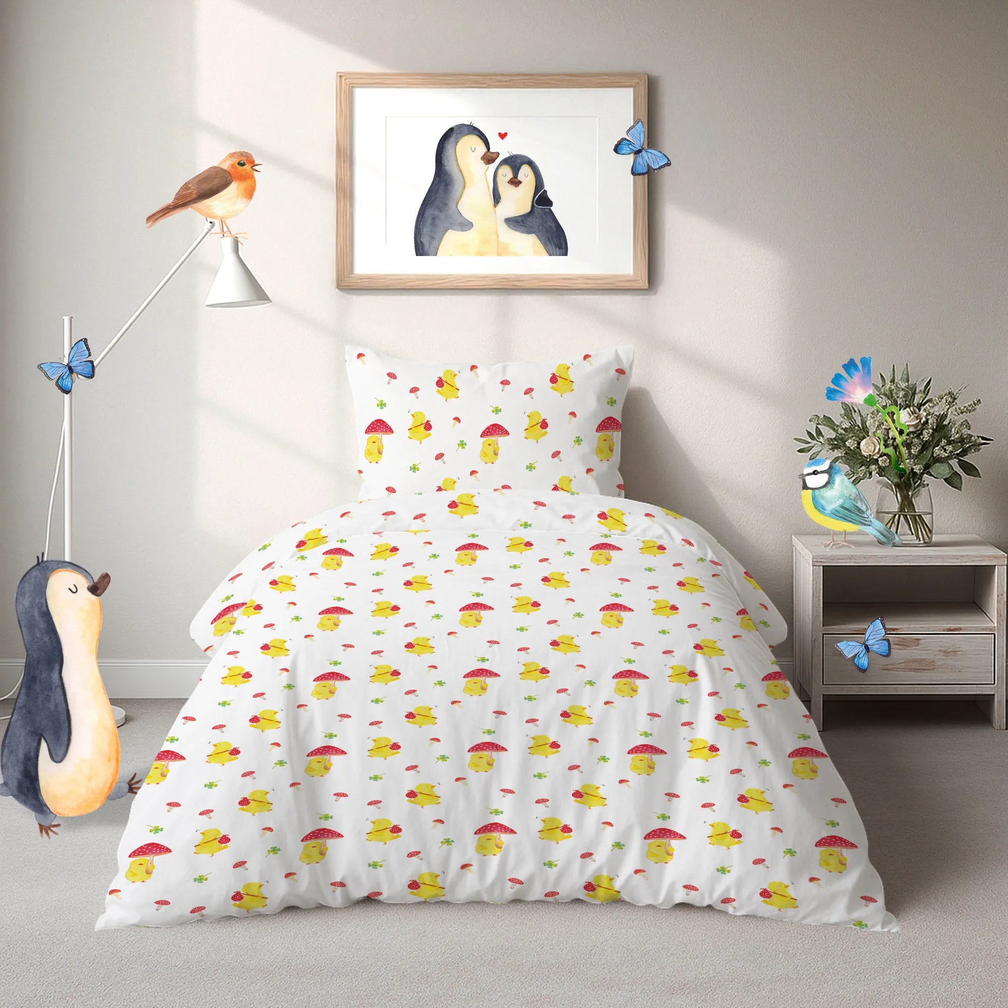 Experience dreamy sleeping comfort with the cozy bedding from Mr. & Mrs. Panda. The fine cotton satin, made from 100% cotton with a weight of 130 g/m², offers a pleasantly soft feel against the skin, is breathable and airy, while also providing comforting warmth. Printed with Mr. & Mrs. Panda’s distinctive motifs and patterns, each set is made to order and sewn by hand—ideal as a gift and not available for personalization. Easy care: wash inside out at a maximum of 30°C to keep the colours vibrant for longer.