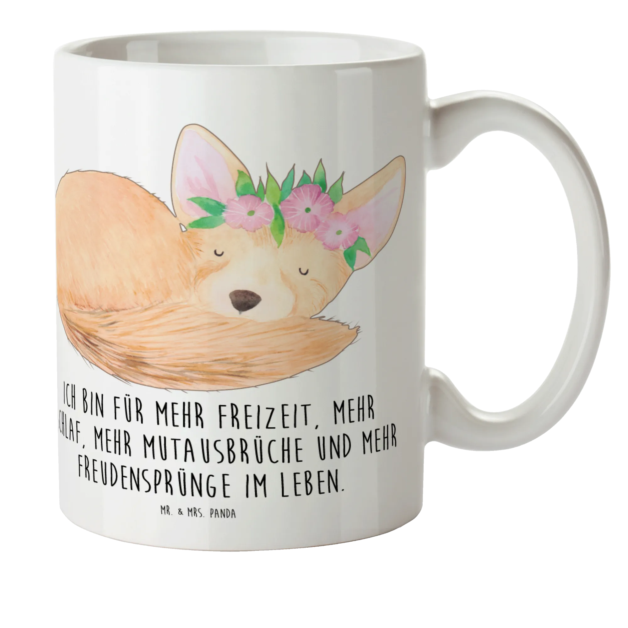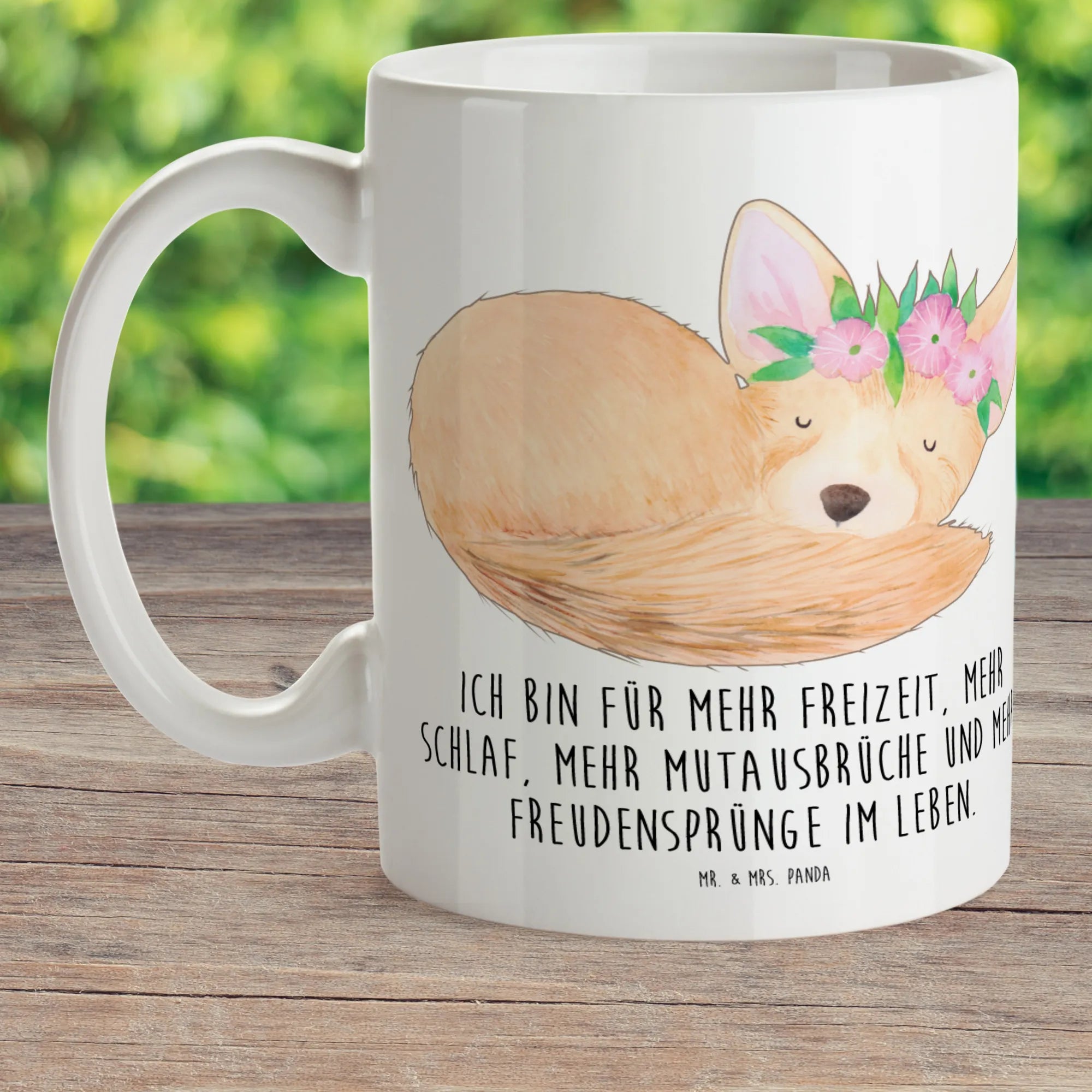 In the sun-kissed deserts of Africa roams our charming desert fox, adorned playfully with a blissful wreath of flowers. This whimsical motif captures the essence of leisure and tranquility, reminding us that sometimes, we just need to pause and soak in the beauty around us. With the slogan 'Ich bin für mehr Freizeit, mehr Schlaf, mehr Mutausbrüche und mehr Freudensprünge im Leben,' we celebrate the importance of relaxation, spontaneous adventures, and the delightful leaps of joy that life offers us. Embrace this wonderfully vibrant creature and let it inspire you to slow down, enjoy the moment, and find happiness in the little things, just like our delightful desert fox who dreams sweetly under the gentle desert sun.