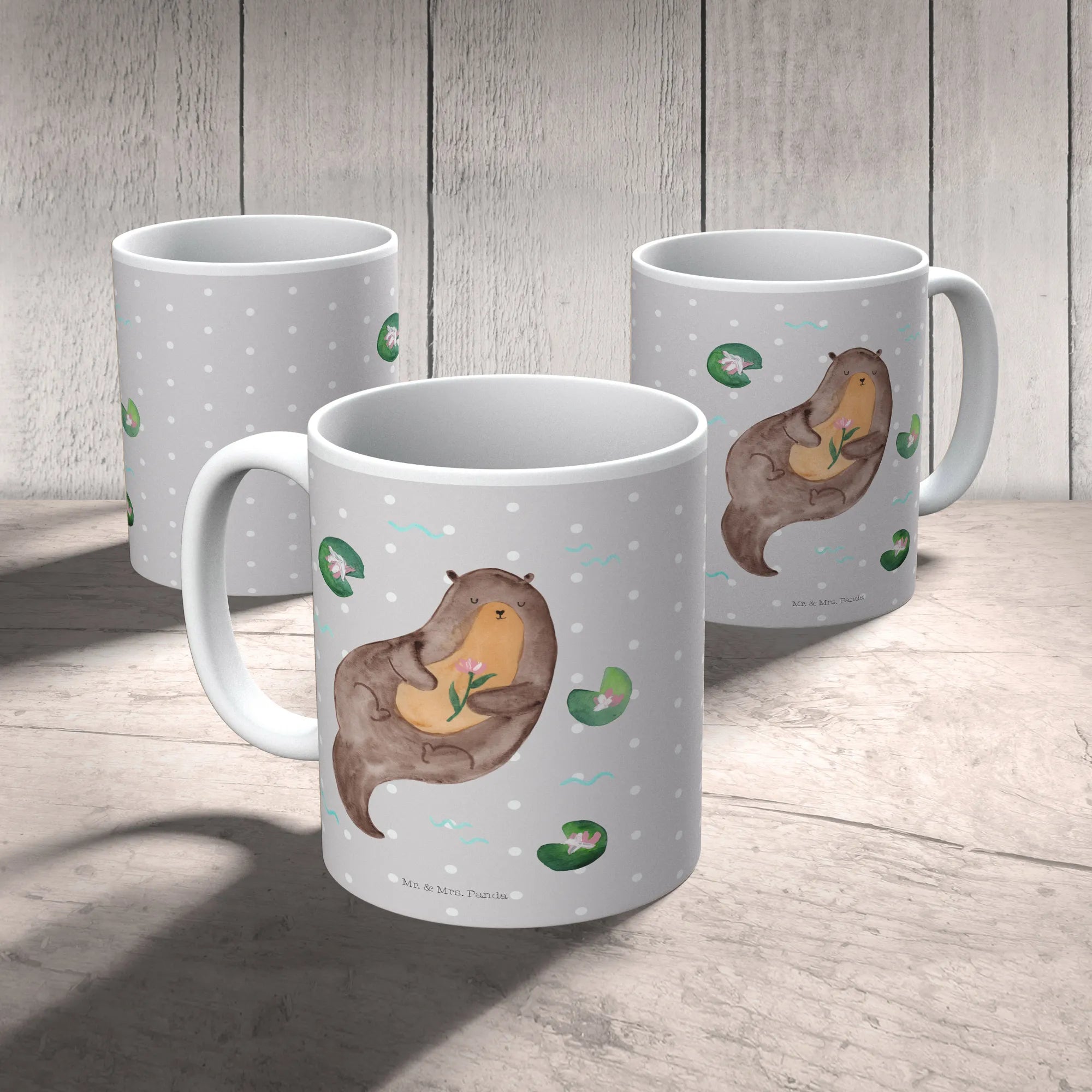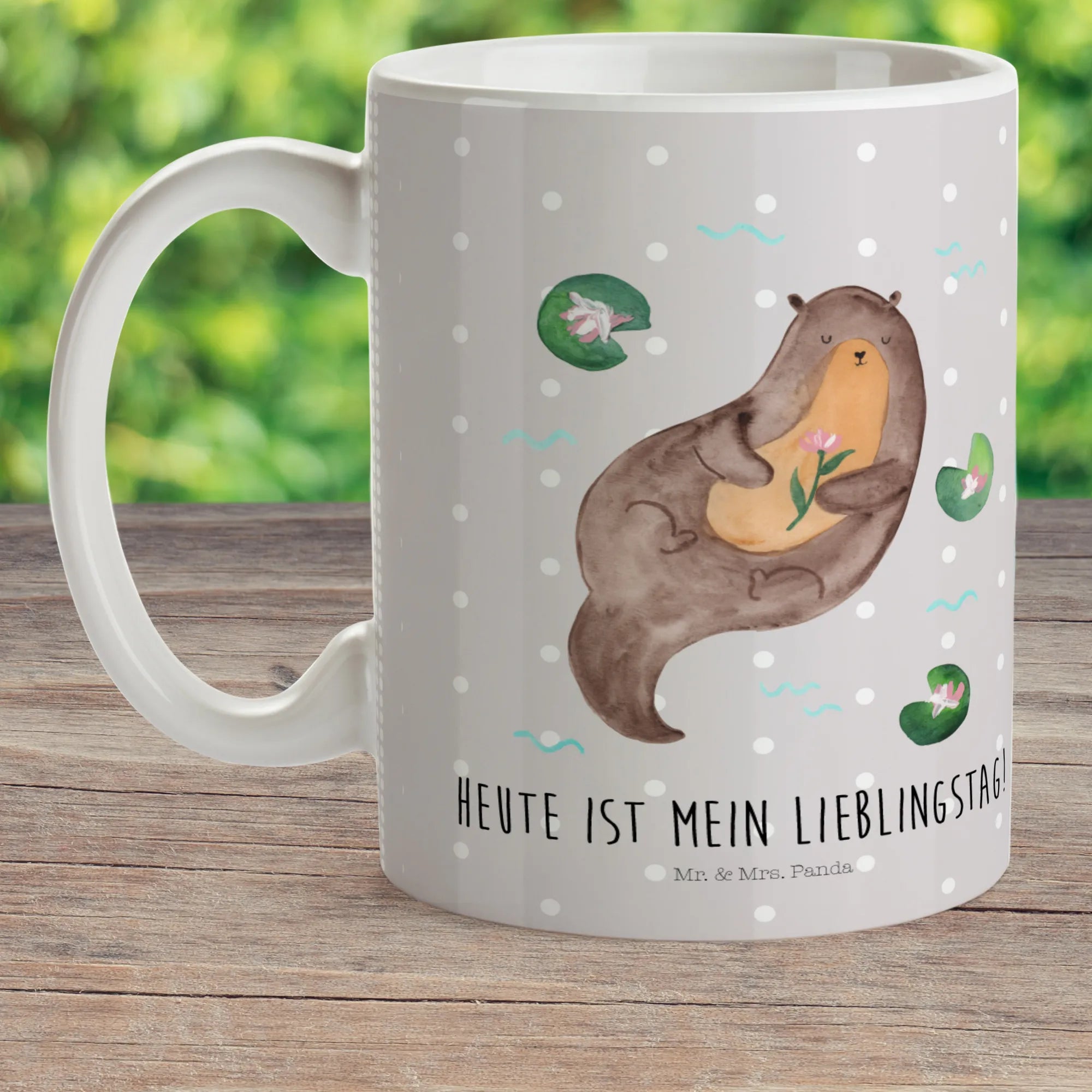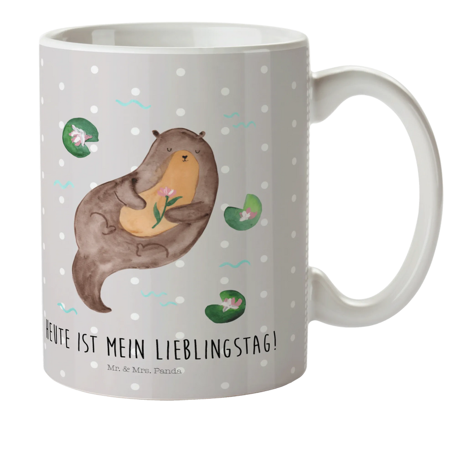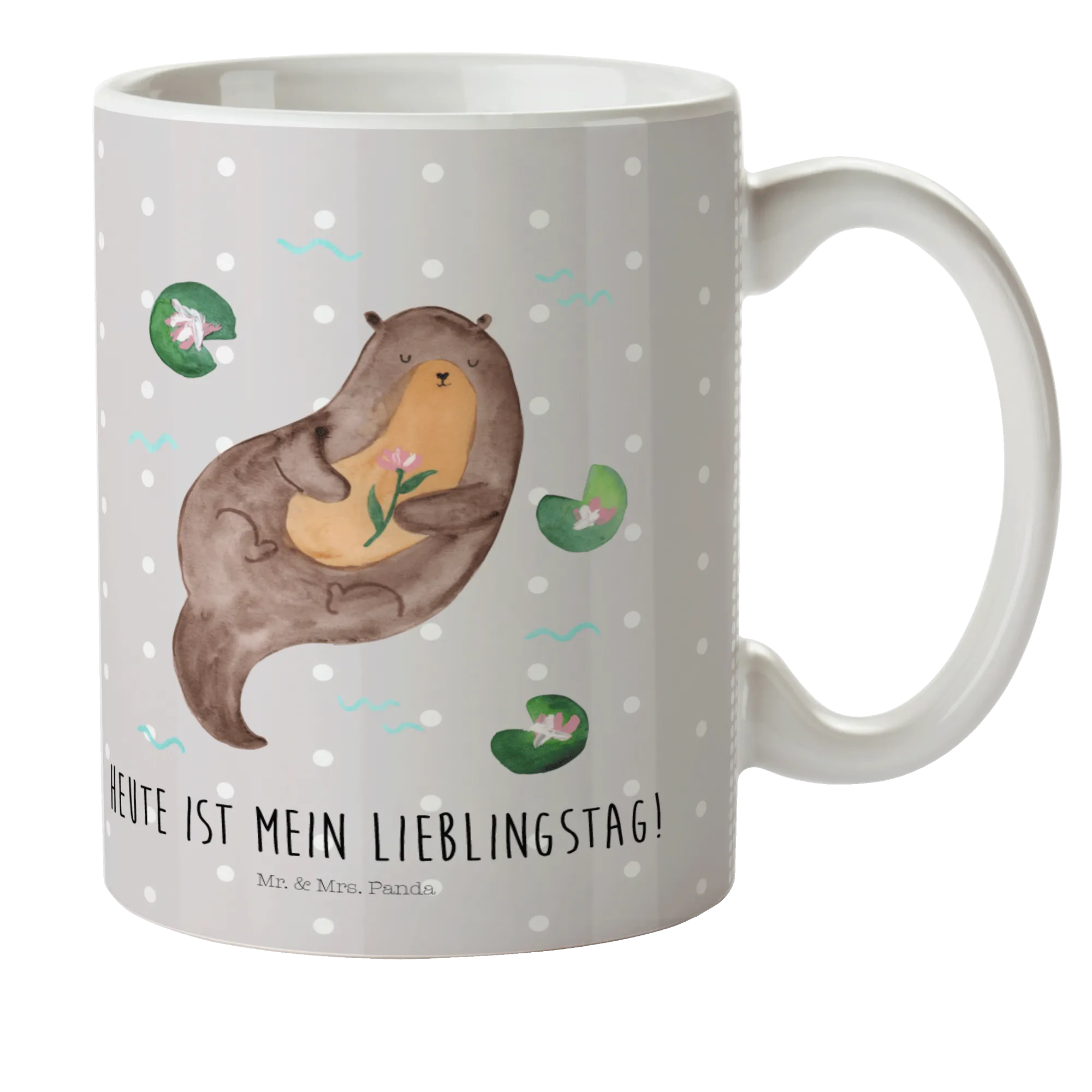 Child's mug otter Water Lily - with a saying - Grey Pastel