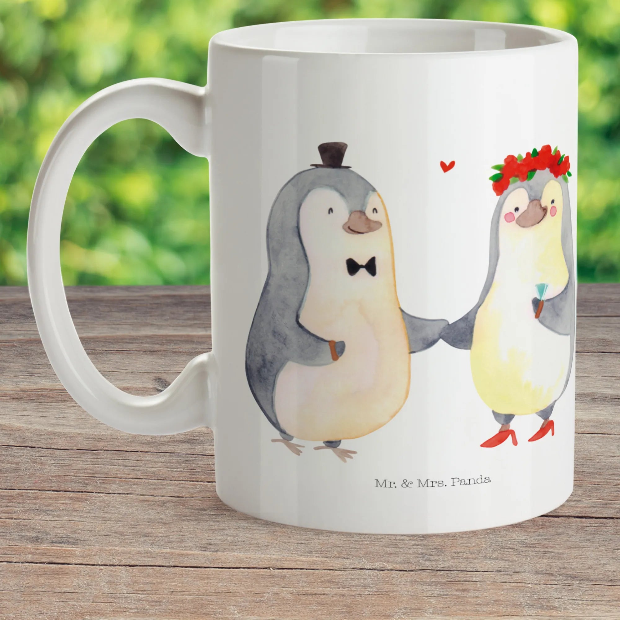 Introducing the adorable Child's Mug featuring our charming penguins getting married from the delightful "Love" collection by Mr. & Mrs. Panda! This unique and playful design showcases two cute penguins dressed for their special day, with one wearing a dapper bow tie and top hat, and the other adorned with a lovely flower crown. Perfectly capturing the essence of love and togetherness, this mug makes a fantastic gift for children, especially those who are starting to appreciate the joy of family, friendships, and love.