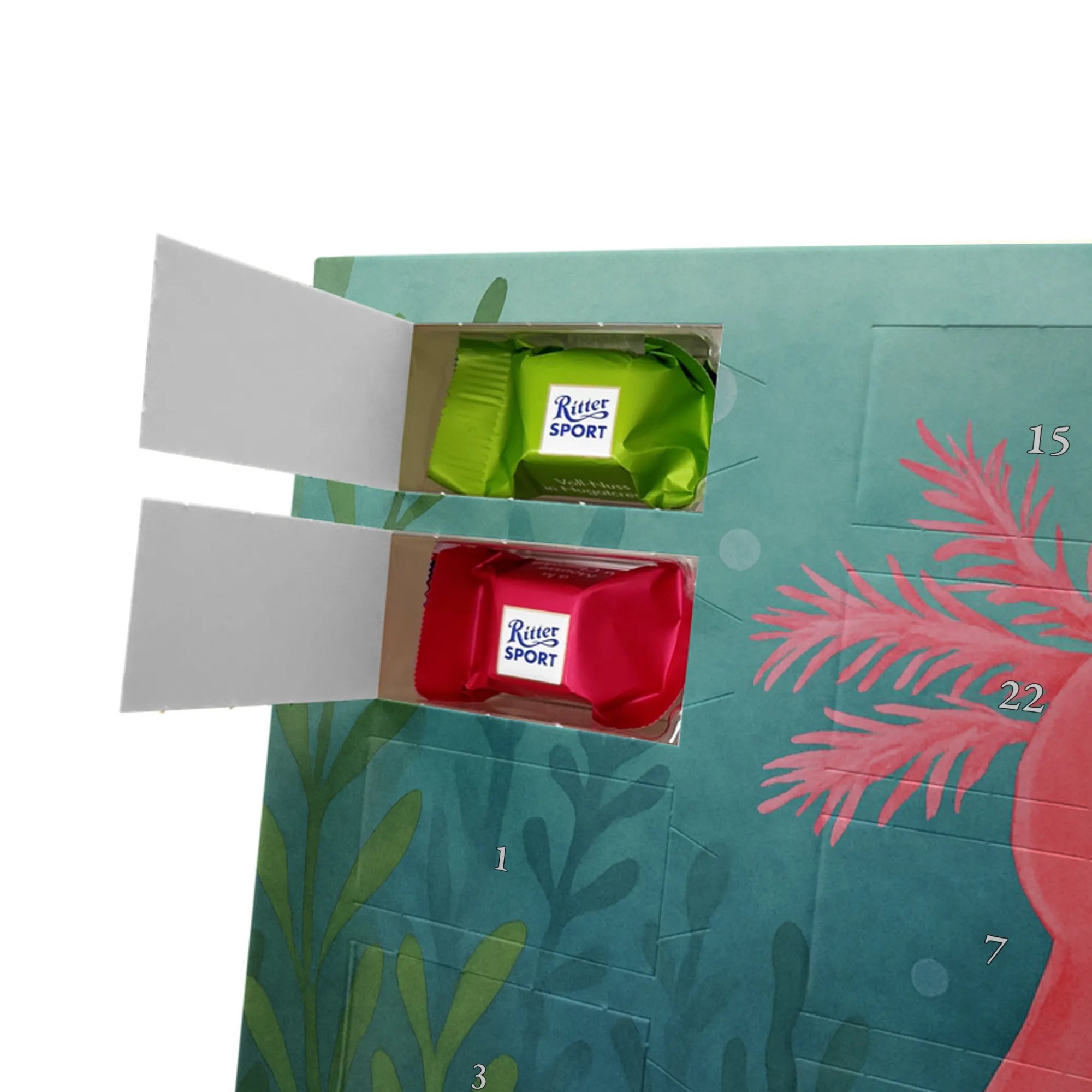Der Adventskalender besticht durch brillante Druckqualität mit seidenmatter Oberflächenveredelung und bedruckte Seitenflächen. Er kann aufgehängt oder aufgestellt werden – ideal für Wohnzimmer, Küche oder das Kinderzimmer. Bitte beachten: Der Kalender kann Haselnüsse und Mandeln enthalten.