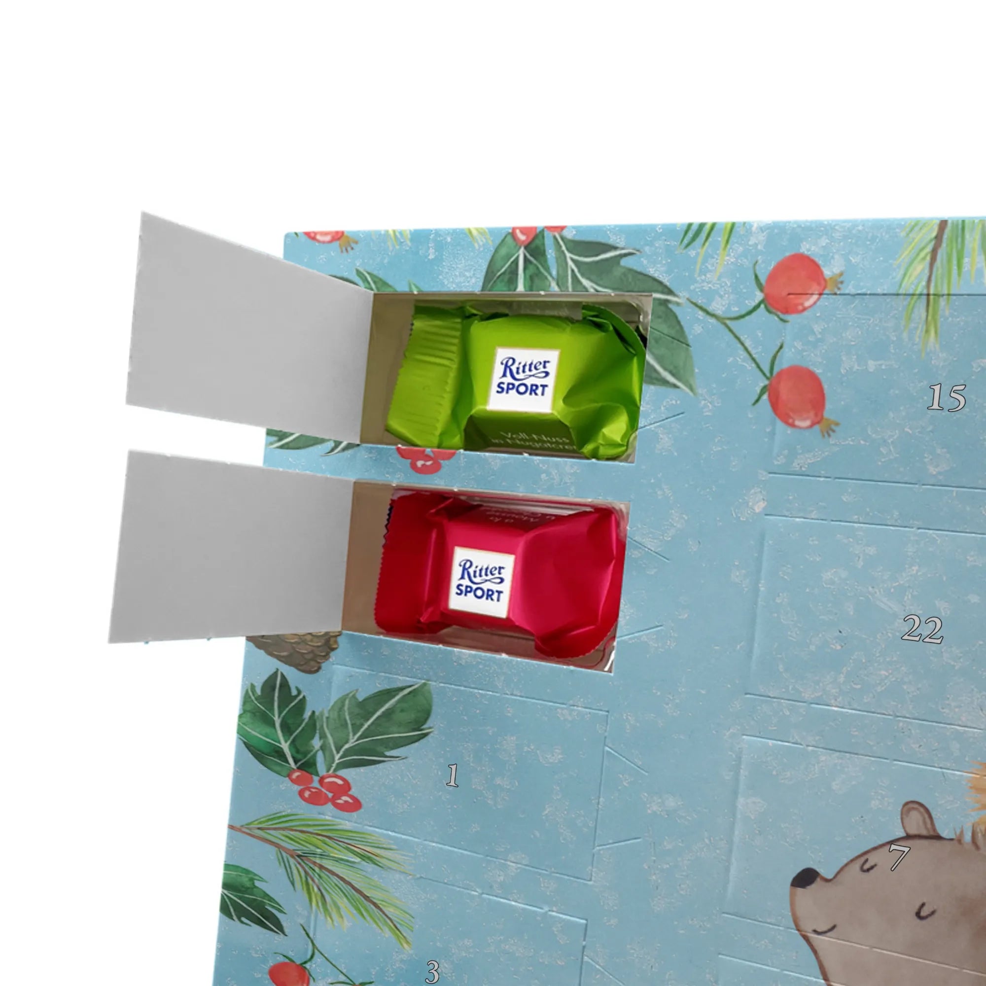 Chocolate advent calendar bear child - Classic - with saying - Ice Blue