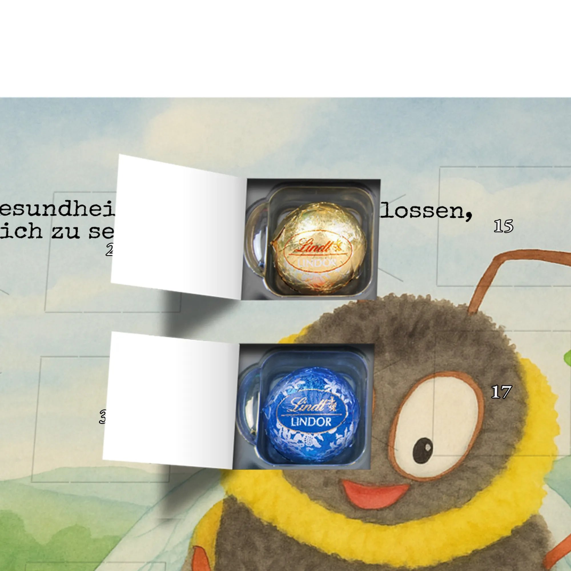 This handy advent calendar 2020 from Mr. & Mrs. Panda is really something very special - it is decorated with wonderful motifs and has the size 24m x 18cm x 2,5cm. It is filled with 24 chocolate balls and costs 14,90€ - the calendar can be hung up or set up using the set-up function on the back. Please note that we also have a larger calendar with delicious chocolate from Hello Lindt.