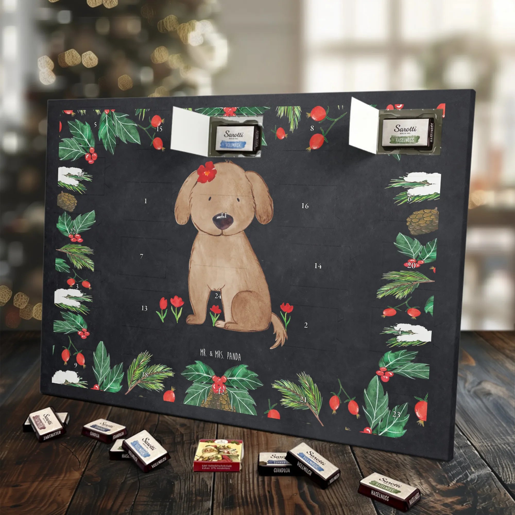Chocolate advent calendar Dog lady - Classic - with saying - Ice Blue