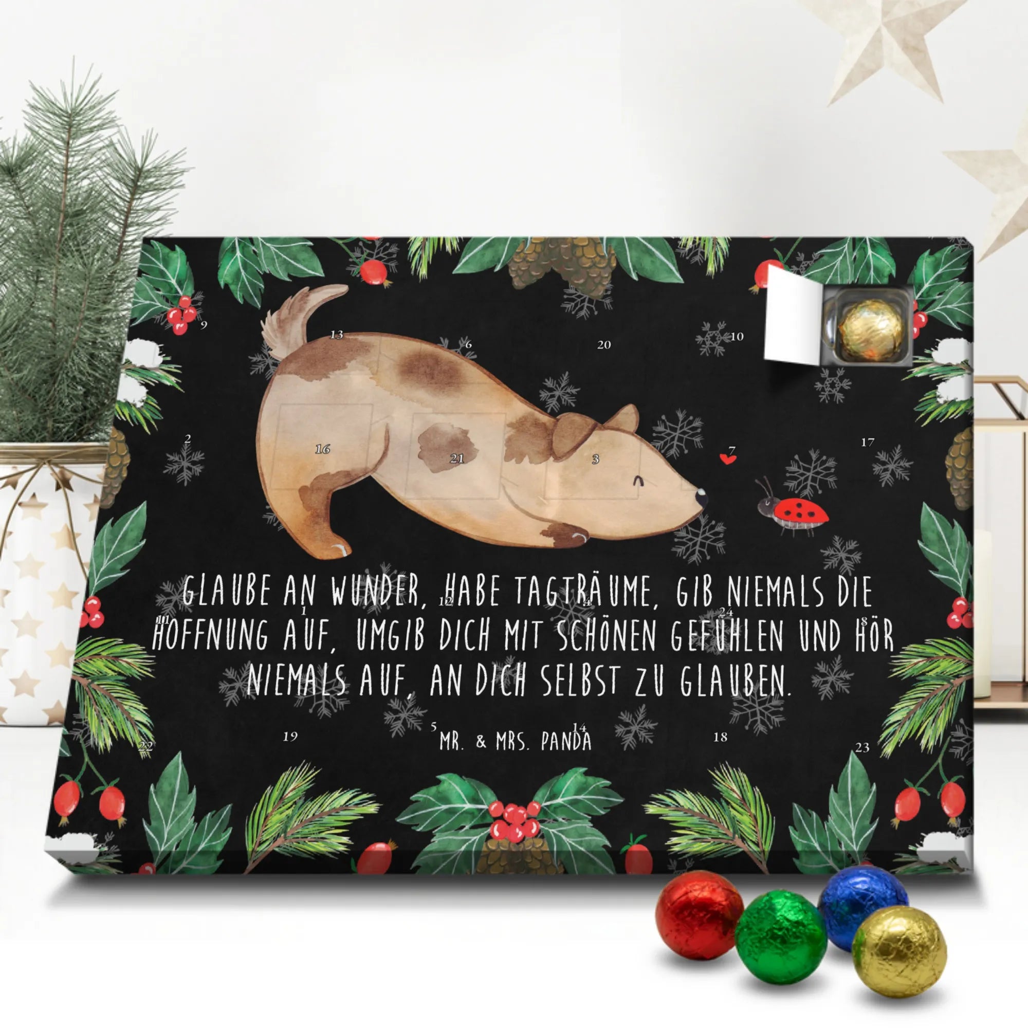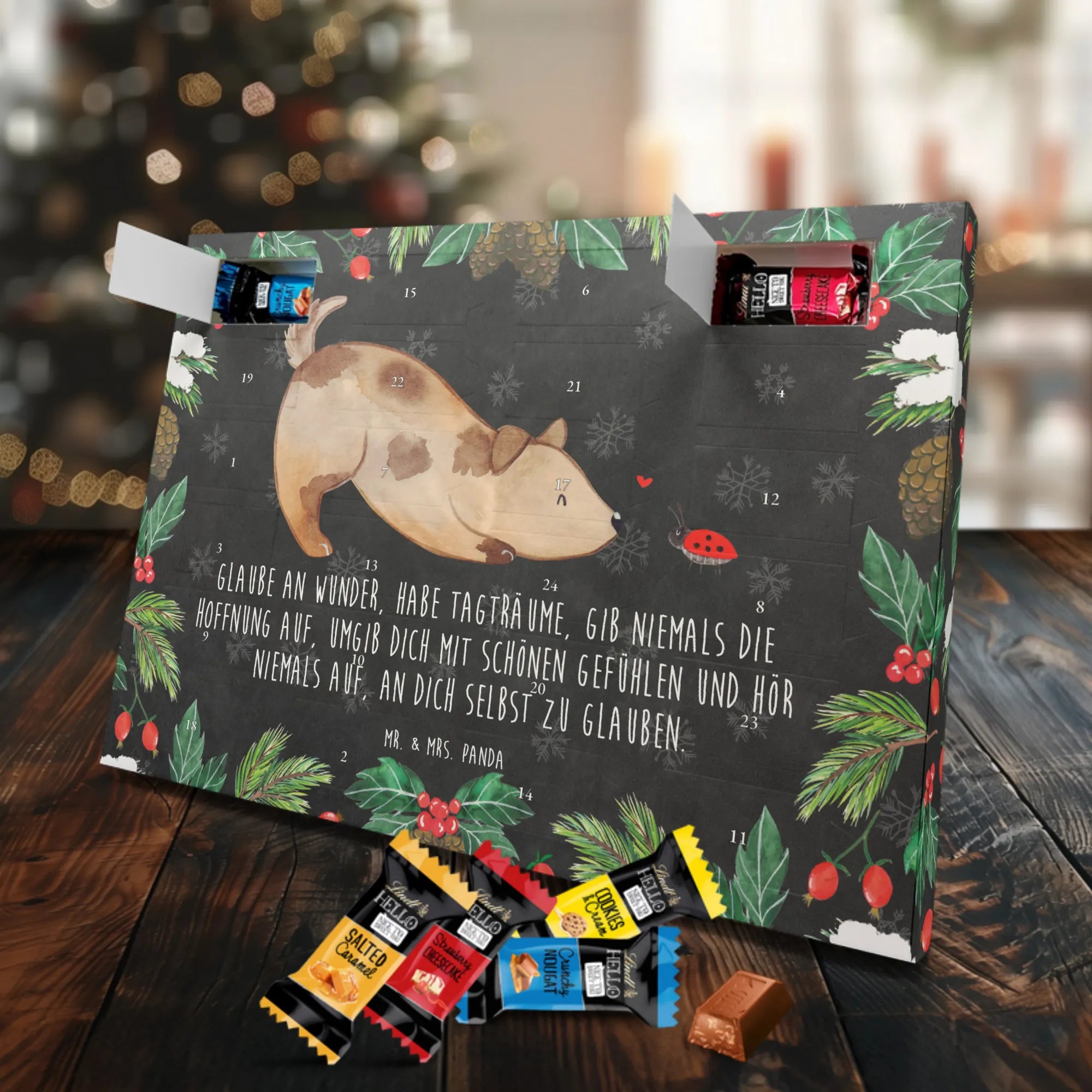Chocolate advent calendar Dog ladybug - Lindt LINDOR - with saying - Chalkboard