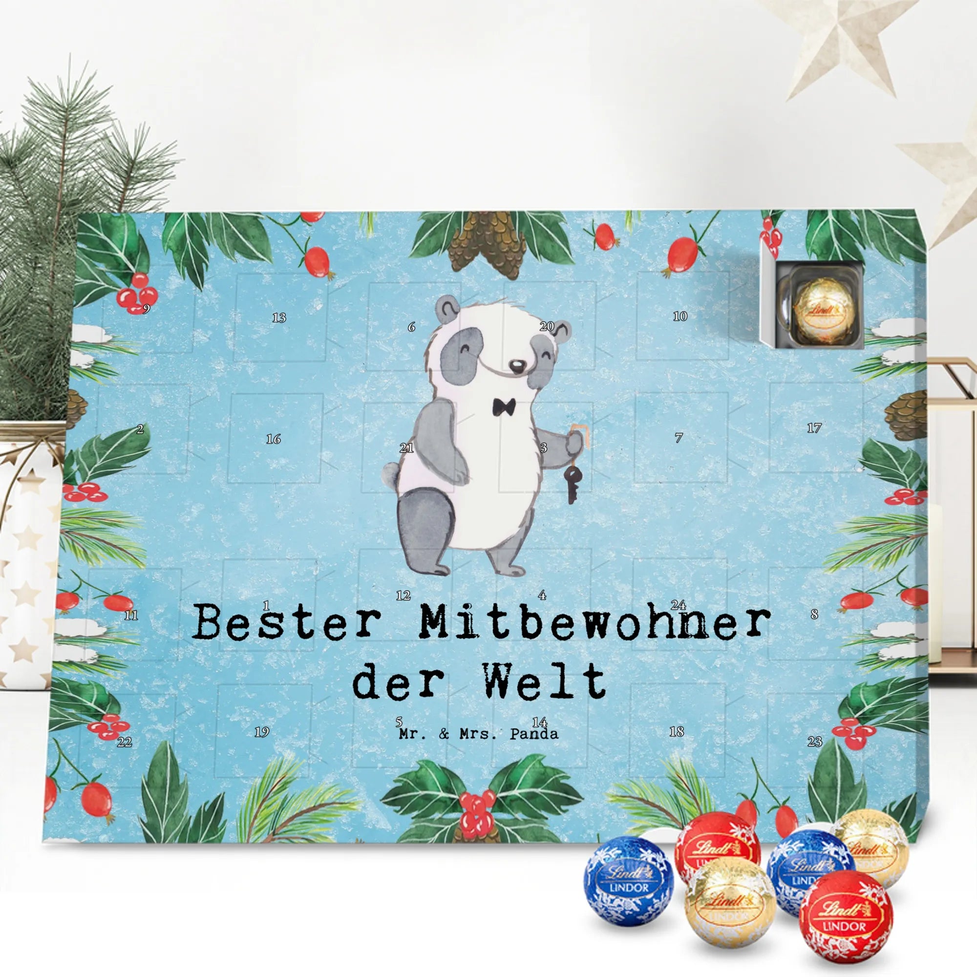 Chocolate advent calendar panda Best roommate in the world - Lindt HELLO - Ice Blue