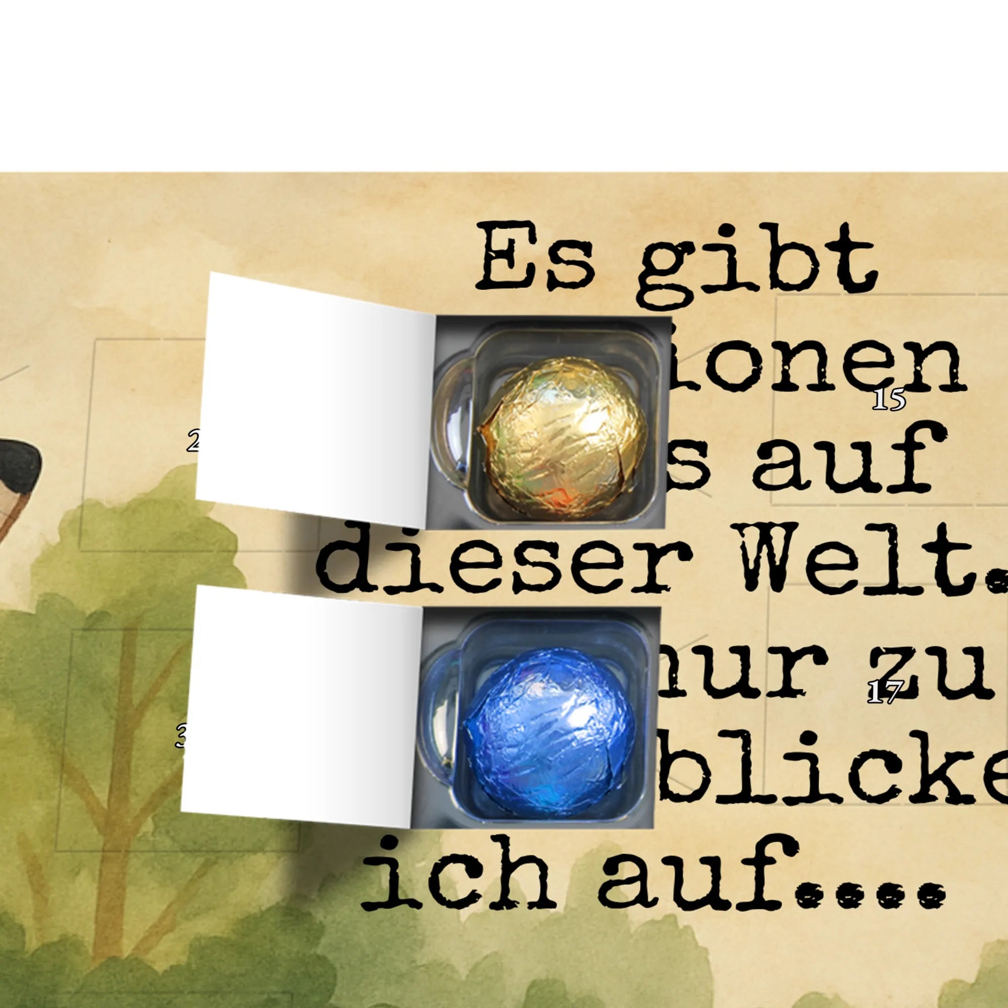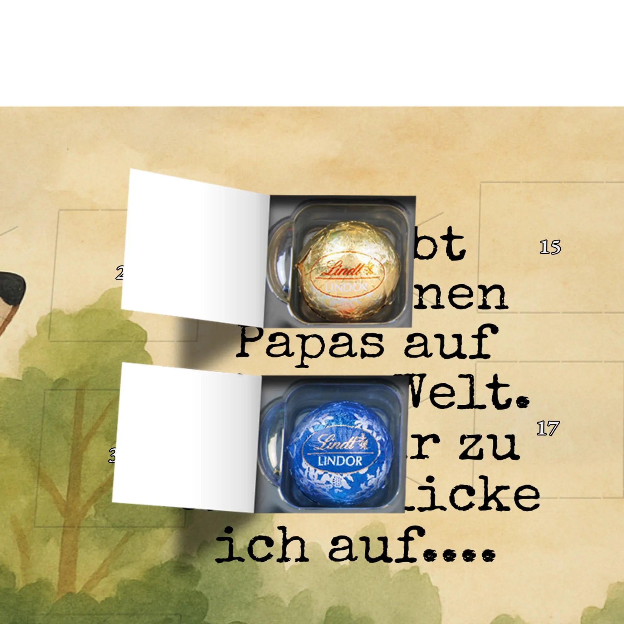 Verschenke mit diesem Adventskalender nicht nur Schokolade, sondern auch ein Gefühl von Nähe und Dankbarkeit. Ein perfektes Zusammenspiel aus Design, Statement und Genuss – ideal als Adventskalender mit Schokolade, Schokokalender oder Pralinen Adventskalender für den liebsten Papa.