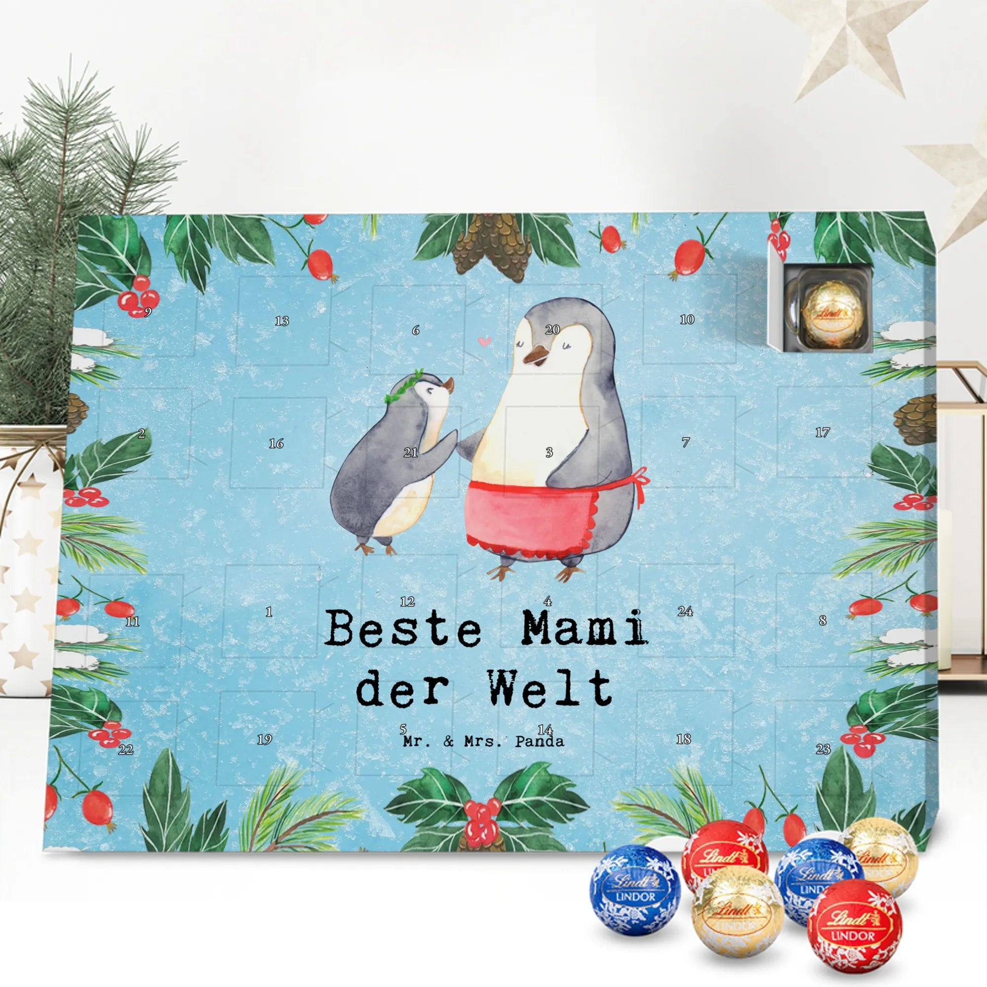 Chocolate advent calendar penguin Best mom in the world - Lindt HELLO - Ice Blue
