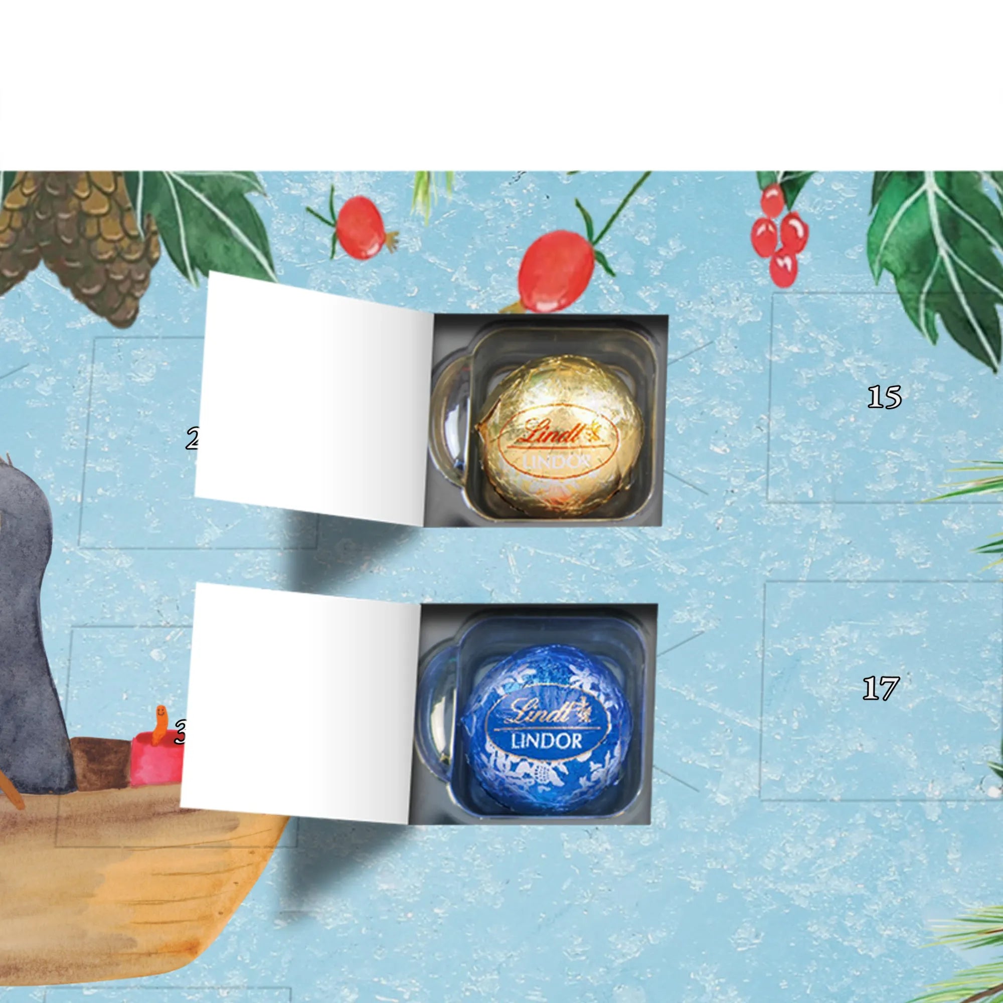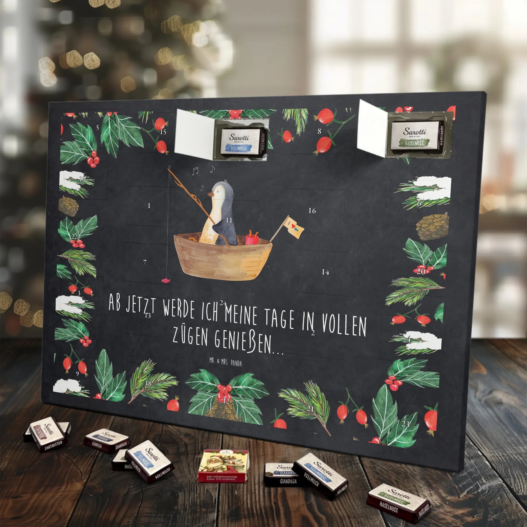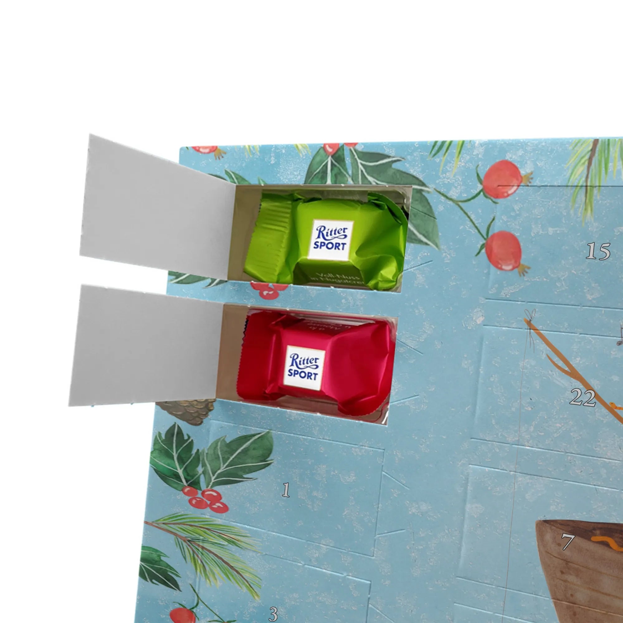Chocolate advent calendar Penguin fishing boat - Classic - with saying - Ice Blue
