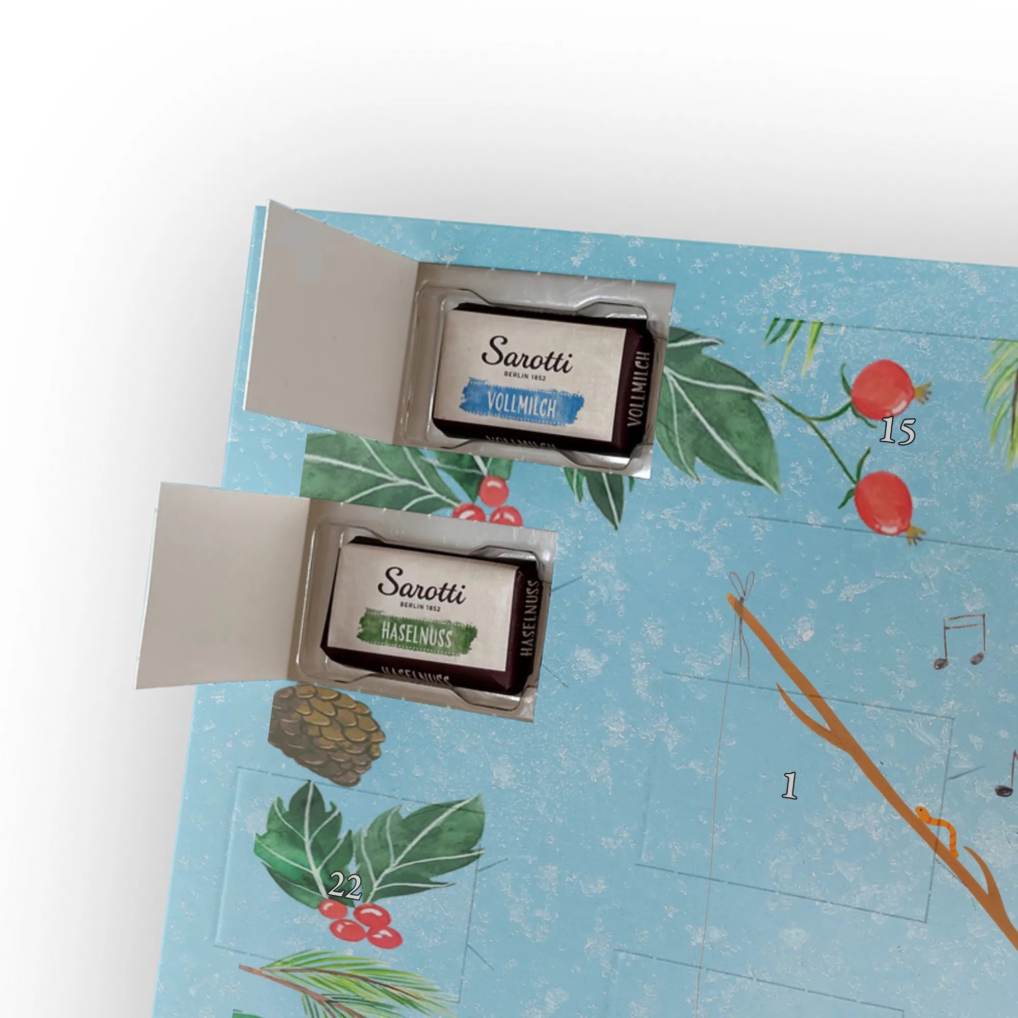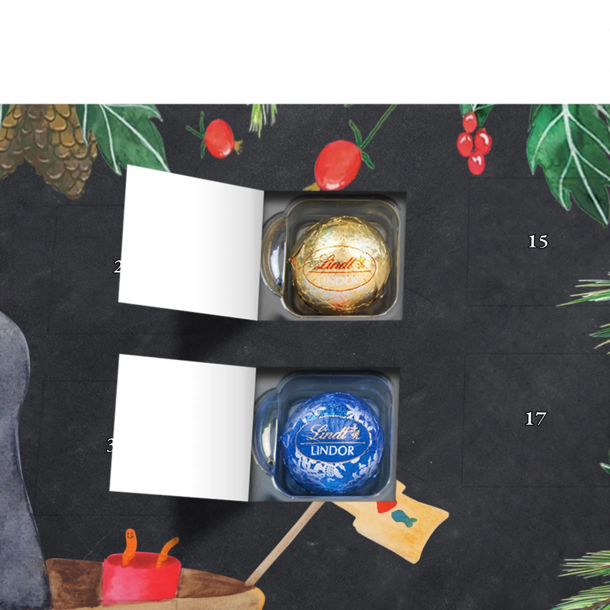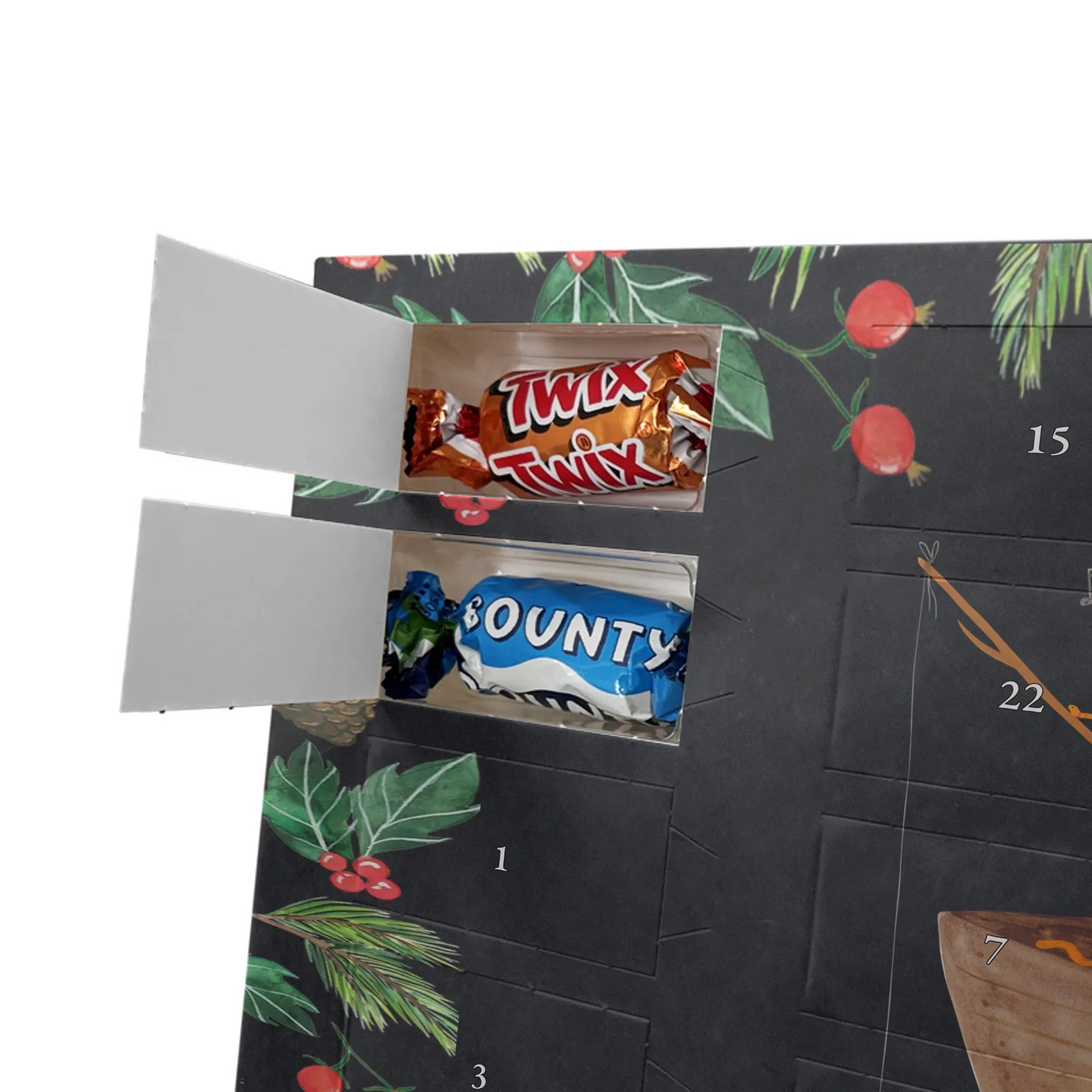 Chocolate advent calendar Penguin fishing boat - Classic - with saying - Ice Blue
