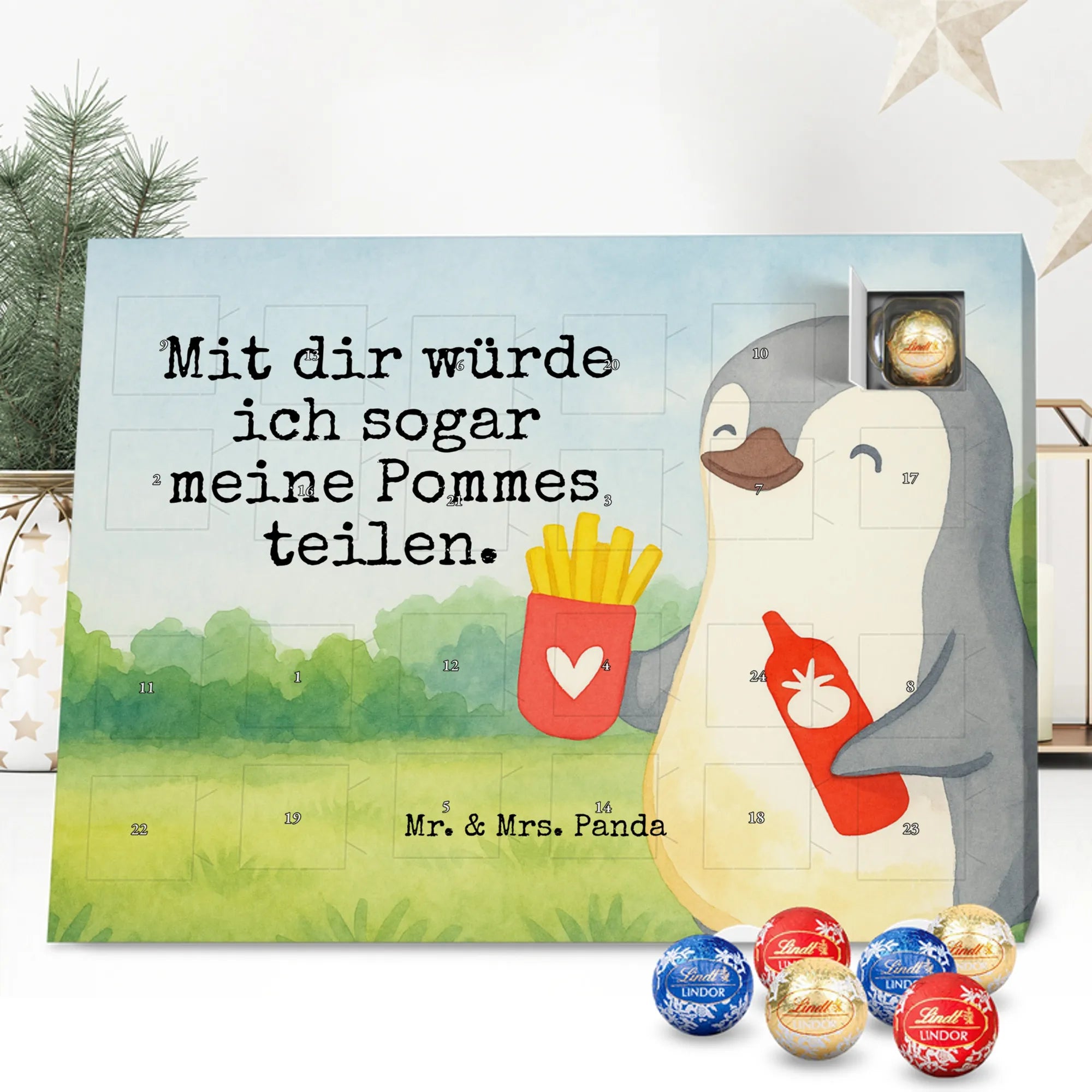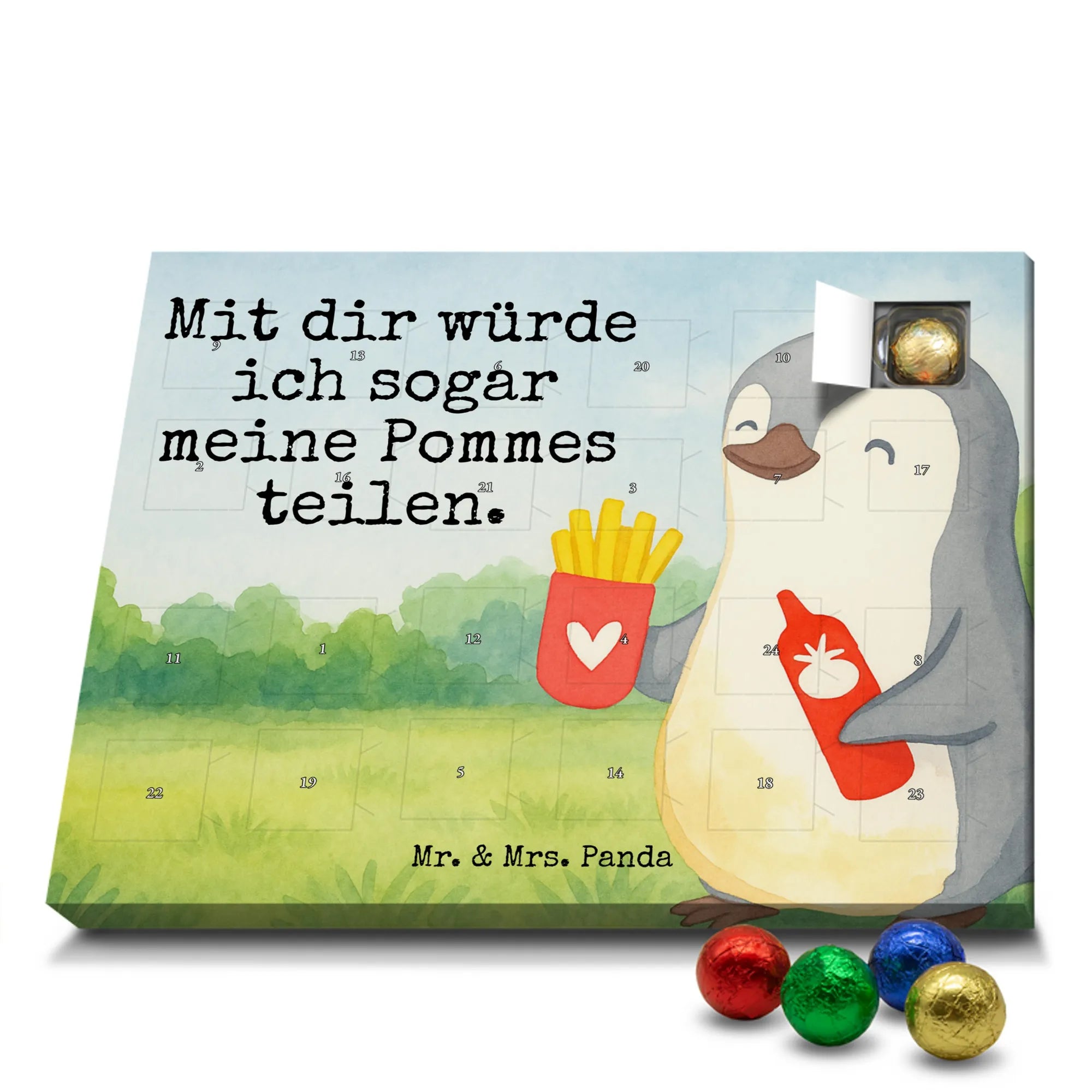 Wunderschöner Schoko Adventskalender „Pinguin Pommes“ aus der Liebe-Kollektion von Mr. & Mrs. Panda