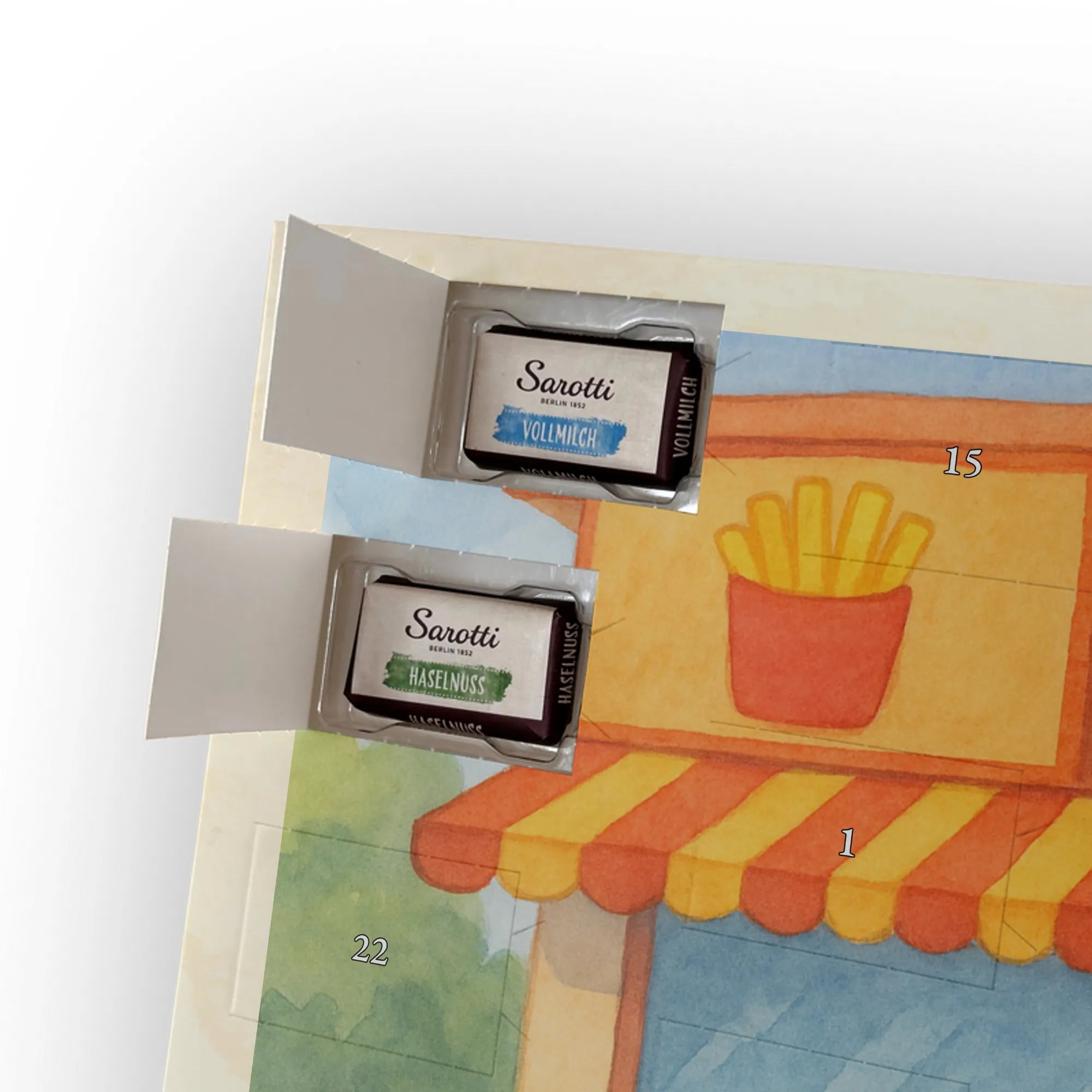 Chocolate advent calendar penguin French fries Design - Lindt LINDOR - with saying
