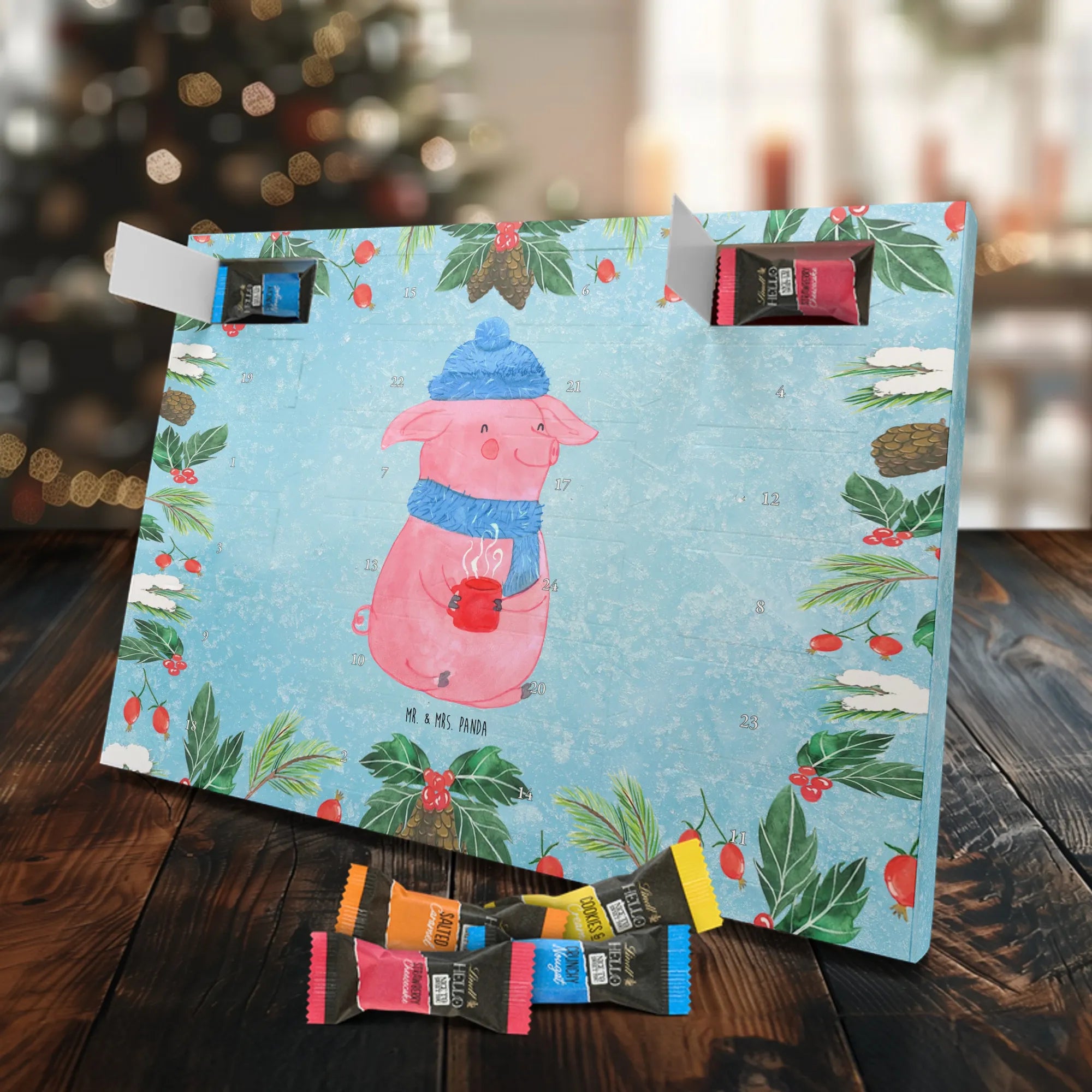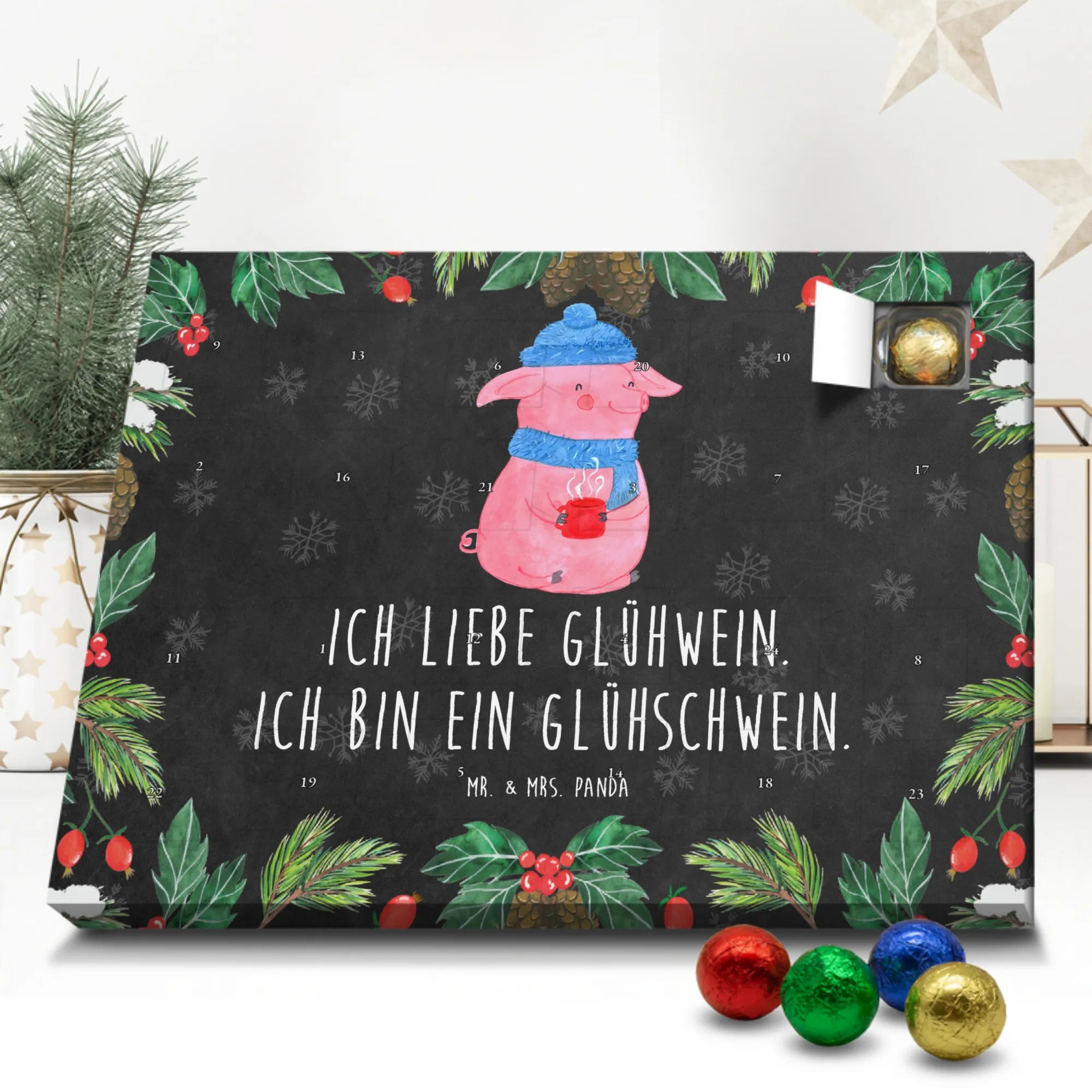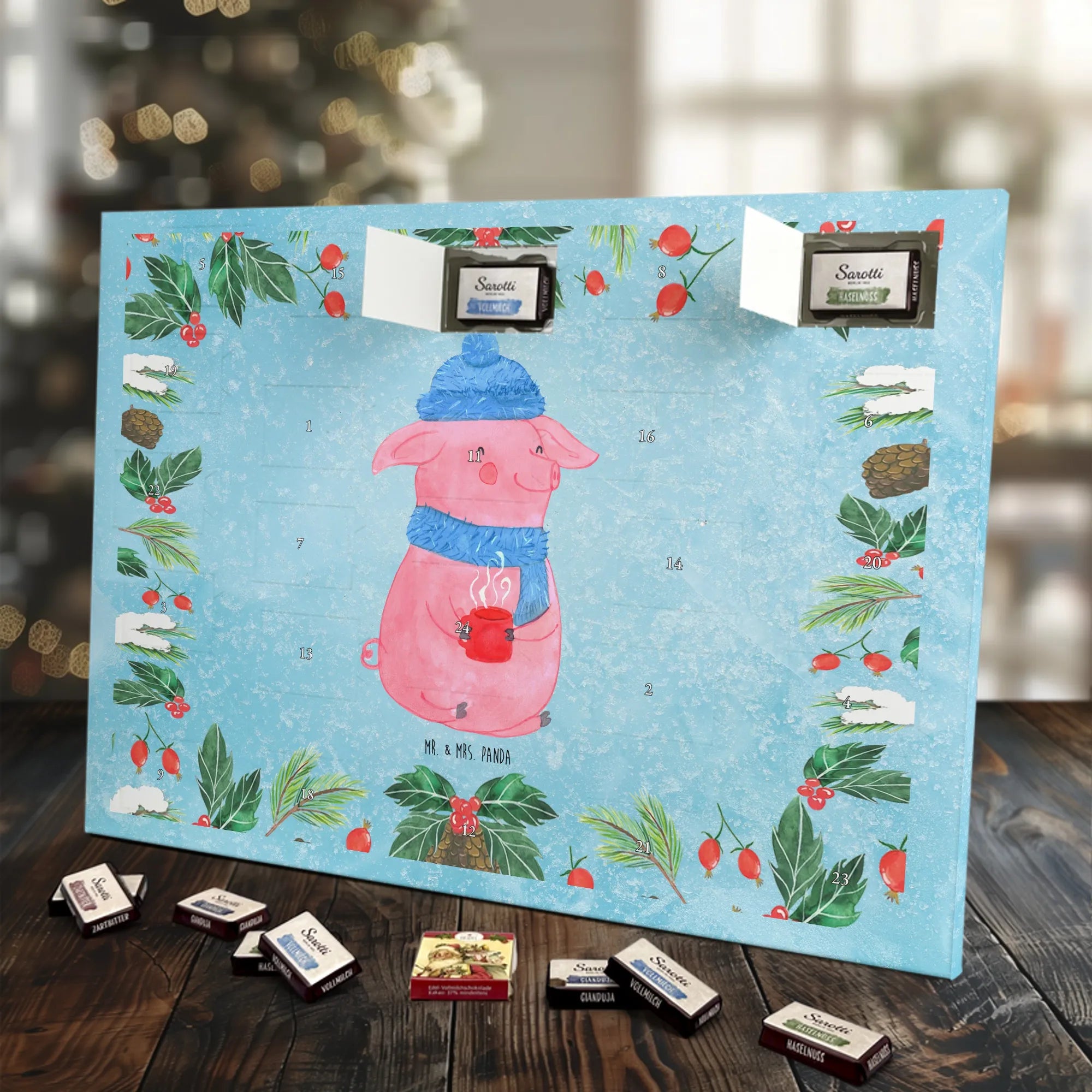 Chocolate advent calendar Pig Mulled wine - Classic - with saying - Ice Blue