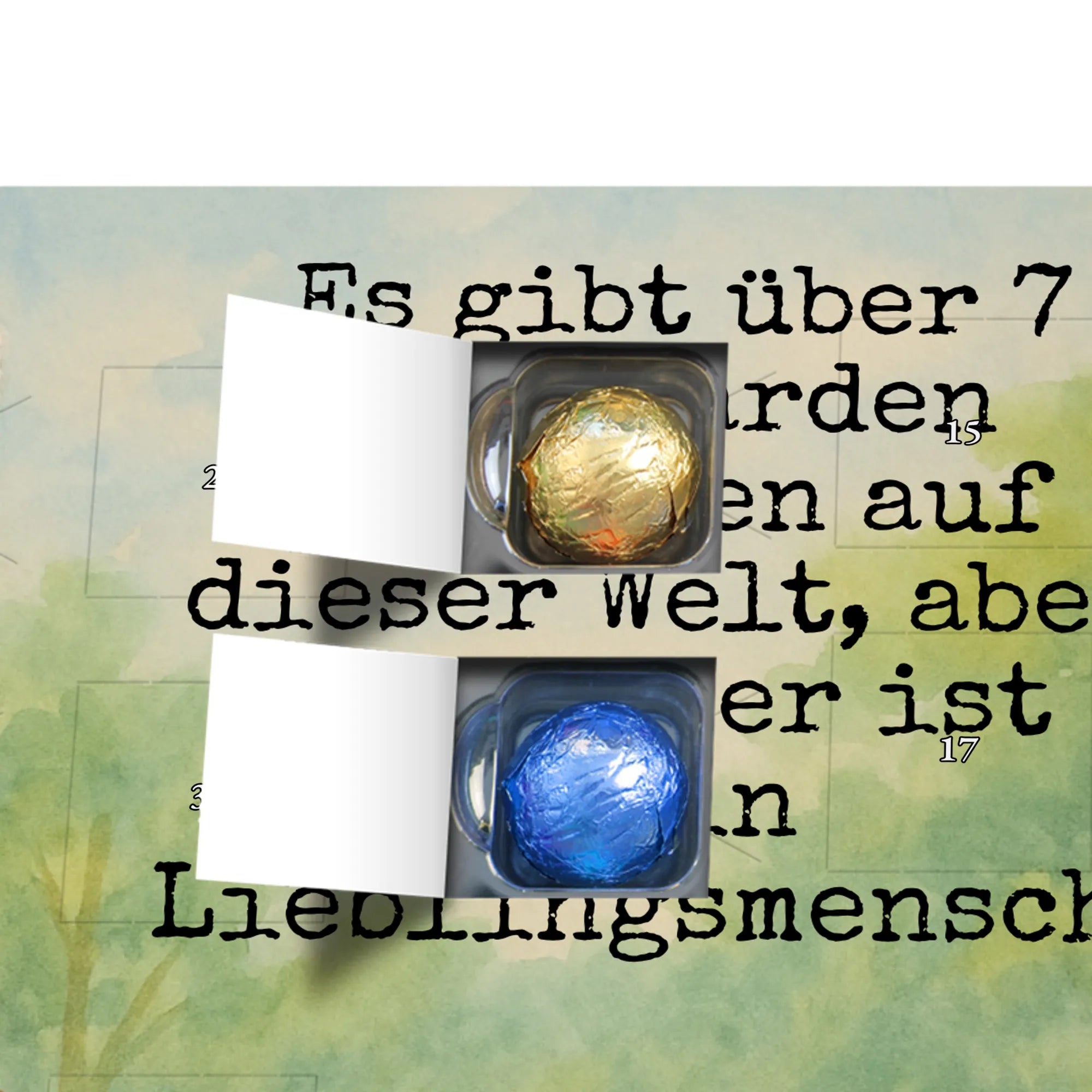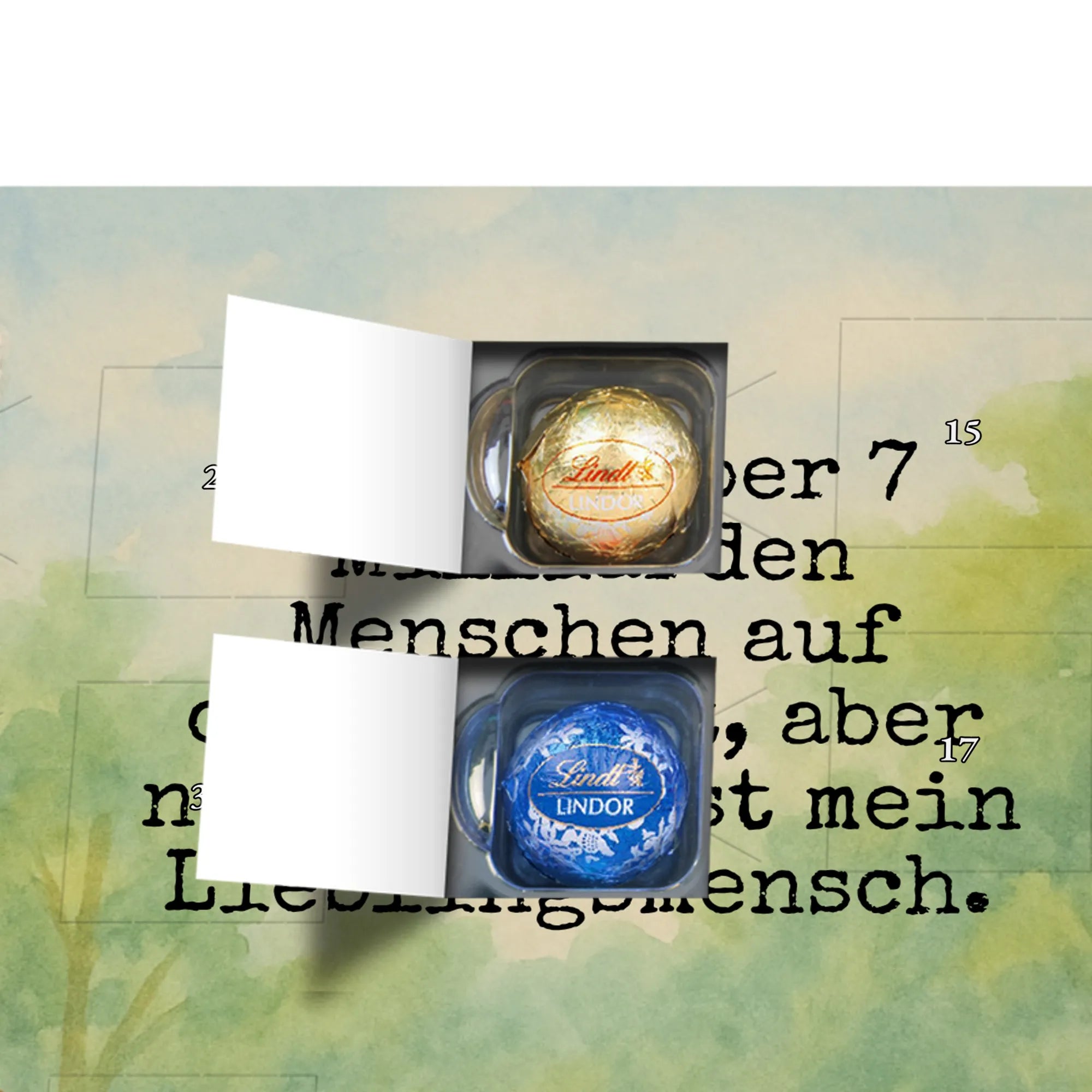 Du kannst den Kalender aufstellen oder aufhängen – je nachdem, wo er am schönsten wirkt. Er ist nicht personalisierbar, dafür aber ein universelles Geschenk, das grosse und kleine Schokoladenfans erfreut.