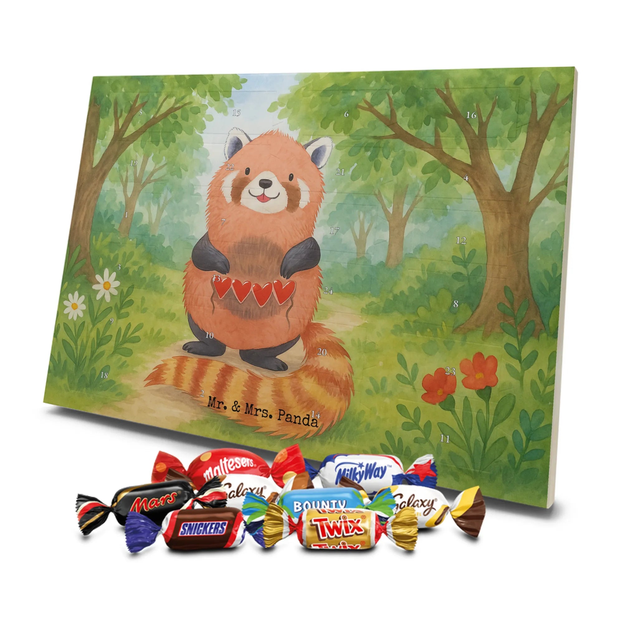 Chocolate advent calendar red panda Design card, gift ideas, gifts, small animals, cute, cute animal motives, hand drawn, funny sayings, good mood, special gifts, animal lover, darling, favourite person, red, heart