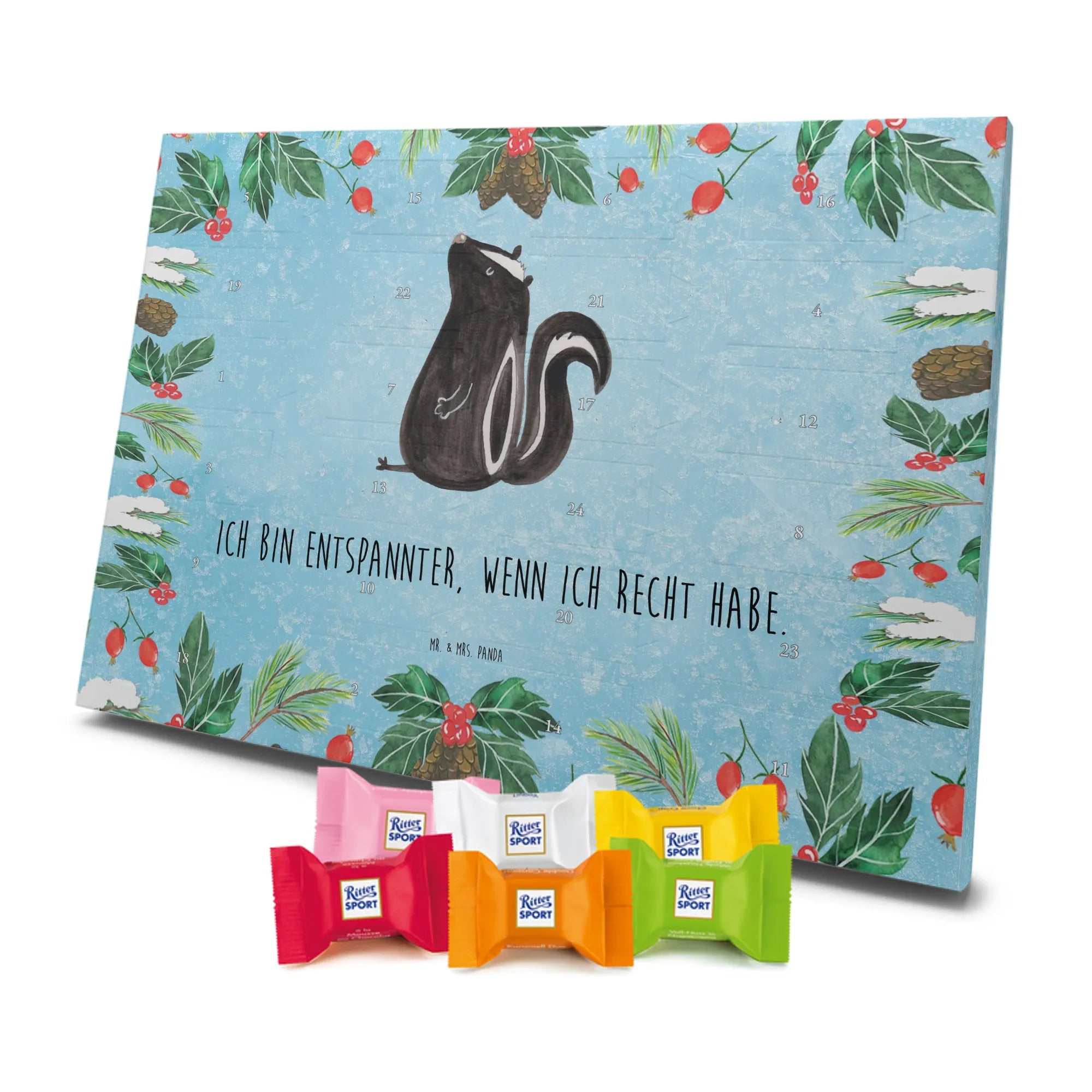 Chocolate advent calendar skunk Sit - Classic - with saying - Ice Blue