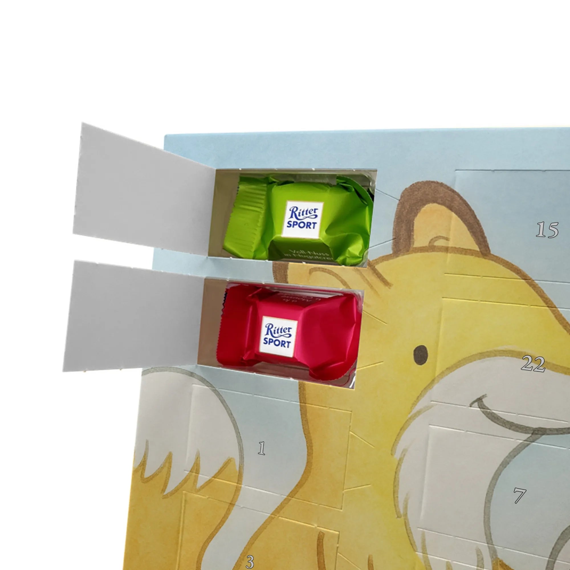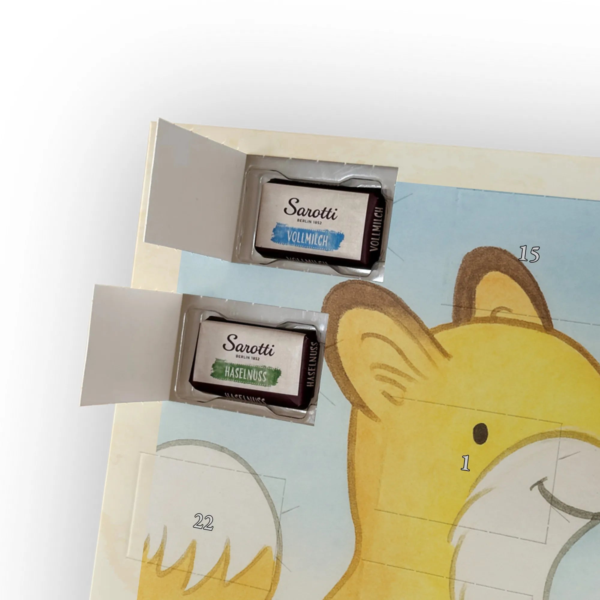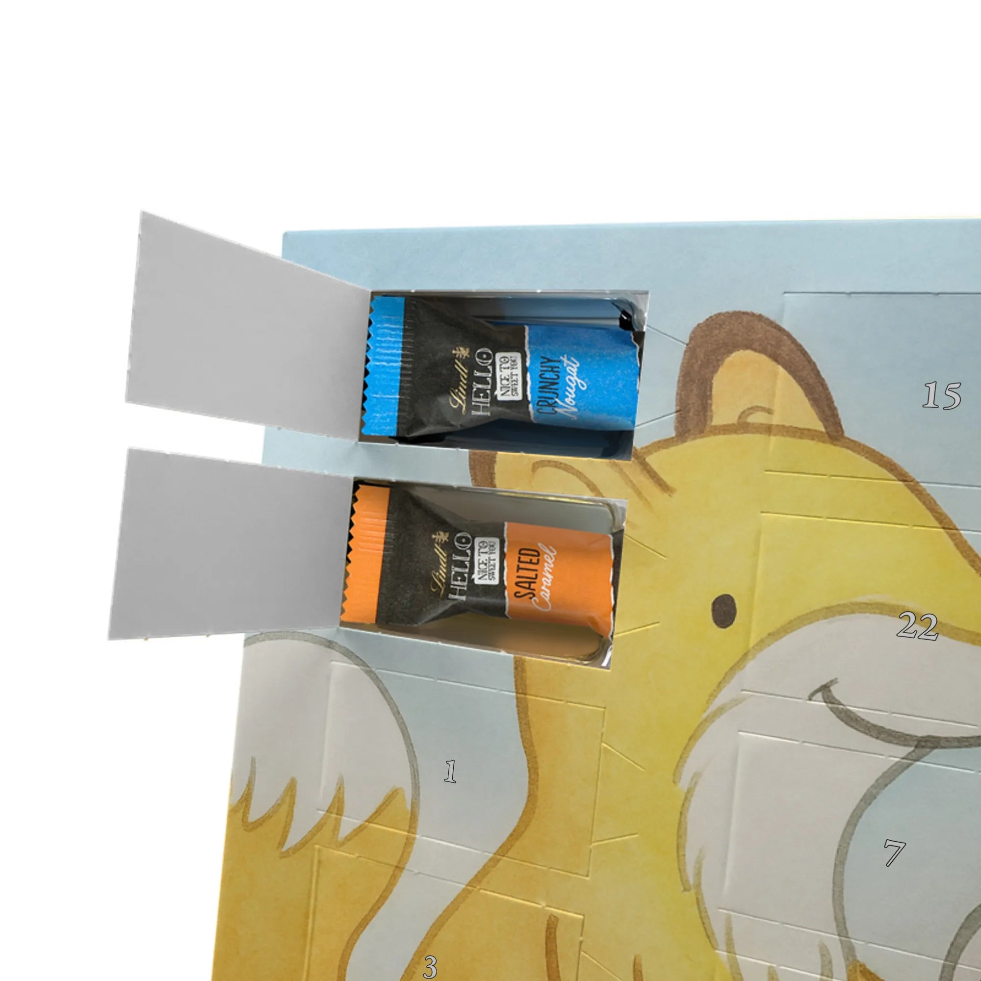This handy advent calendar 2020 from Mr. & Mrs. Panda is really something very special - it is decorated with wonderful motifs and has the size 24m x 18cm x 2,5cm. It is filled with 24 chocolate balls and costs 14,90€ - the calendar can be hung up or set up using the set-up function on the back. Please note that we also have a larger calendar with delicious chocolate from Hello Lindt.