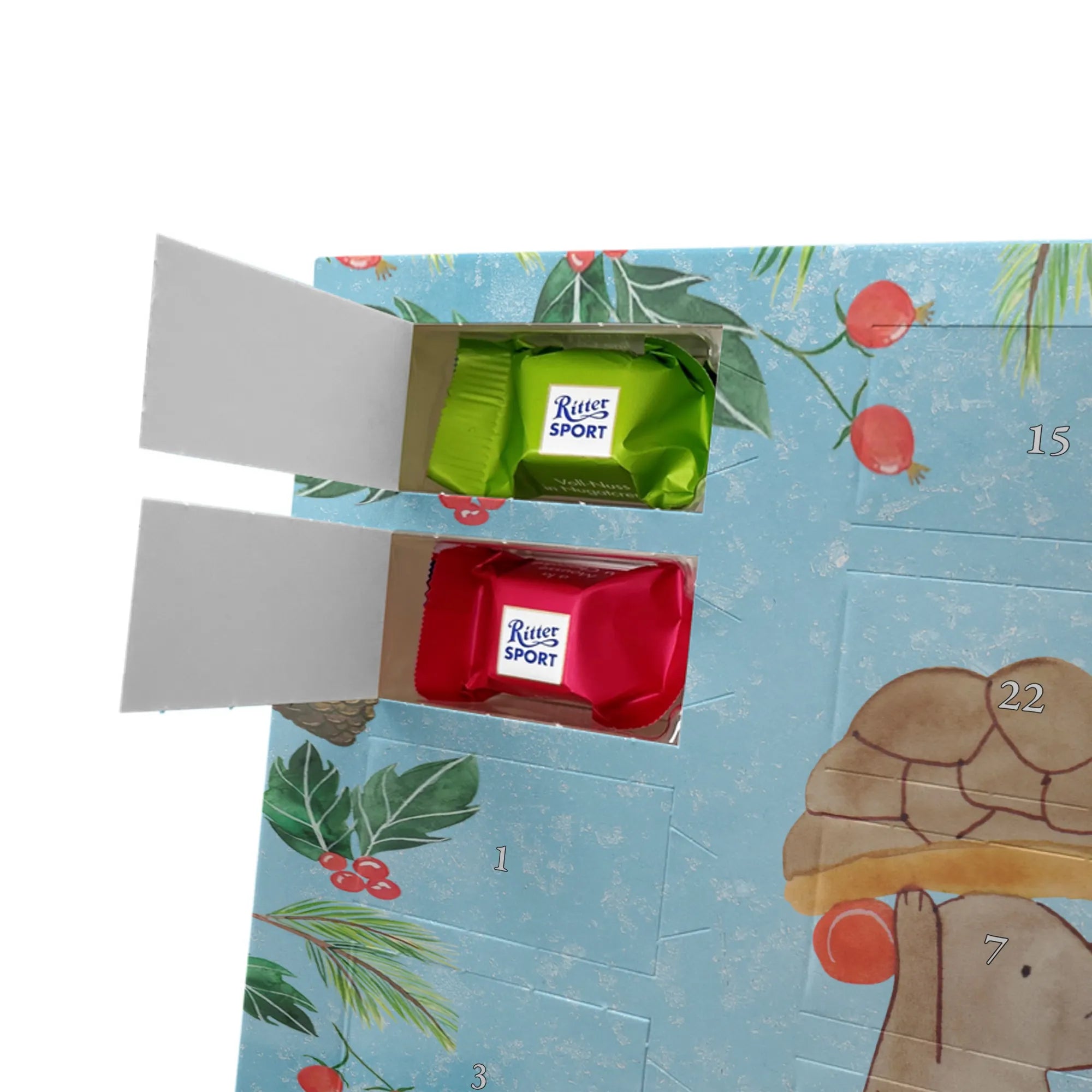 Chocolate advent calendar tortoise Mouse - Classic - with saying - Ice Blue