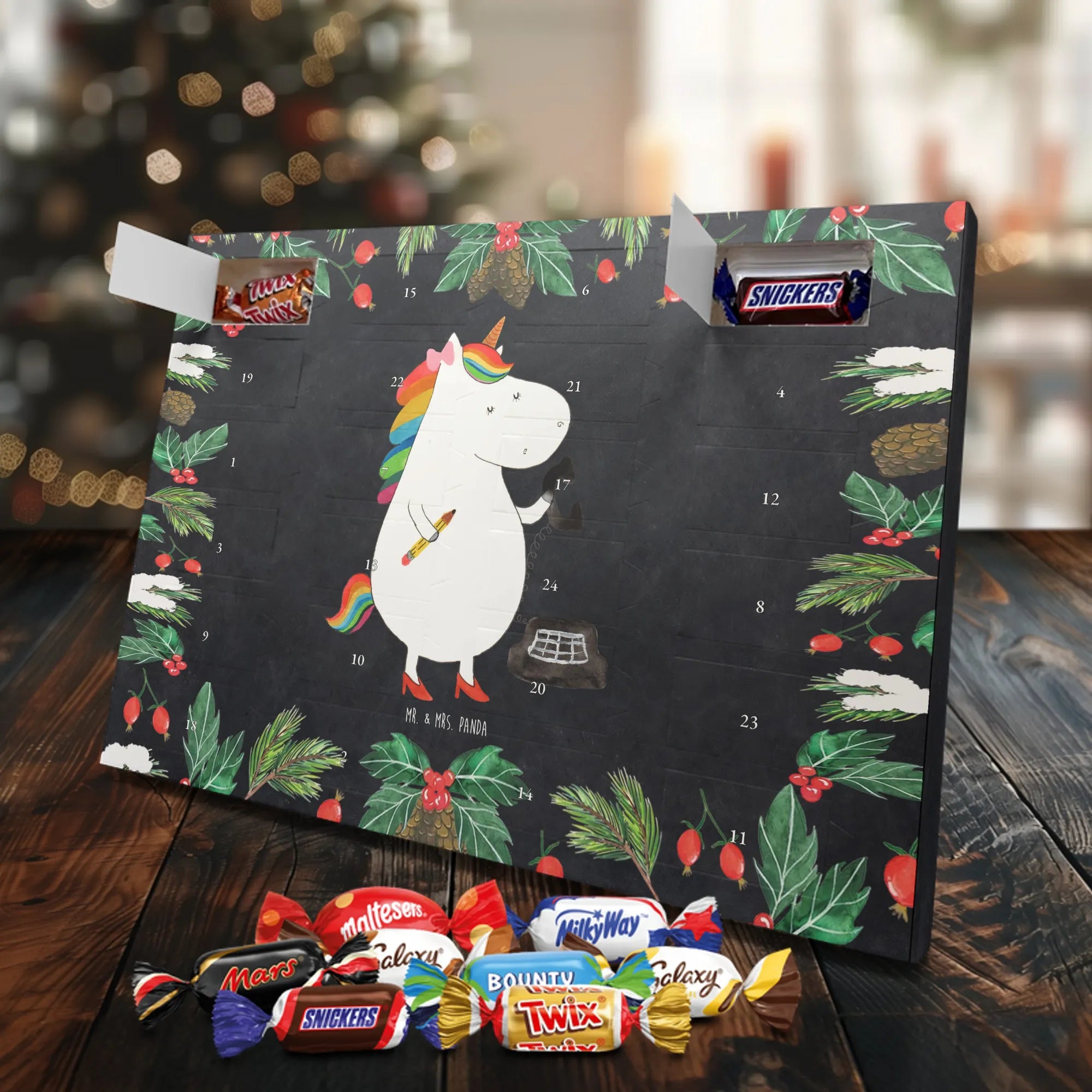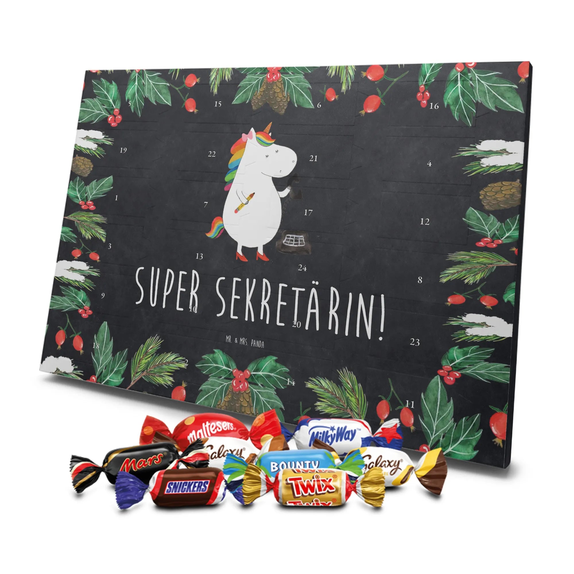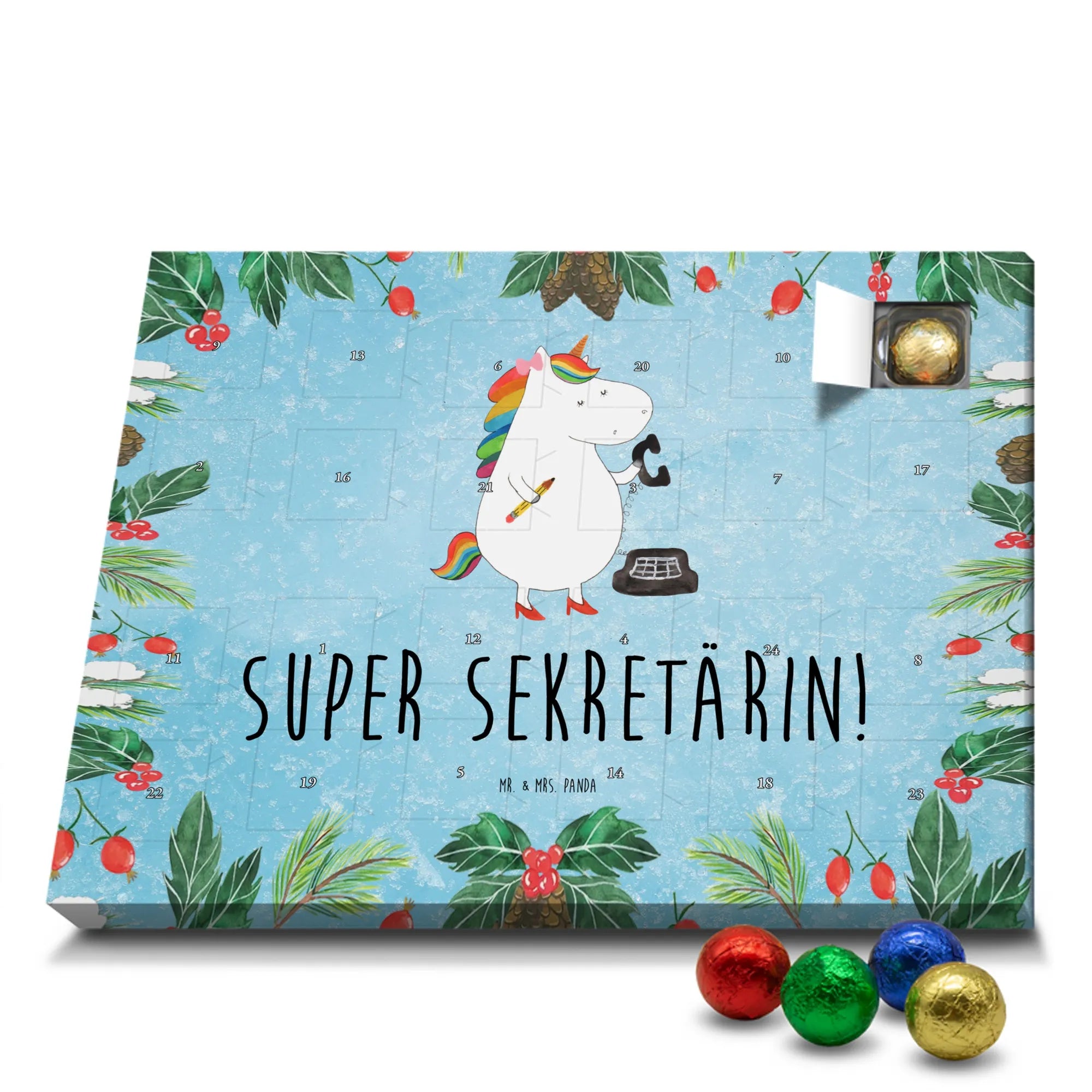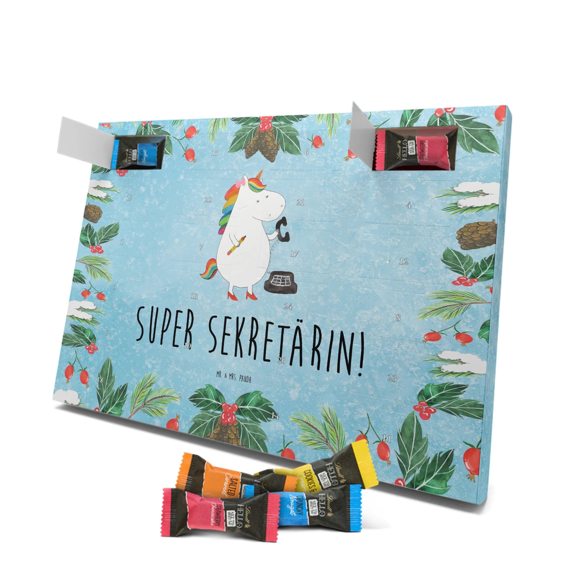 Chocolate advent calendar unicorn secretary - Classic - with saying - Ice Blue