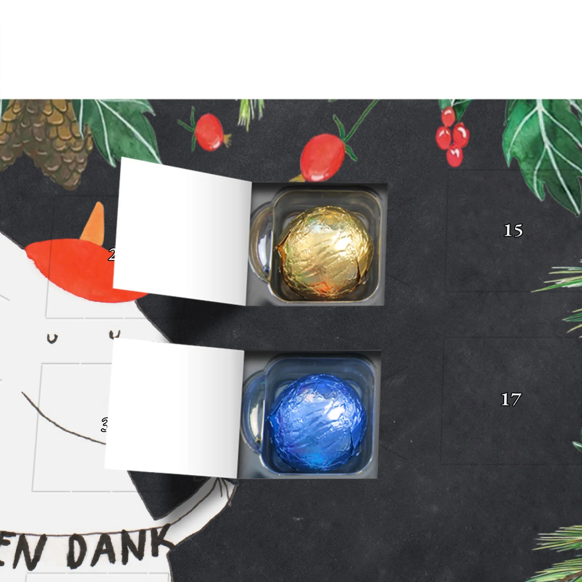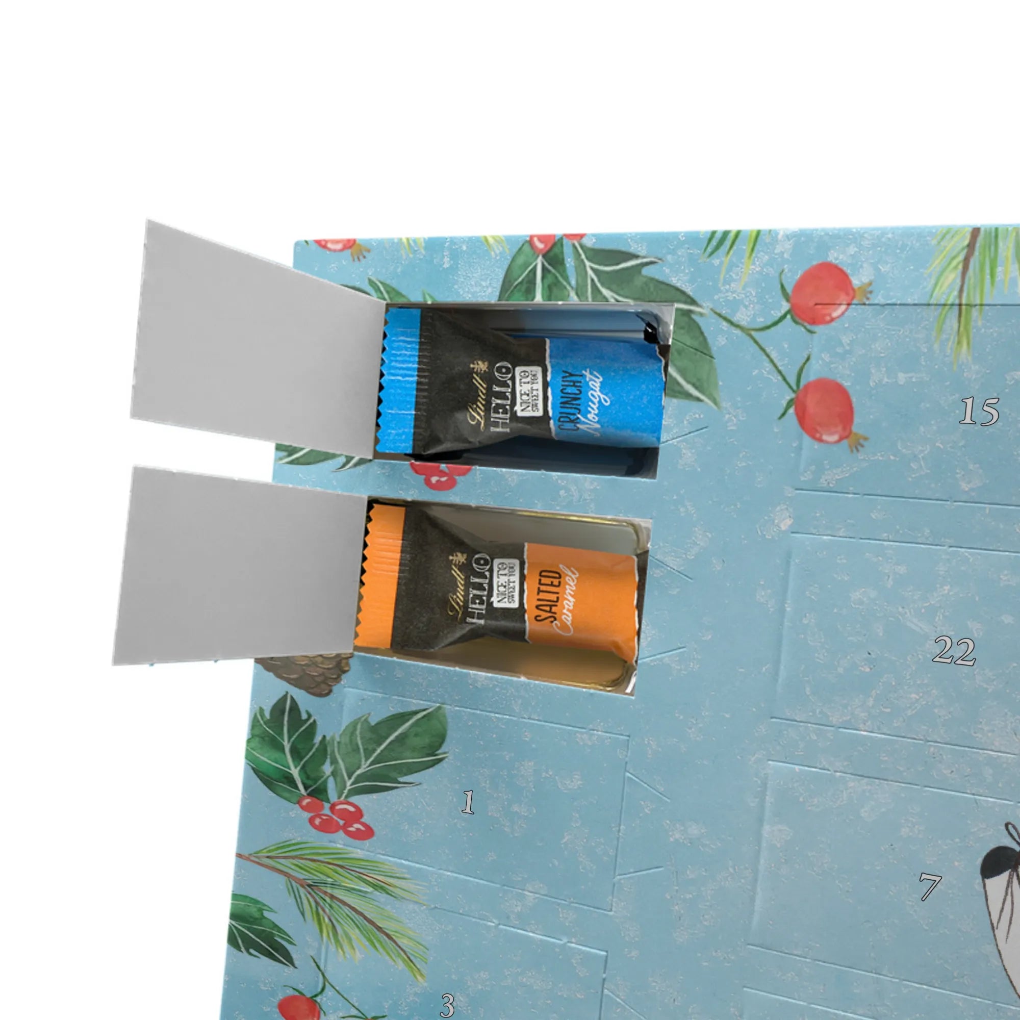 This handy advent calendar 2020 from Mr. & Mrs. Panda is really something very special - it is decorated with wonderful motifs and has the size 24m x 18cm x 2,5cm. It is filled with 24 chocolate balls and costs 14,90€ - the calendar can be hung up or set up using the set-up function on the back. Please note that we also have a larger calendar with delicious chocolate from Hello Lindt.