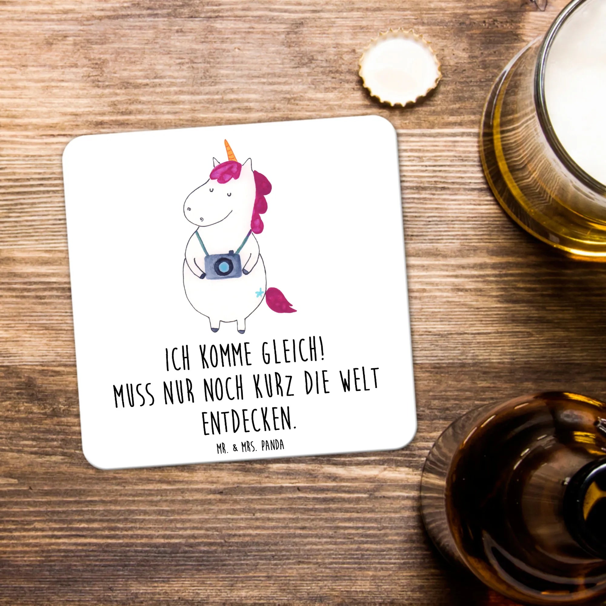 Coaster Set unicorn photographer - 15-piece set - with a saying