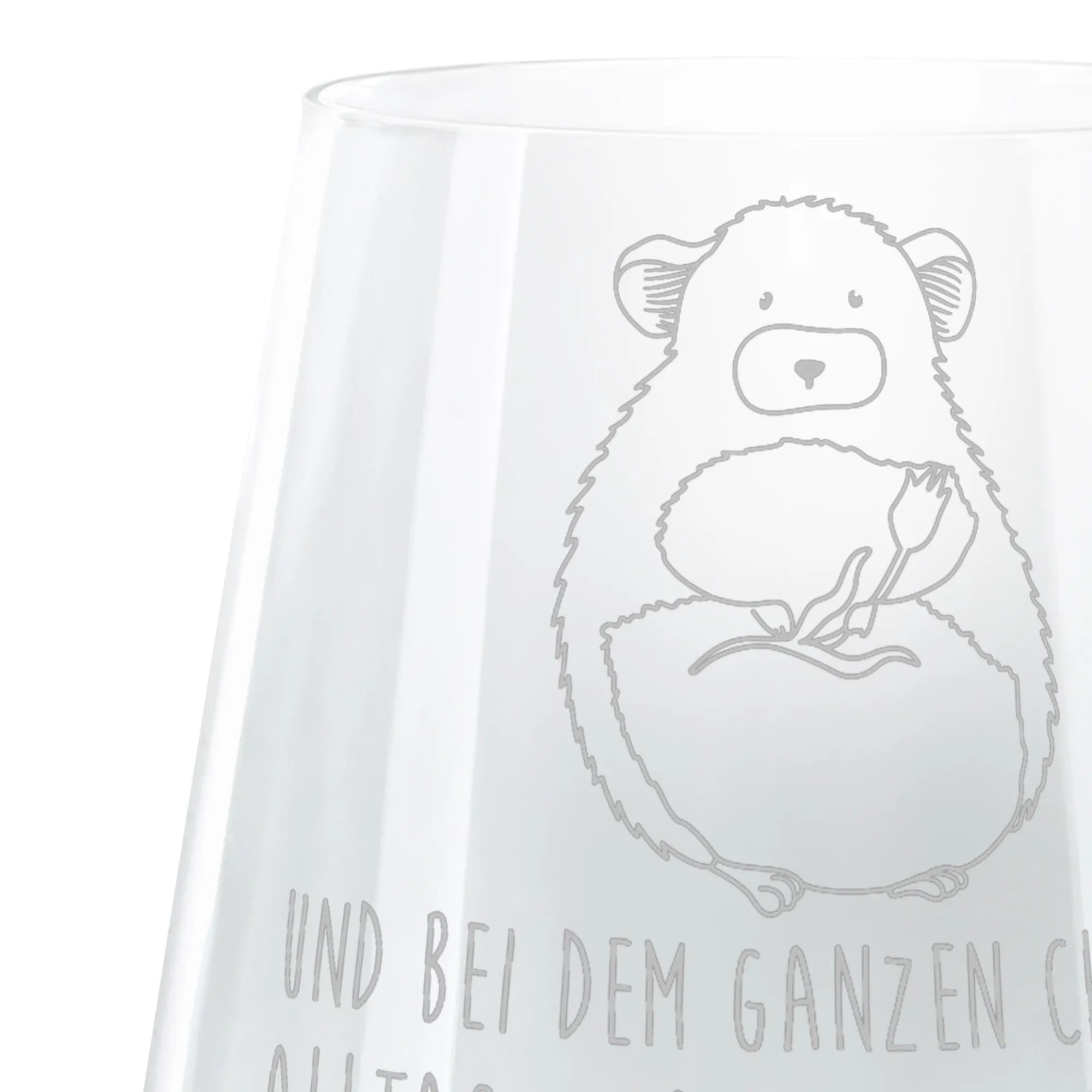 Discover the beautiful cocktail glass with a great engraving by Mr. & Mrs. Panda! Refined with inspiring quotes and enchanting designs by Mr. & Mrs. Panda, this cocktail glass is the perfect addition to your cocktail evenings. Product Features: Perfect as a stylish cocktail glass for your favorite cocktails, whether it's Mojito, Margarita, or a classic Martini. High-quality laser engraving: Material is removed through precise heating, creating an elegant matte effect. - Material: Robust glass for durability and style. - Dimensions: Height 103 mm, Diameter 88 mm, with a capacity of 400 ml. - Care Instructions: Dishwasher safe for effortless cleaning and more time to enjoy. This cocktail glass combines quality, style, and the unique designs of Mr. & Mrs. Panda. Whether for private celebrations or as a gift for cocktail lovers, it gives each drink a special touch. Discover the magic of an exquisite cocktail glass with this special engraving!
